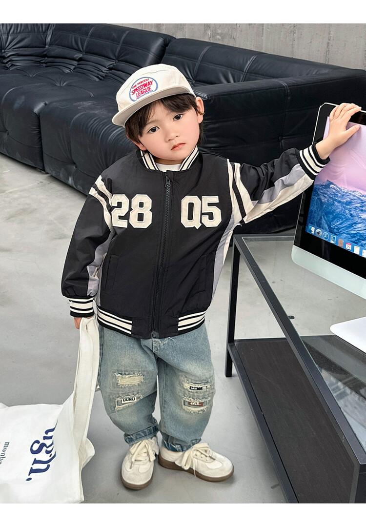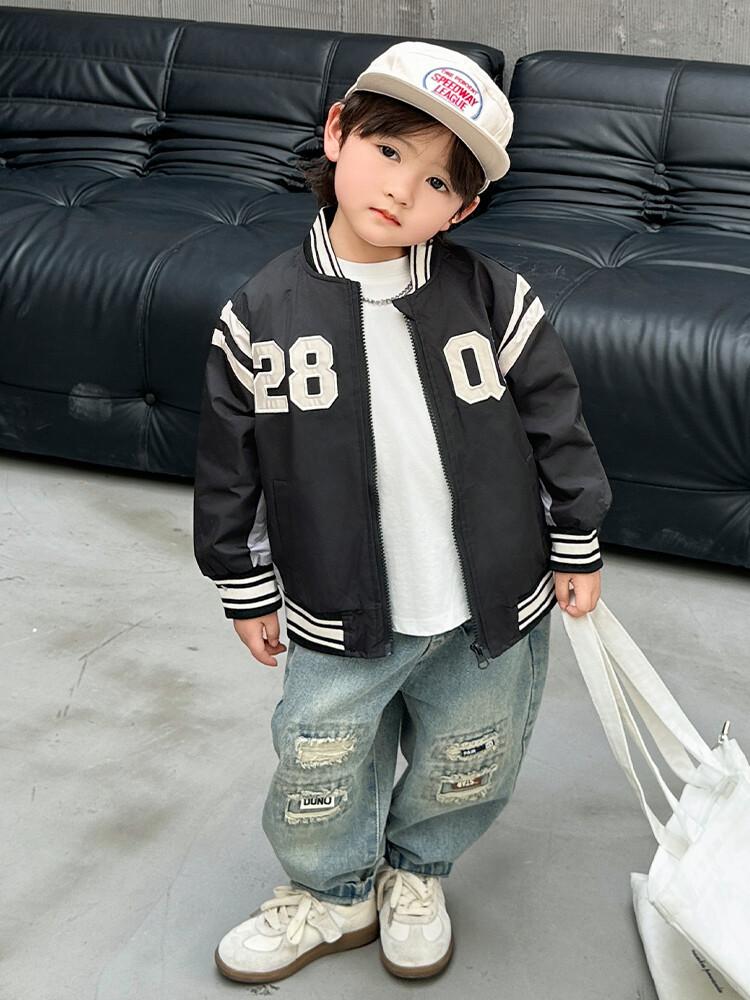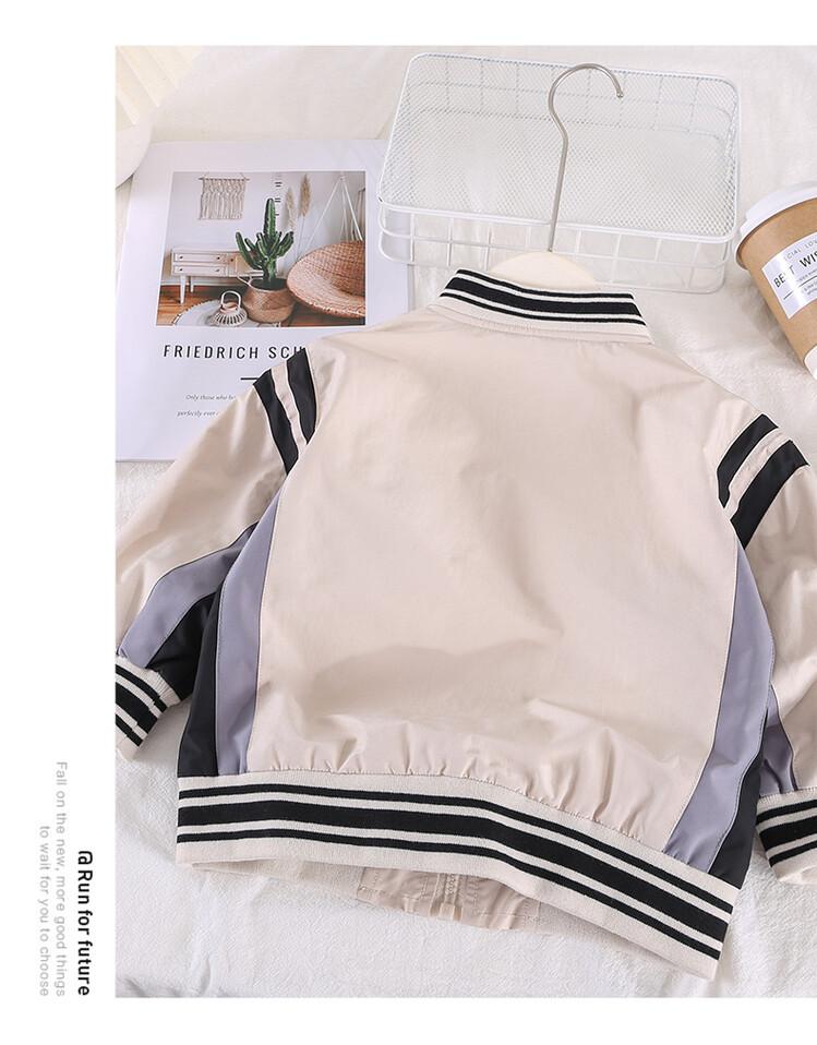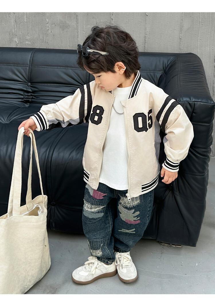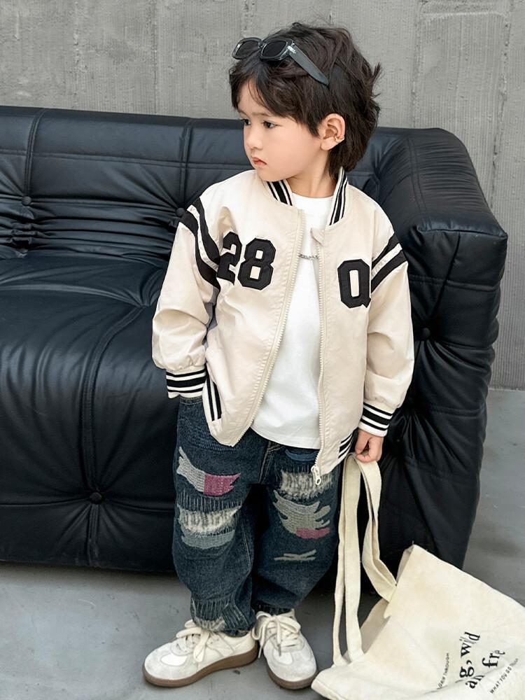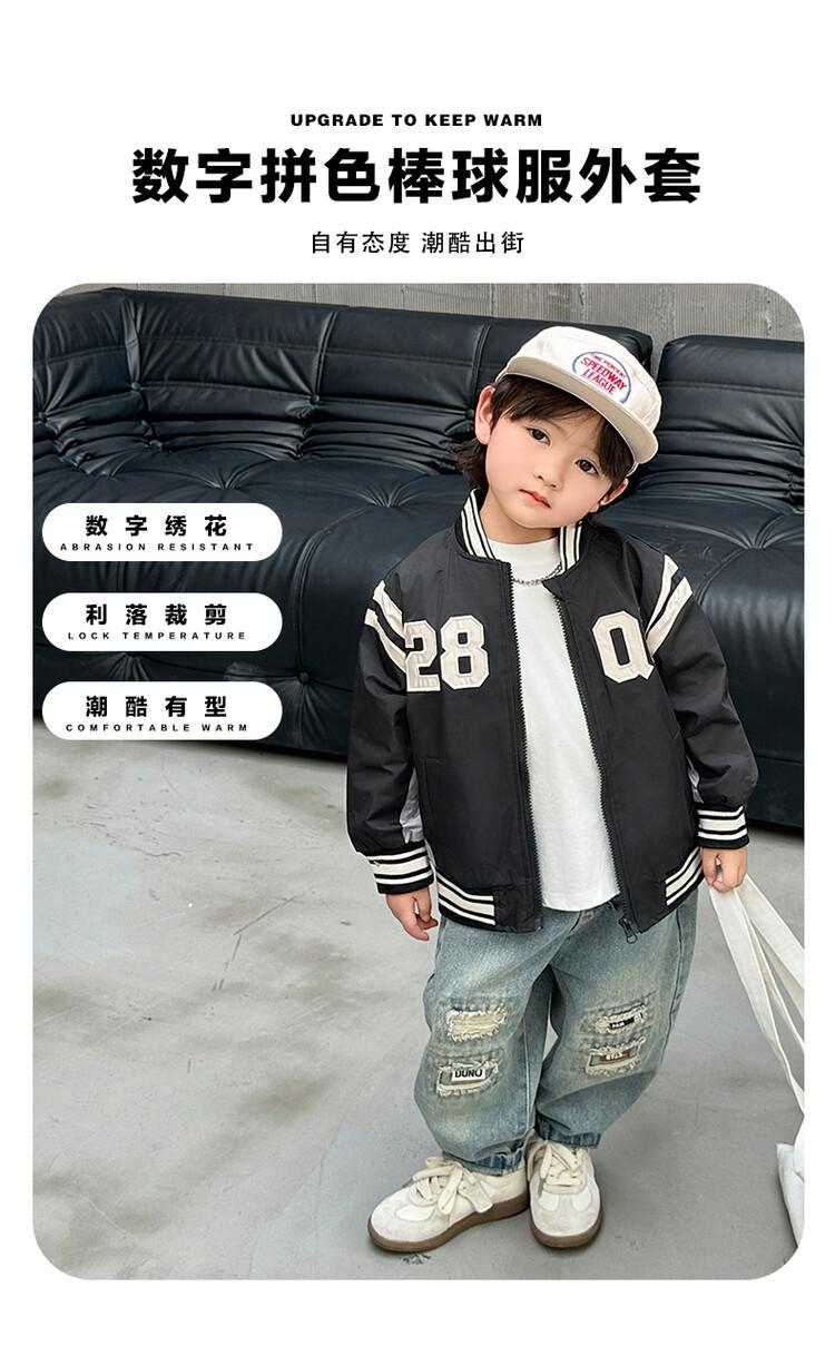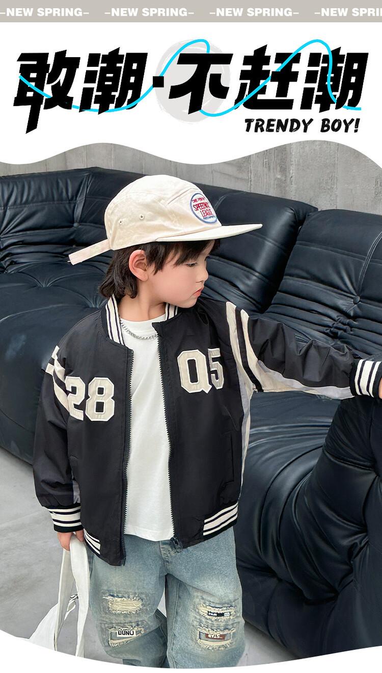 Chaqueta de béisbol con bloques de color digitales para niño, primavera y otoño 2024, nueva chaqueta de estilo occidental para niños, ropa para niños