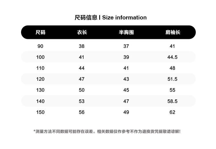 90cm, 100cm, 110cm, 120cm, 130cm, 140cm, 150cm