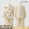 Pijama de algodón de doble capa de gasa para niños, algodón para padres e hijos, nuevo de primavera y otoño, para niños medianos y grandes, ropa de casa de manga larga para niños y niñas