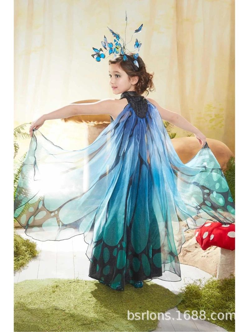 Traje de Disfraz de Baile Infantil con Lunares Alas de Mariposa Traje Disfraz de Actuación Disfraz de Fiesta Cosplay de Halloween