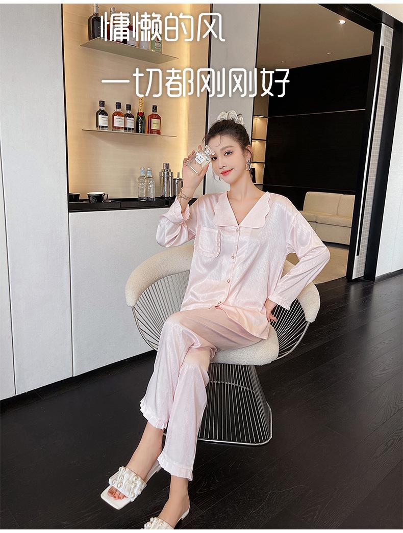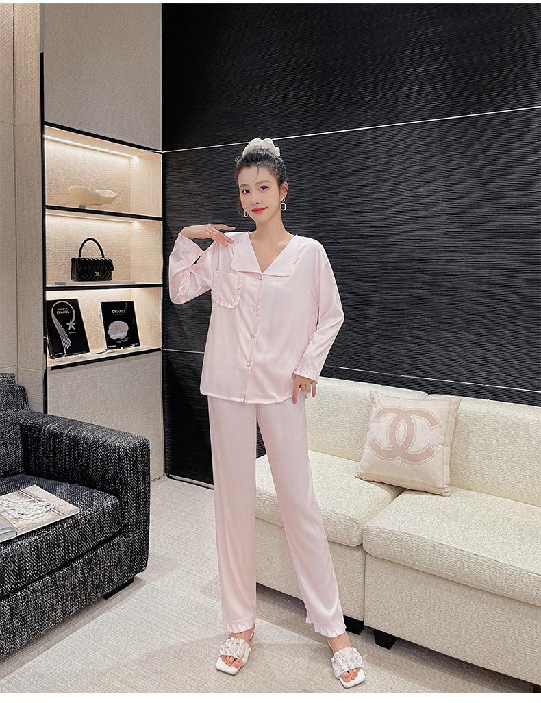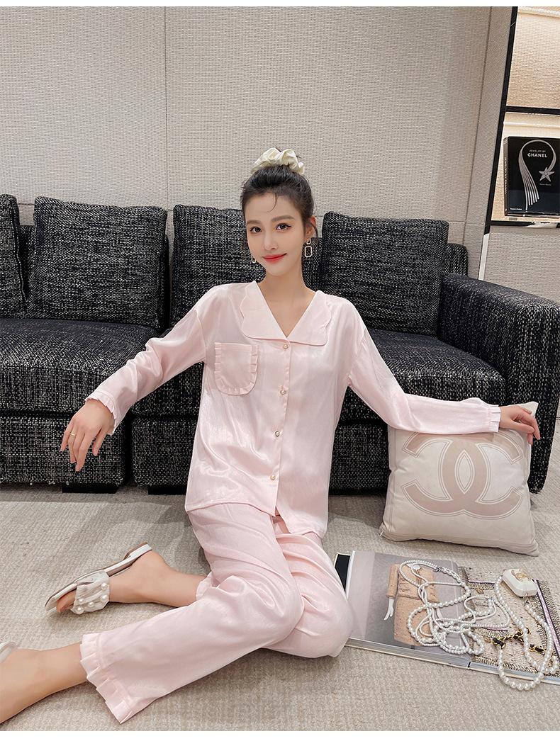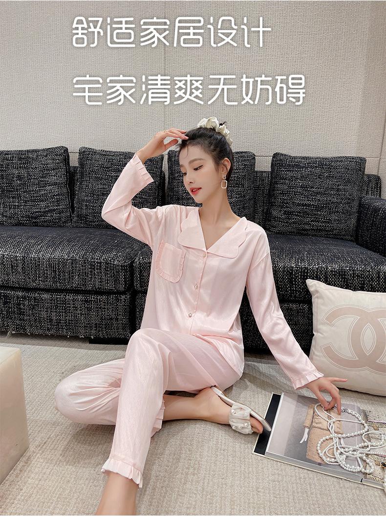 Pijama nuevo para mujer, estilo francés, cómodo, de seda helada, de manga larga, fino, de alta calidad, para uso en el hogar al aire libre, venta al por mayor