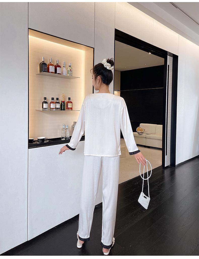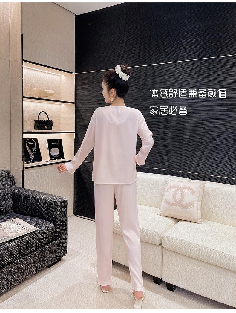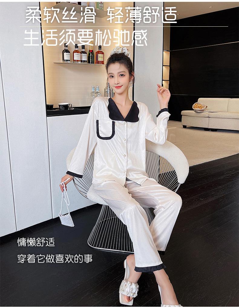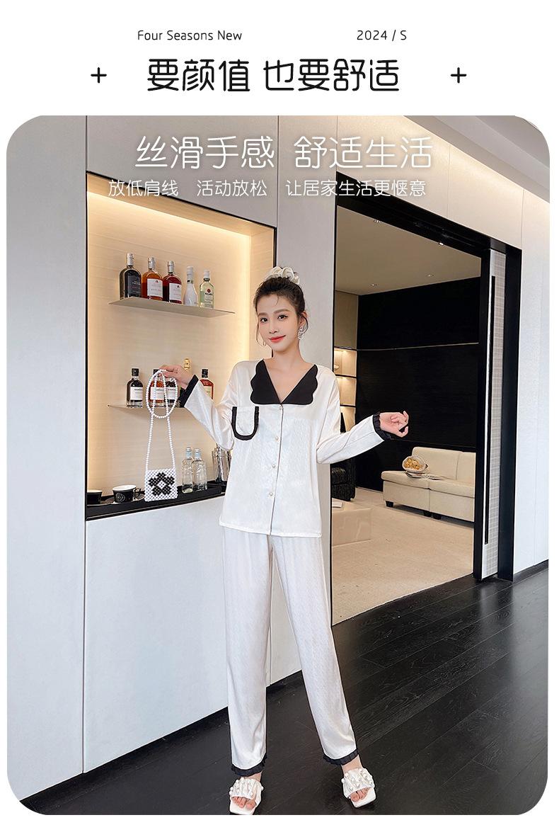 Pijama nuevo para mujer, estilo francés, cómodo, de seda helada, de manga larga, fino, de alta calidad, para uso en el hogar al aire libre, venta al por mayor