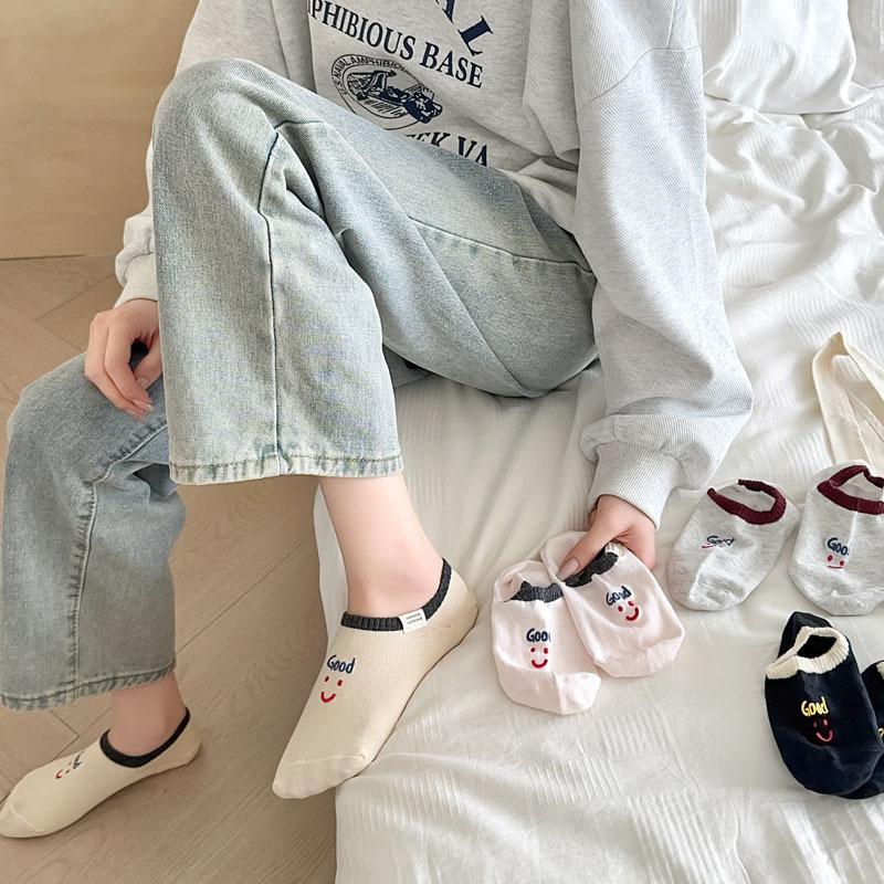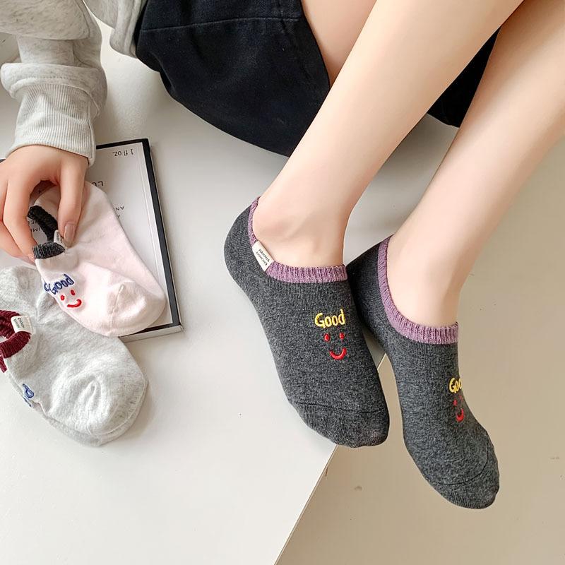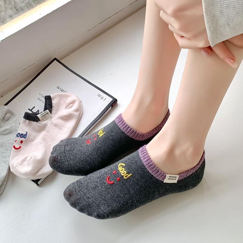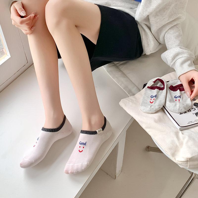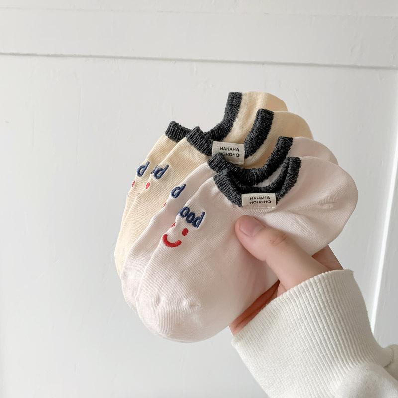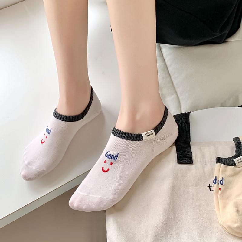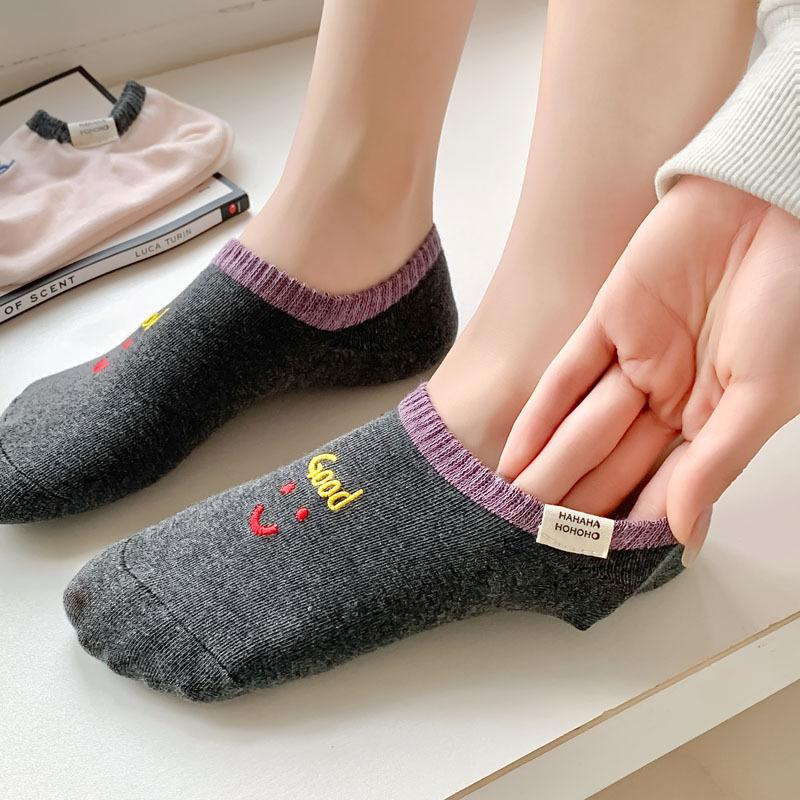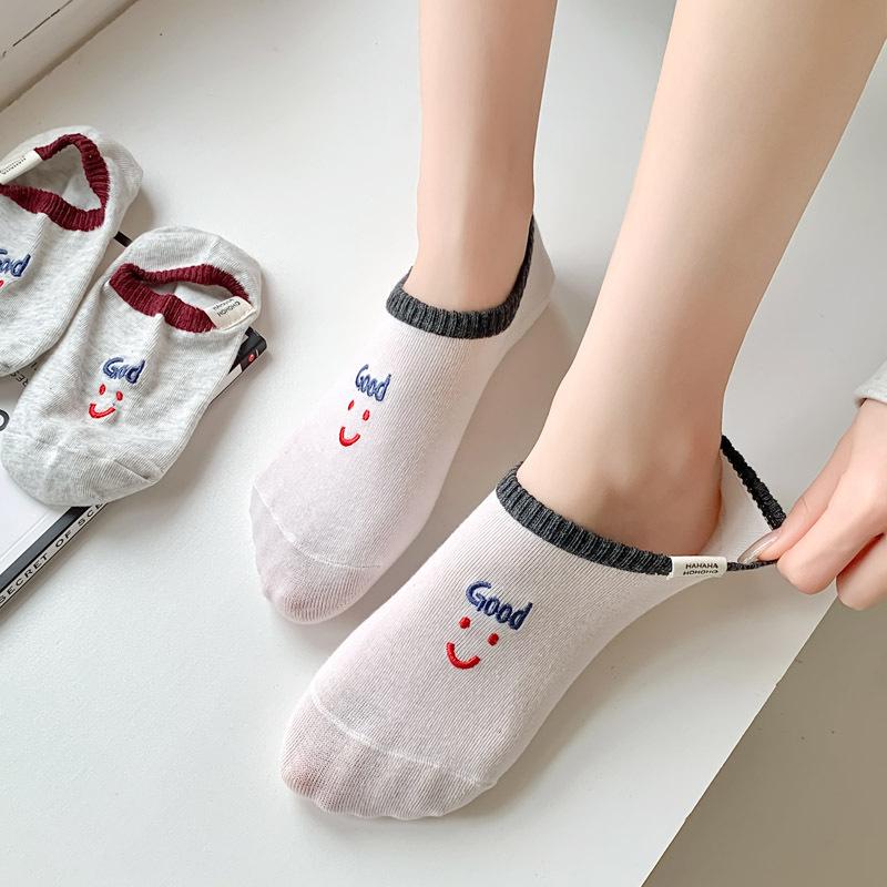 Calcetines de verano para mujer, calcetines finos absorbentes del sudor, calcetines invisibles para mujer, bordado de cara sonriente que no se cae, con lindos calcetines de mujer de algodón al por mayor