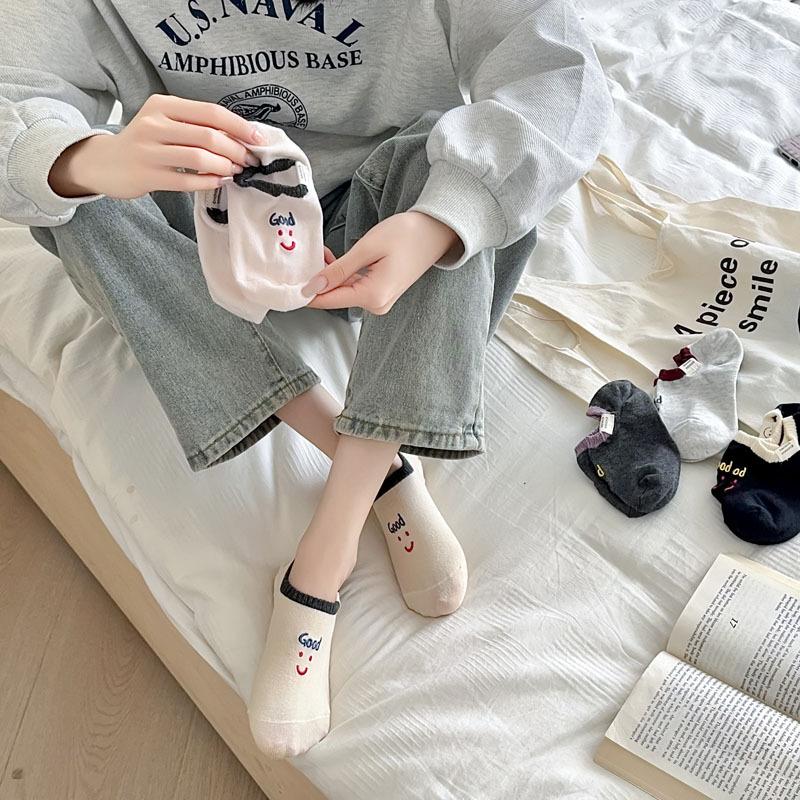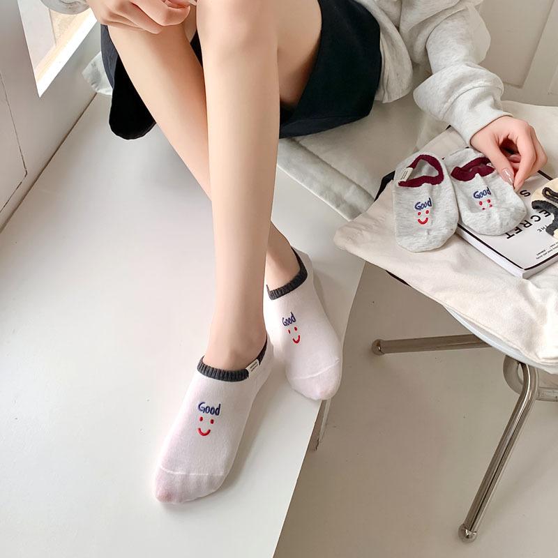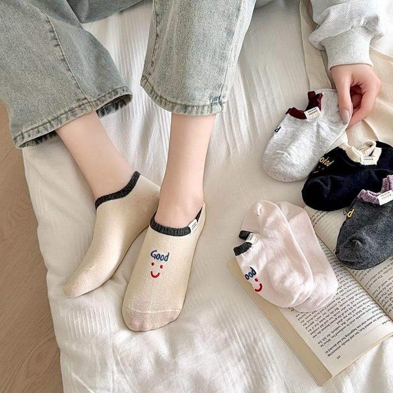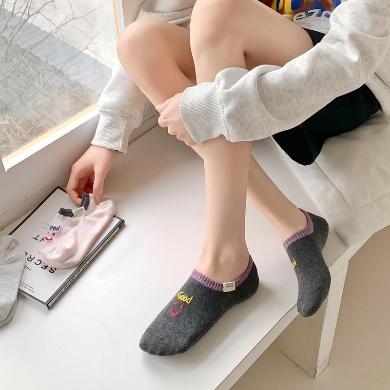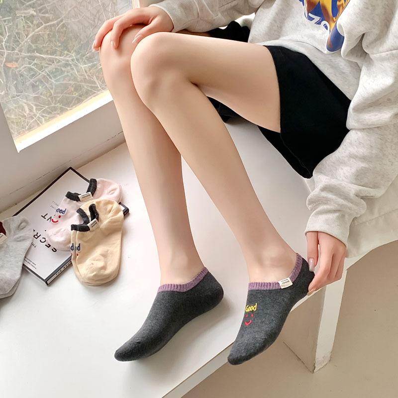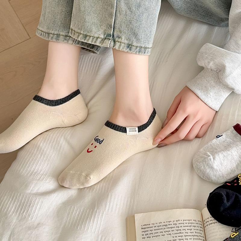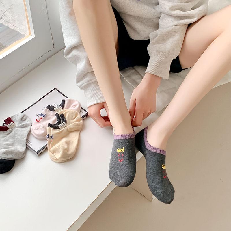 Calcetines de verano para mujer, calcetines finos absorbentes del sudor, calcetines invisibles para mujer, bordado de cara sonriente que no se cae, con lindos calcetines de mujer de algodón al por mayor