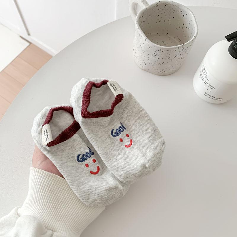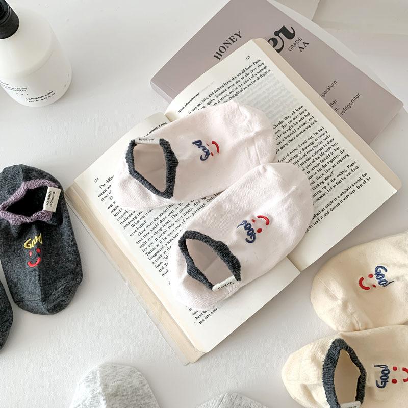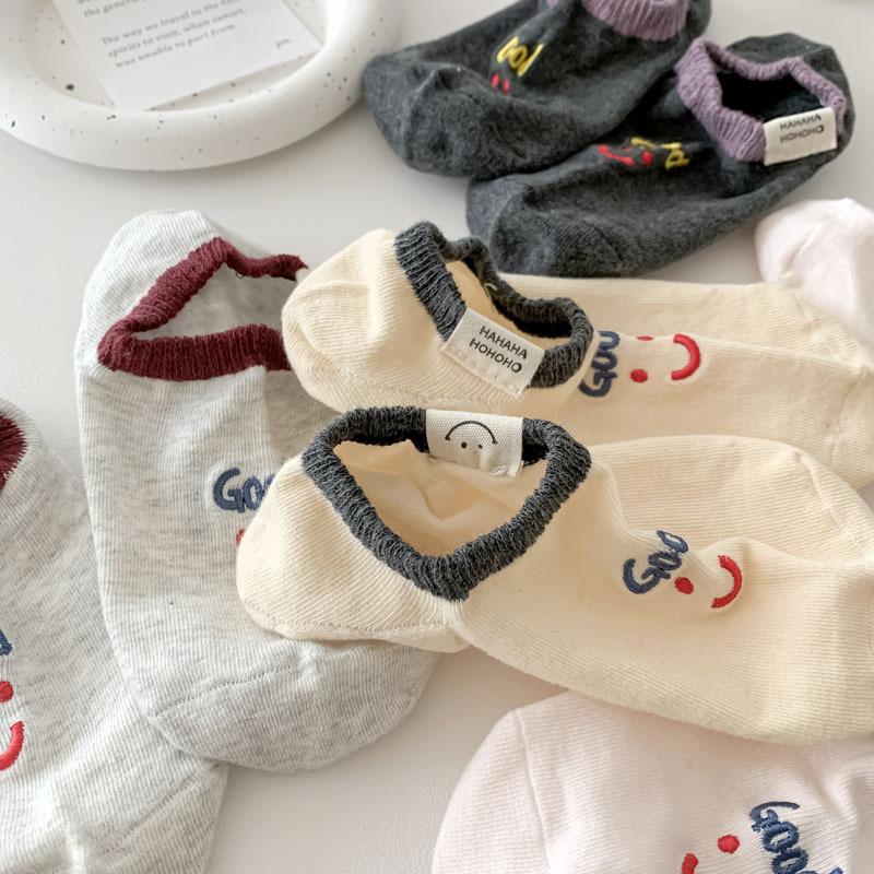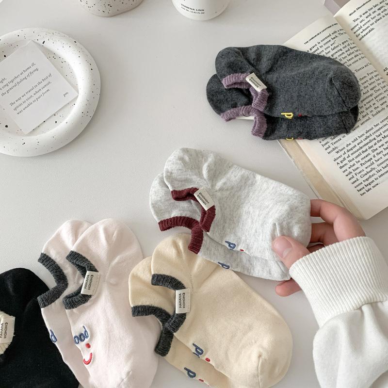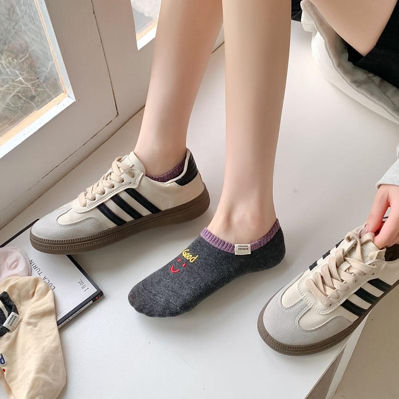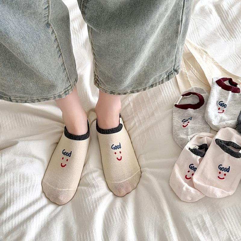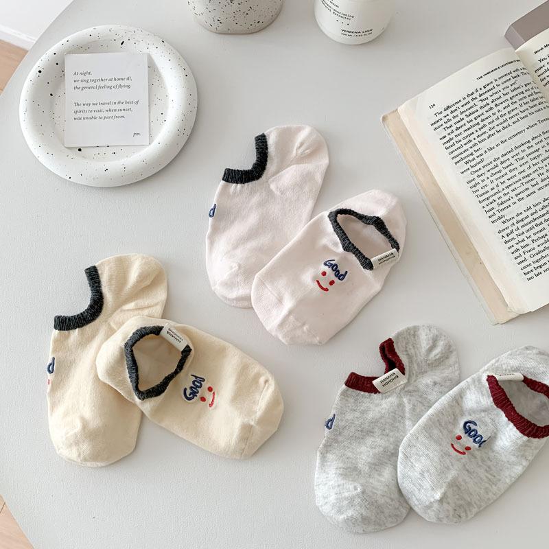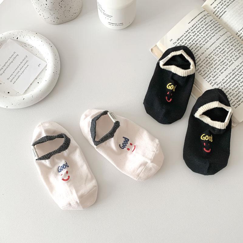 Calcetines de verano para mujer, calcetines finos absorbentes del sudor, calcetines invisibles para mujer, bordado de cara sonriente que no se cae, con lindos calcetines de mujer de algodón al por mayor
