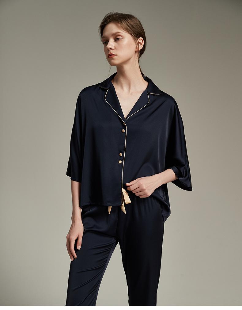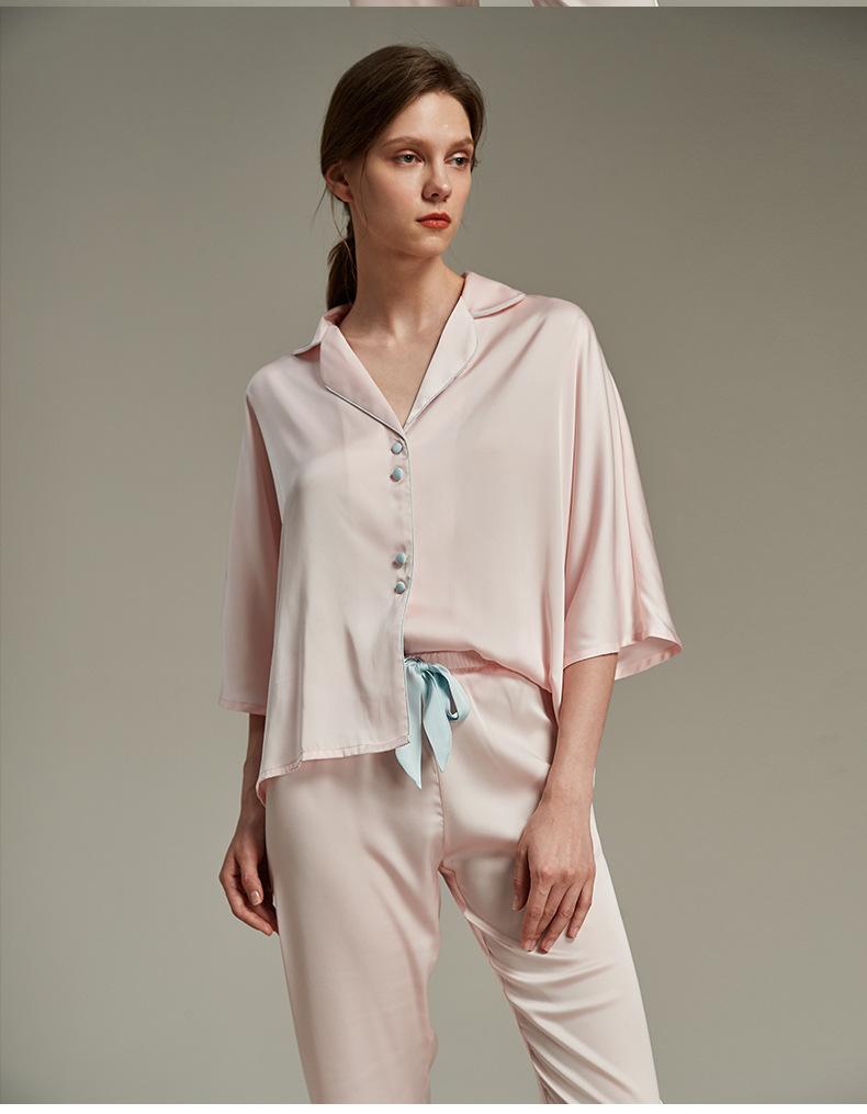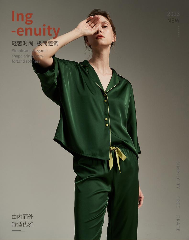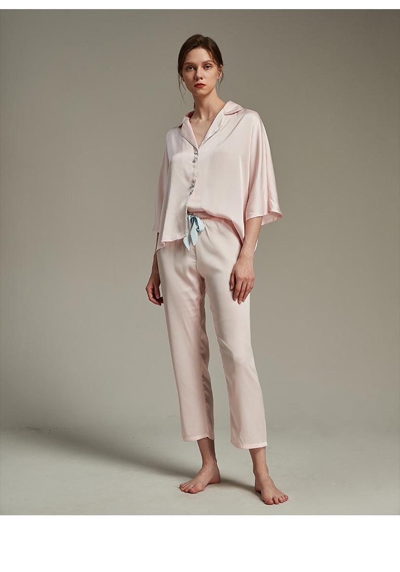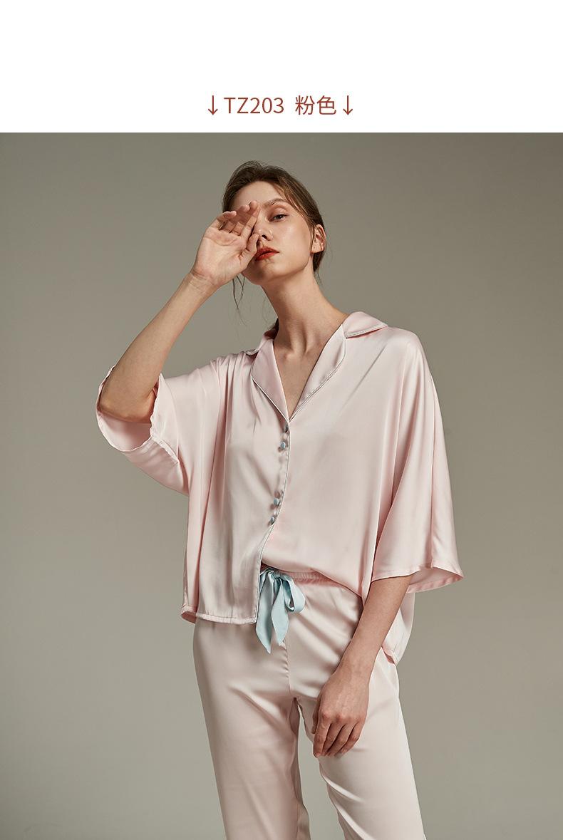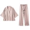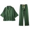 Nuevo Conjunto de Pijama de Seda de Hielo para Mujer Verano 2025 Delgado Manga Tres Cuartos Solapa Se Puede Usar Fuera Ropa de Casa Venta al por Mayor