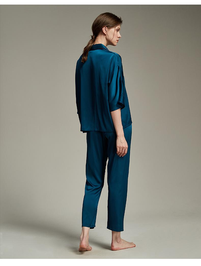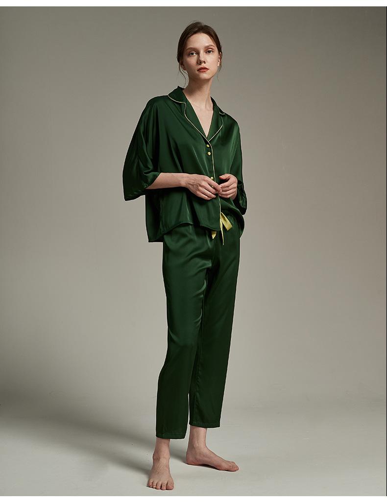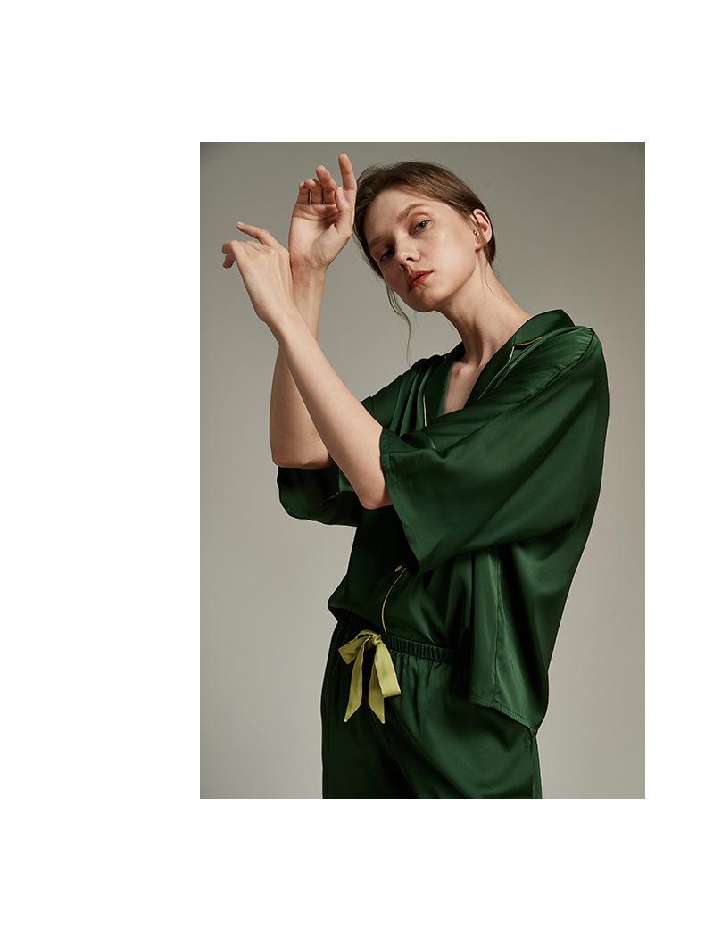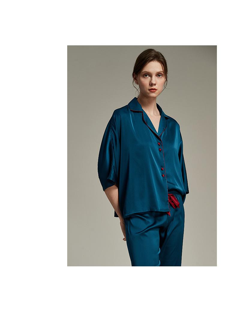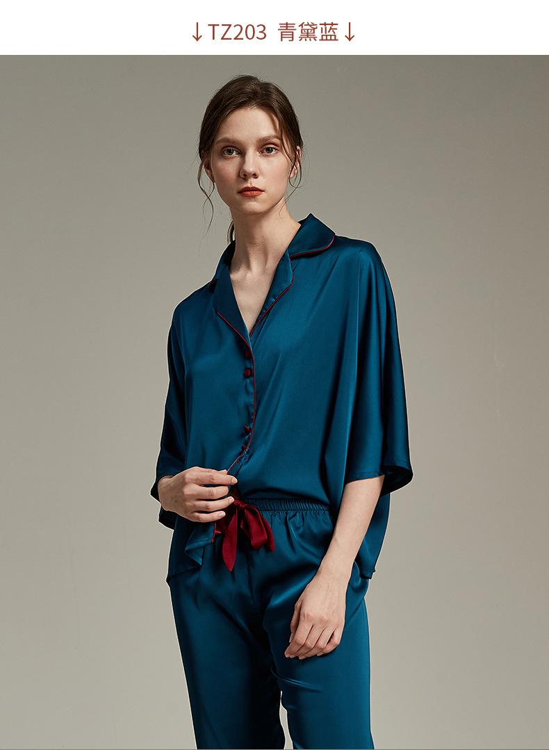 Nuevo Conjunto de Pijama de Seda de Hielo para Mujer Verano 2025 Delgado Manga Tres Cuartos Solapa Se Puede Usar Fuera Ropa de Casa Venta al por Mayor