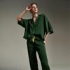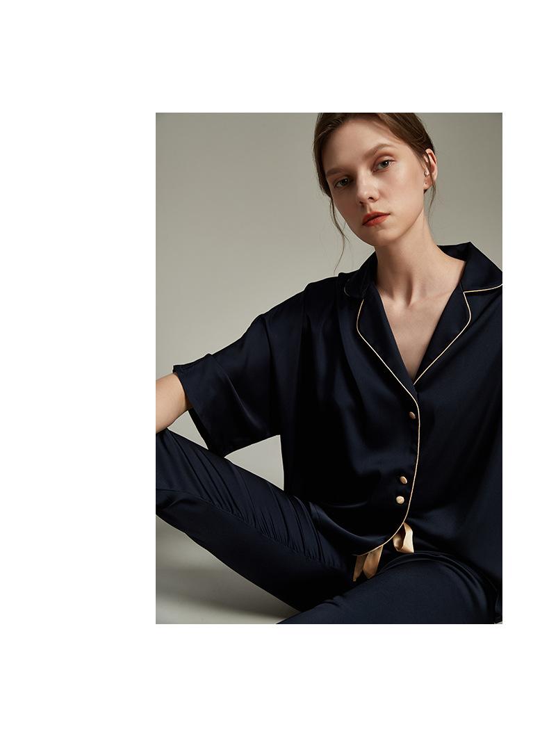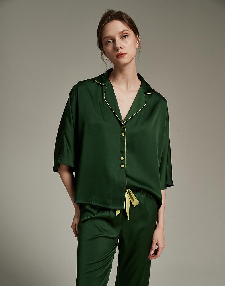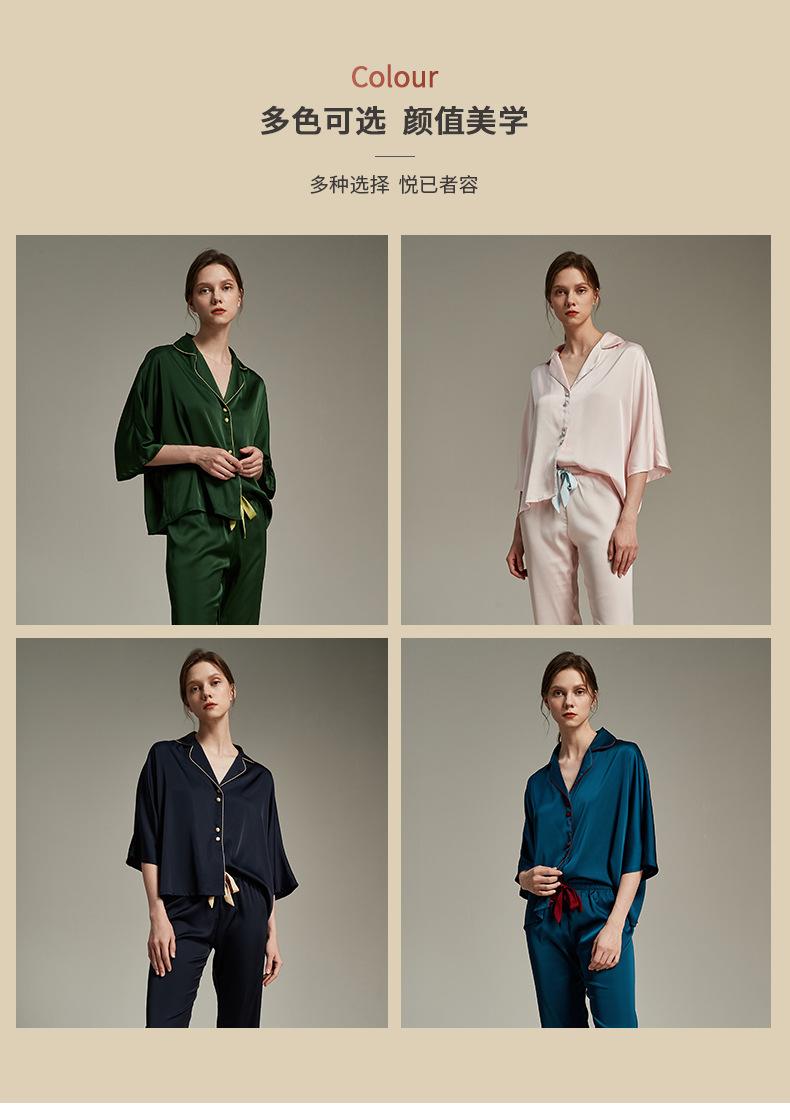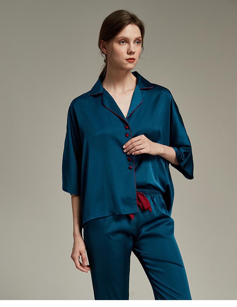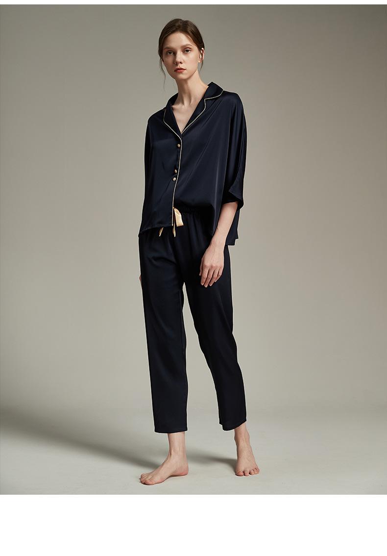 Nuevo Conjunto de Pijama de Seda de Hielo para Mujer Verano 2025 Delgado Manga Tres Cuartos Solapa Se Puede Usar Fuera Ropa de Casa Venta al por Mayor