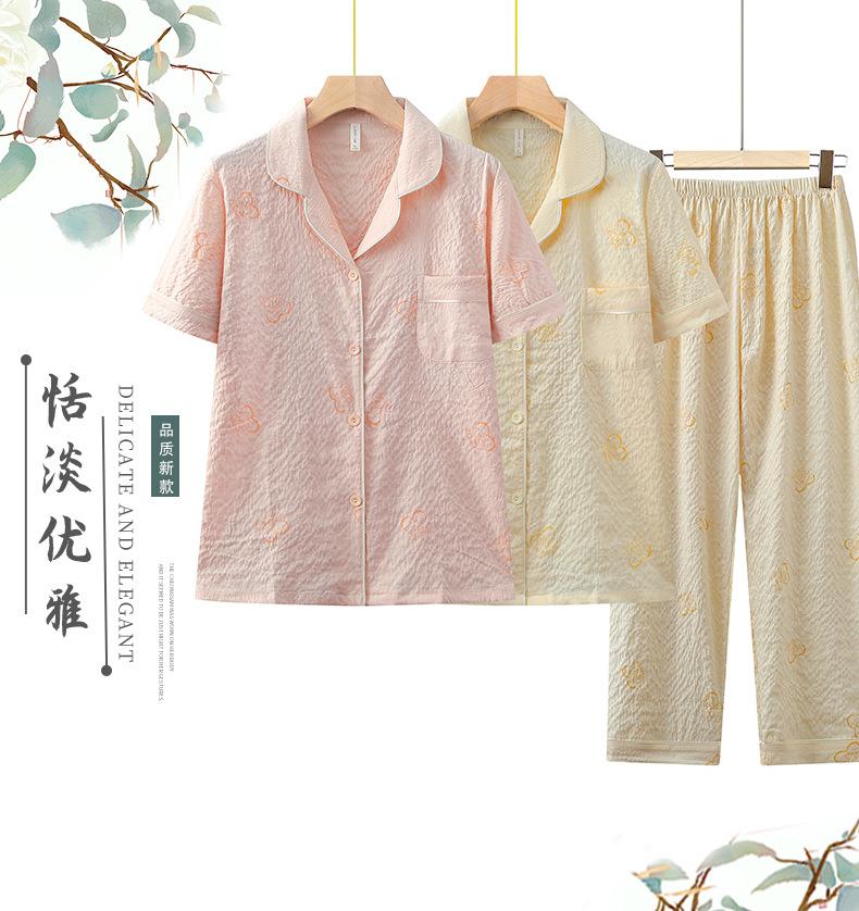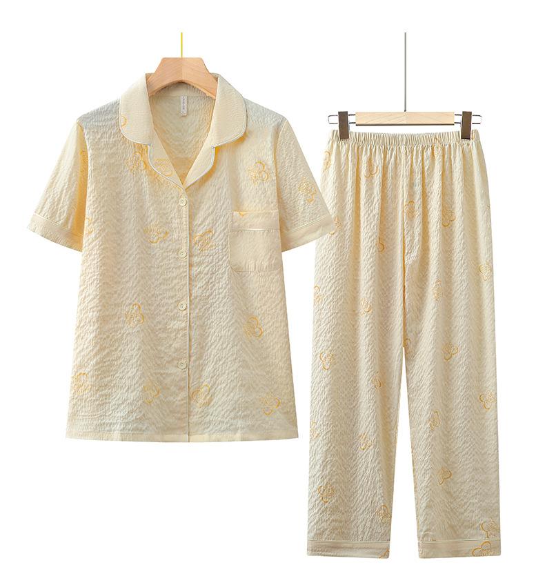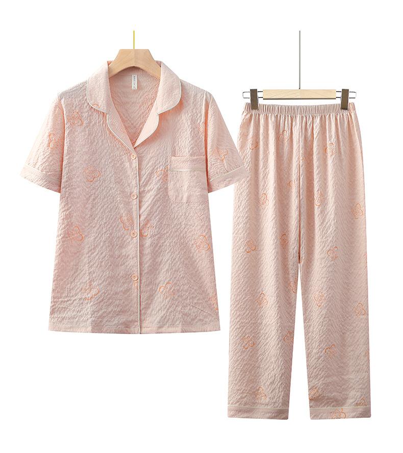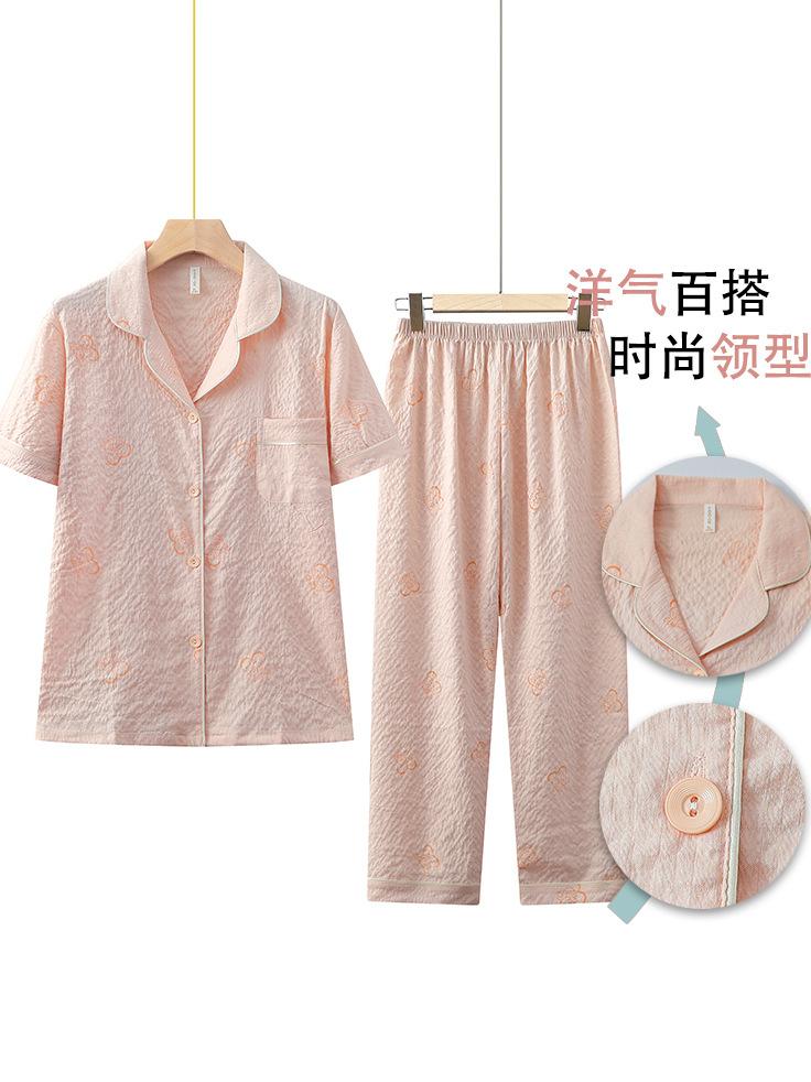 Pijama de algodón de nube para mujer, nuevo traje de verano de manga corta con pantalones, cárdigan con solapa para madre joven, ropa para el hogar
