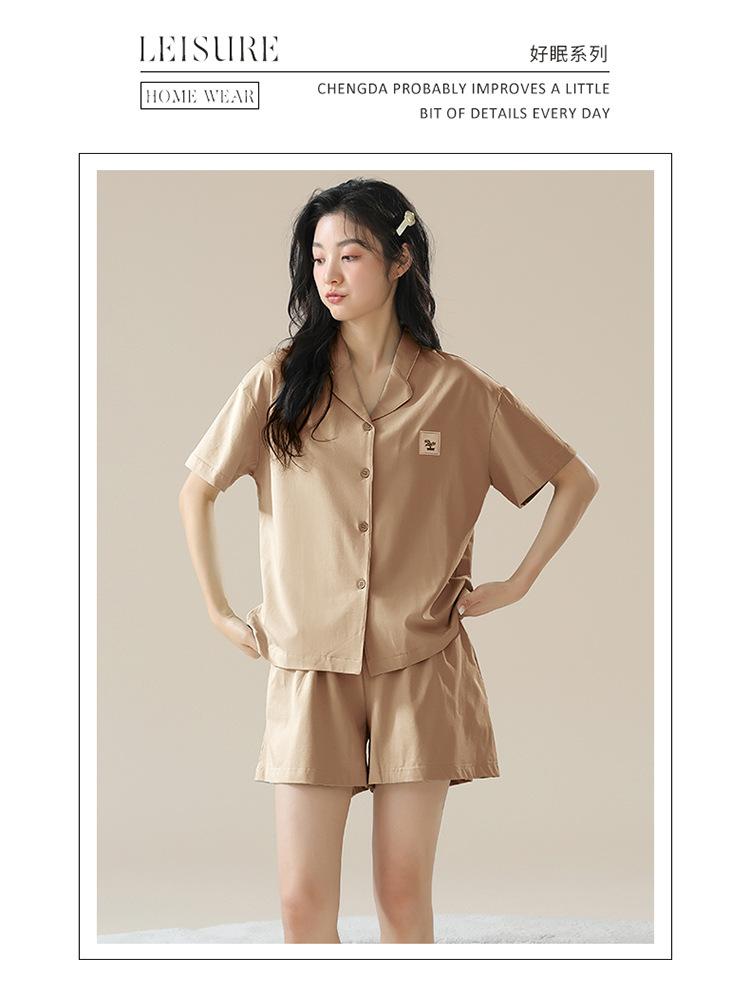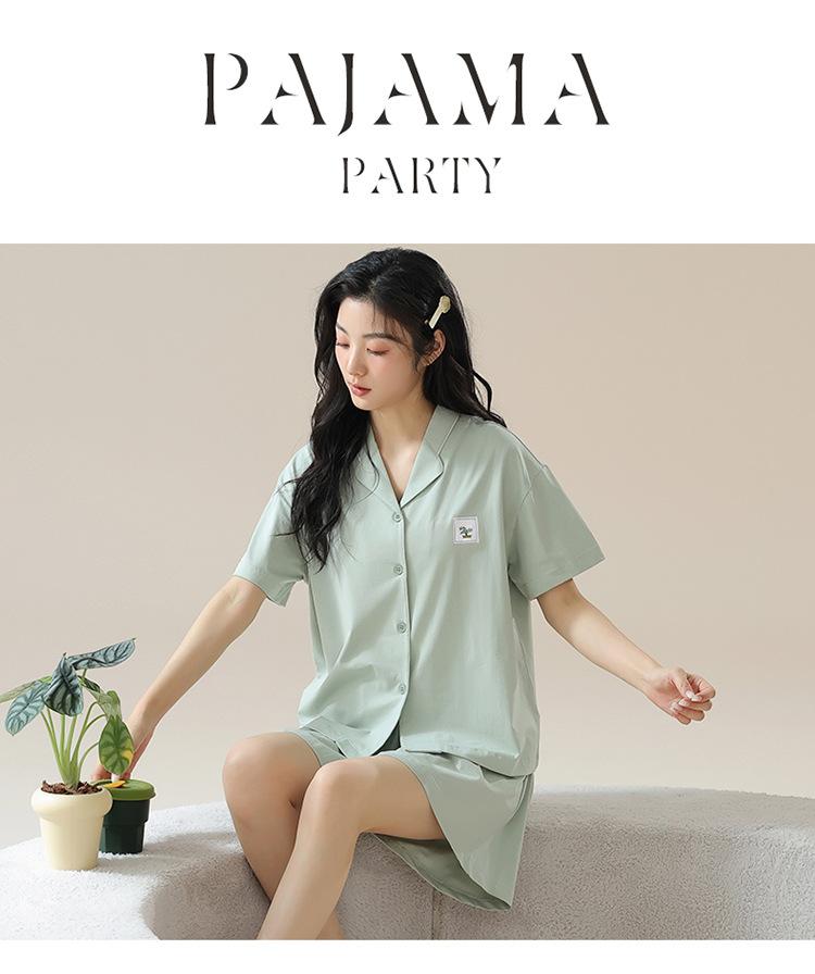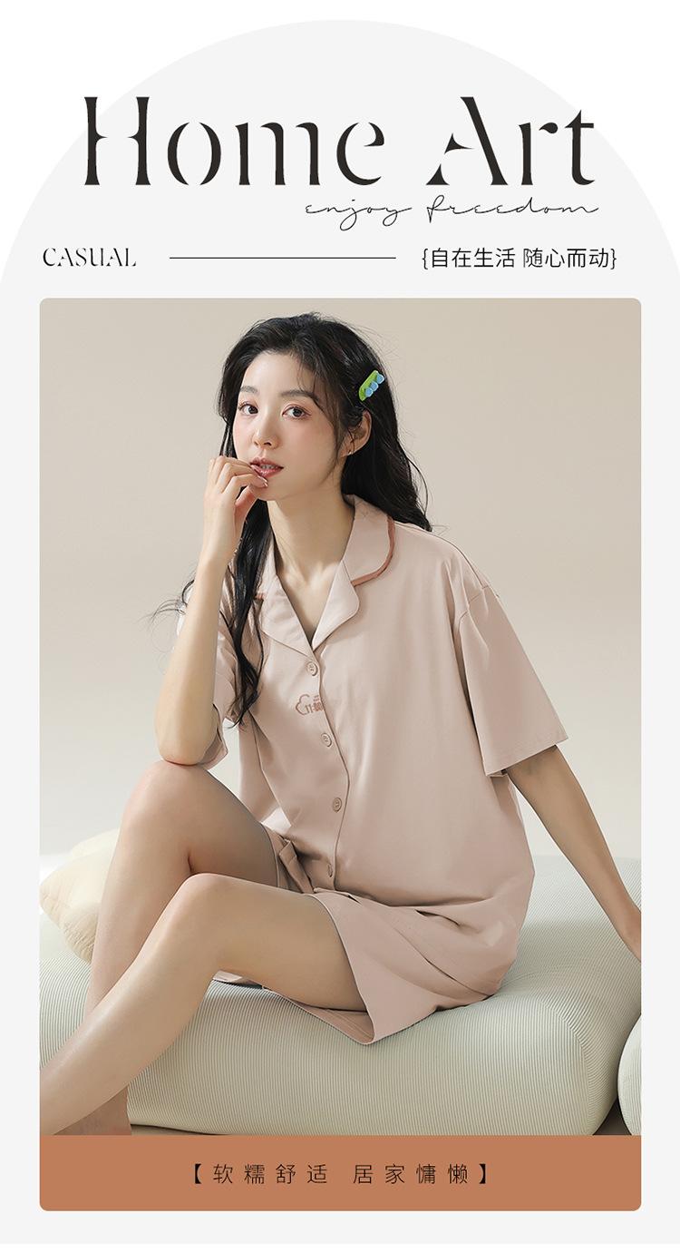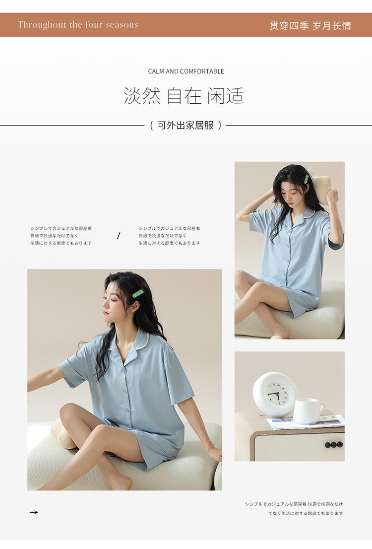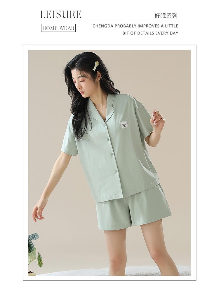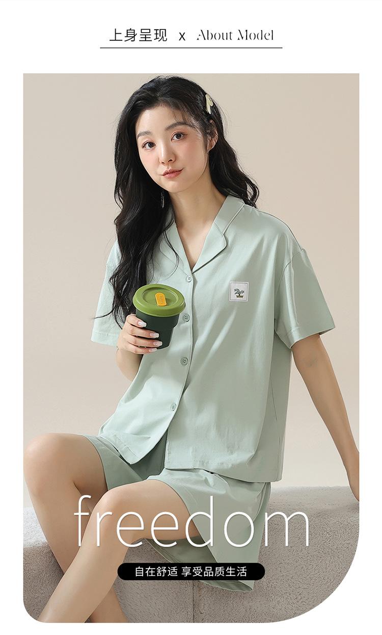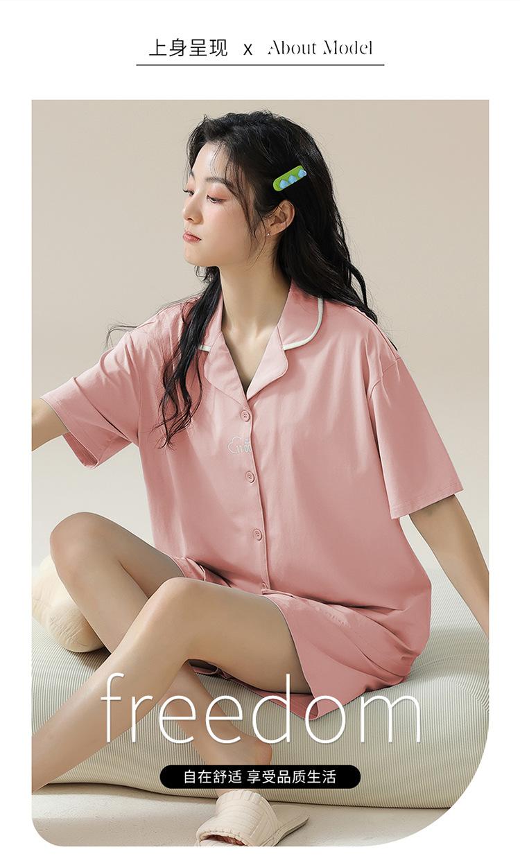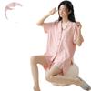 [tienda] moda sencilla (Amazonas) Pijama corto de manga corta para mujer, cárdigan con solapa, ideal para usar en casa.