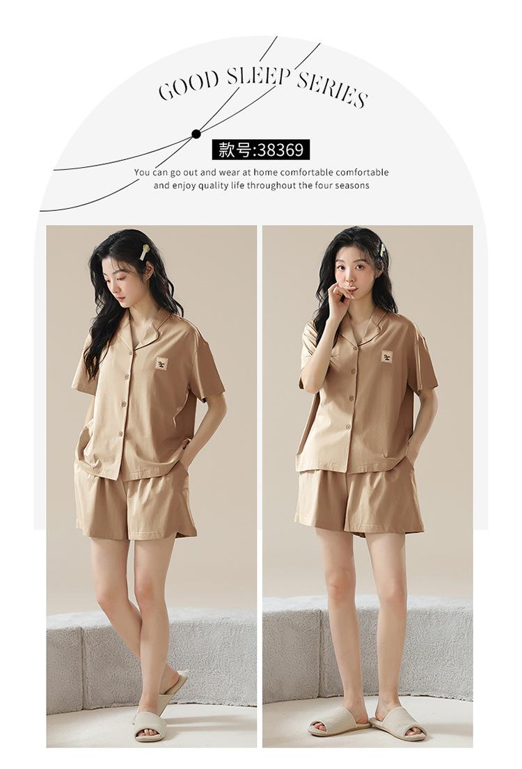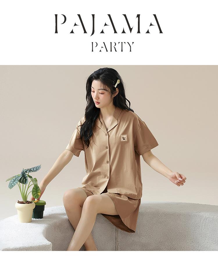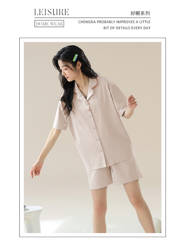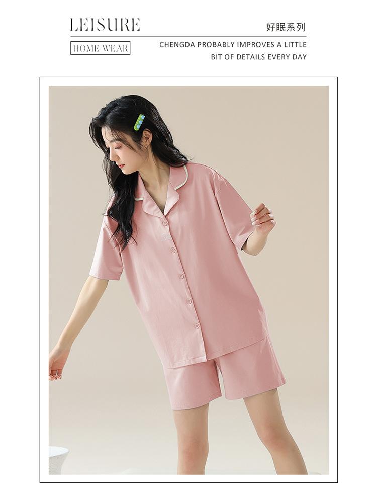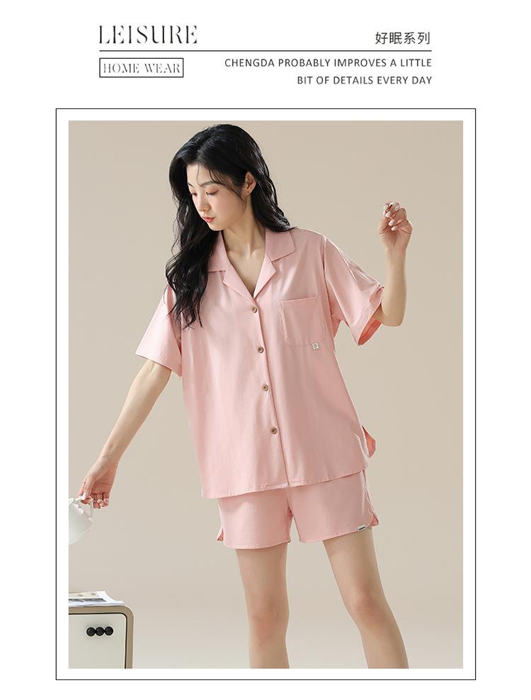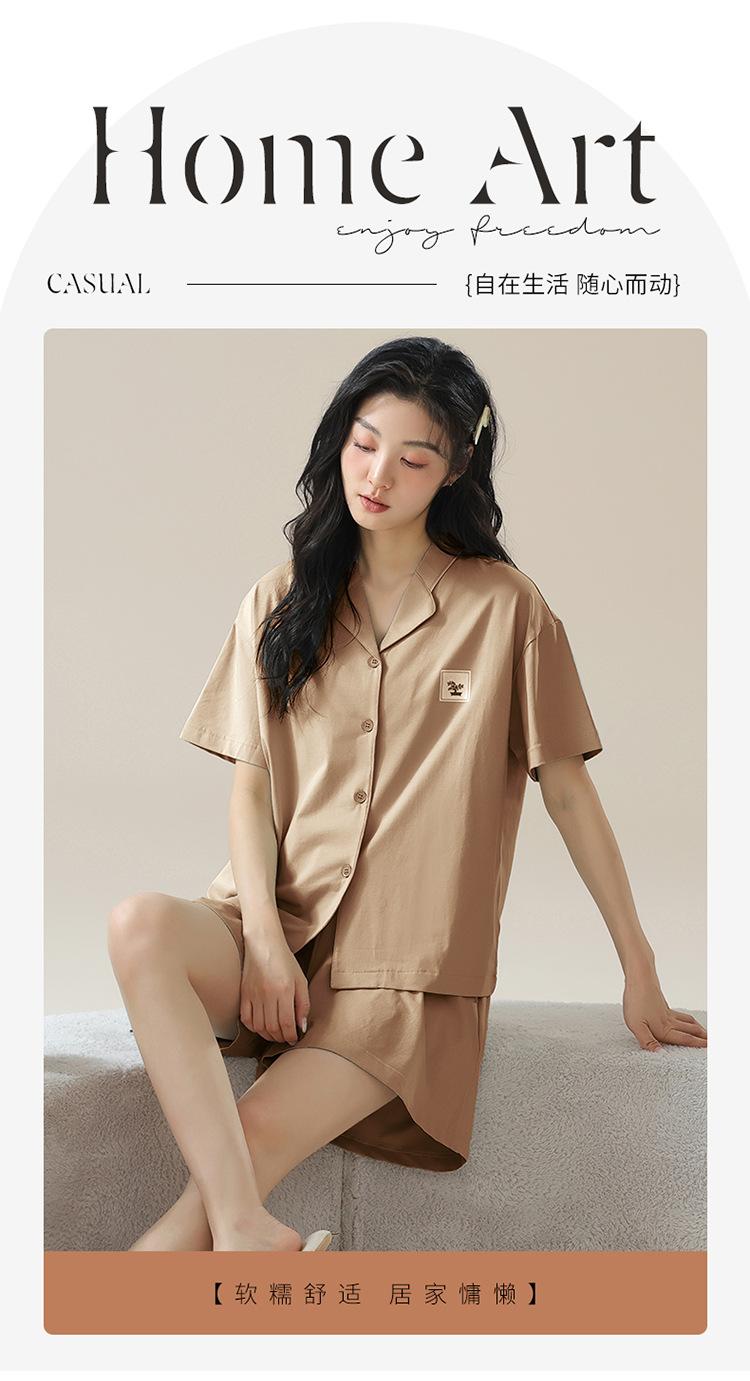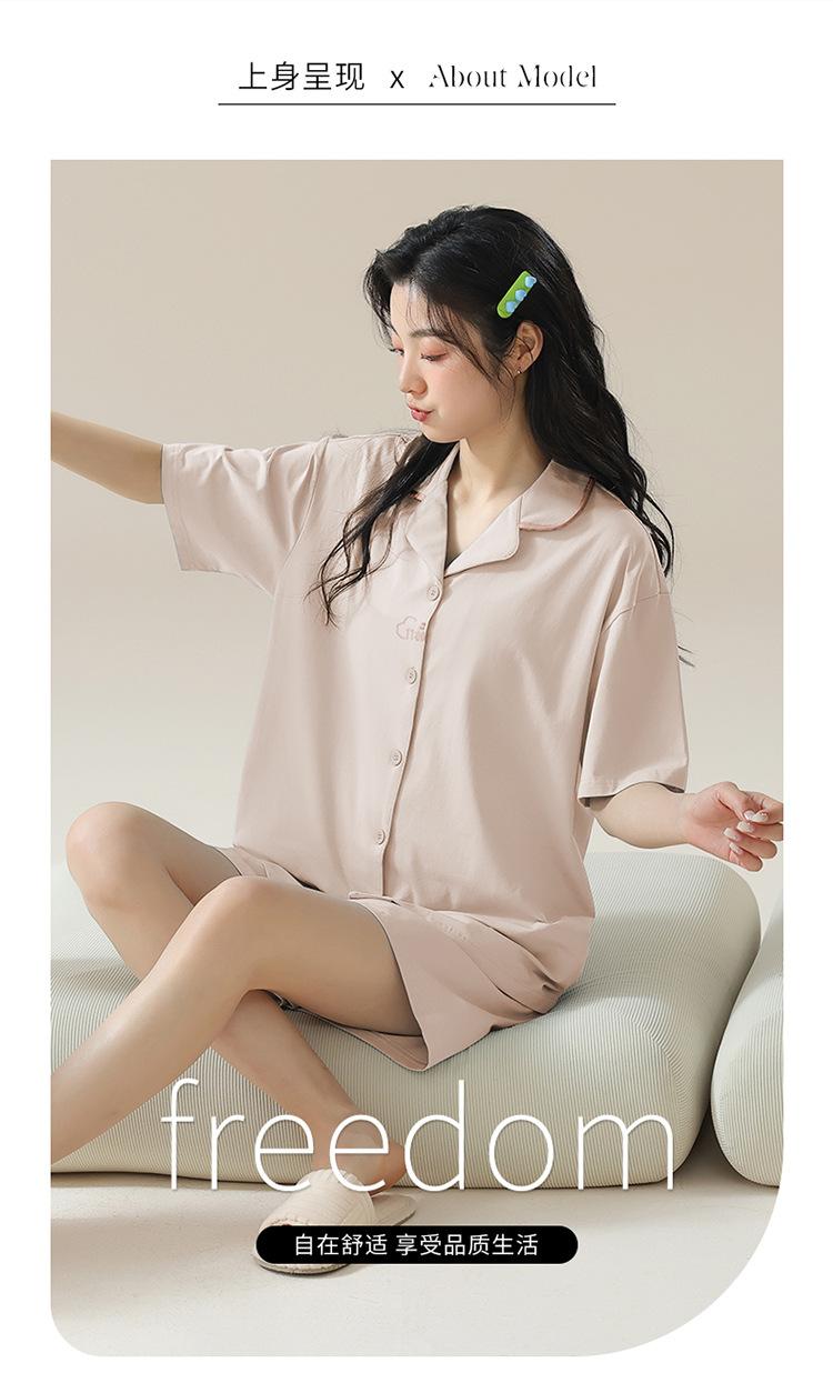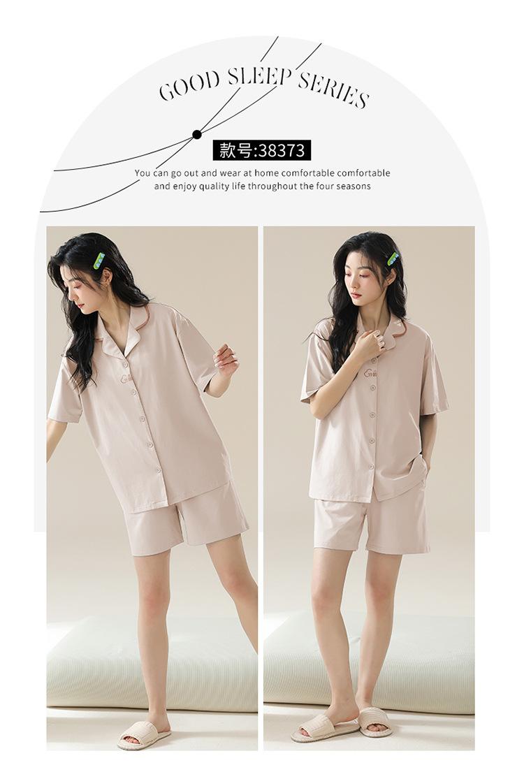[tienda] moda sencilla (Amazonas) Pijama corto de manga corta para mujer, cárdigan con solapa, ideal para usar en casa.