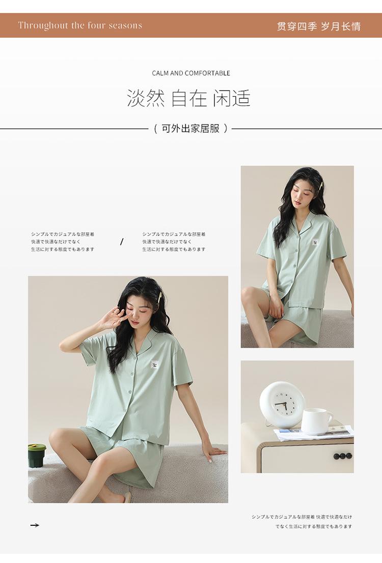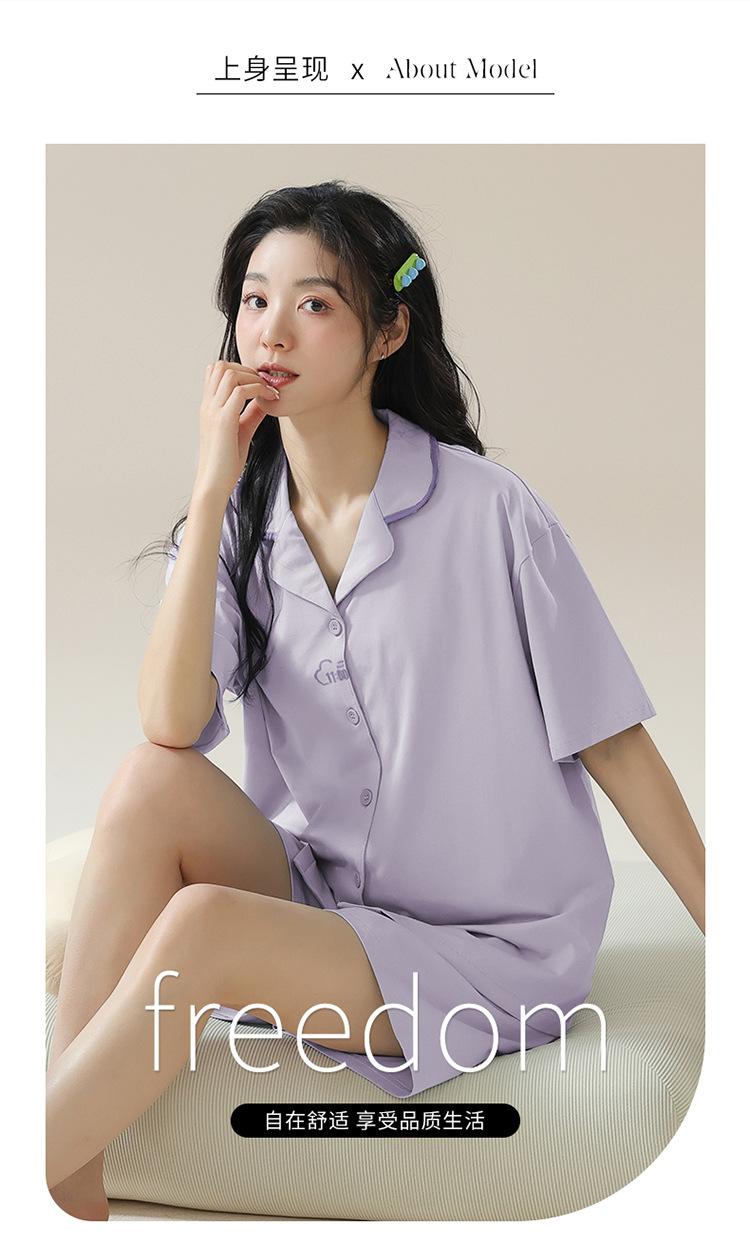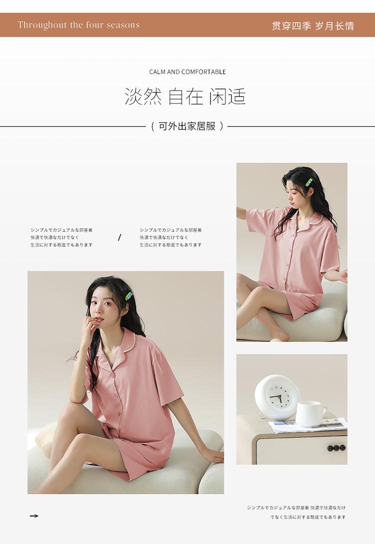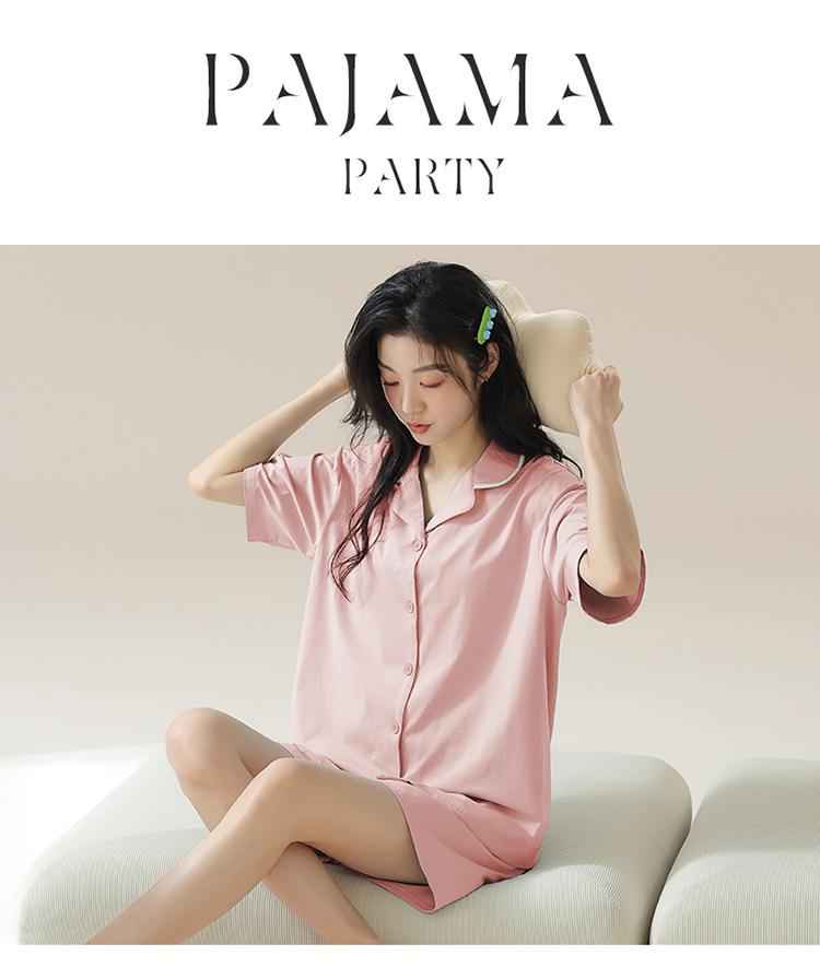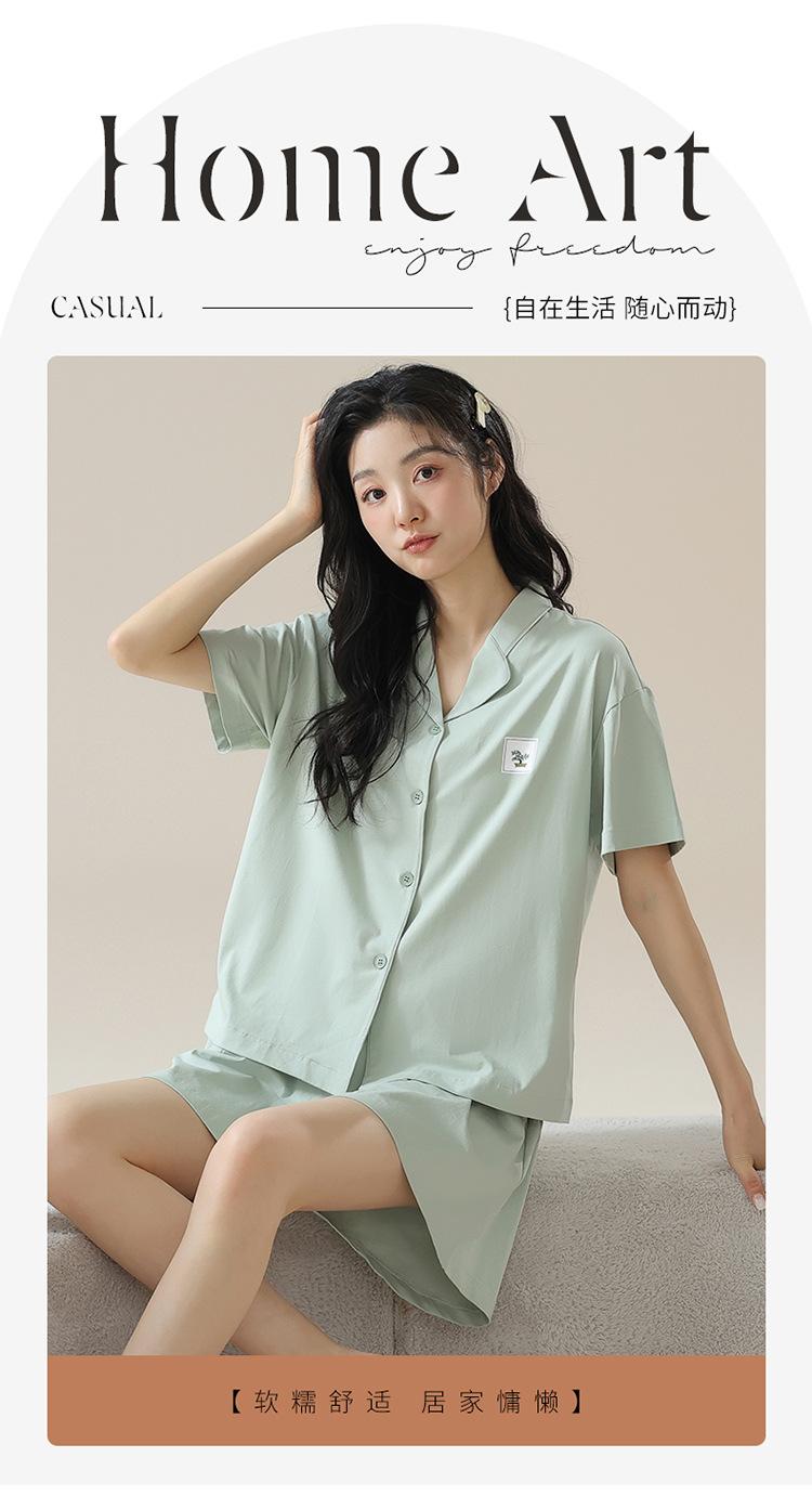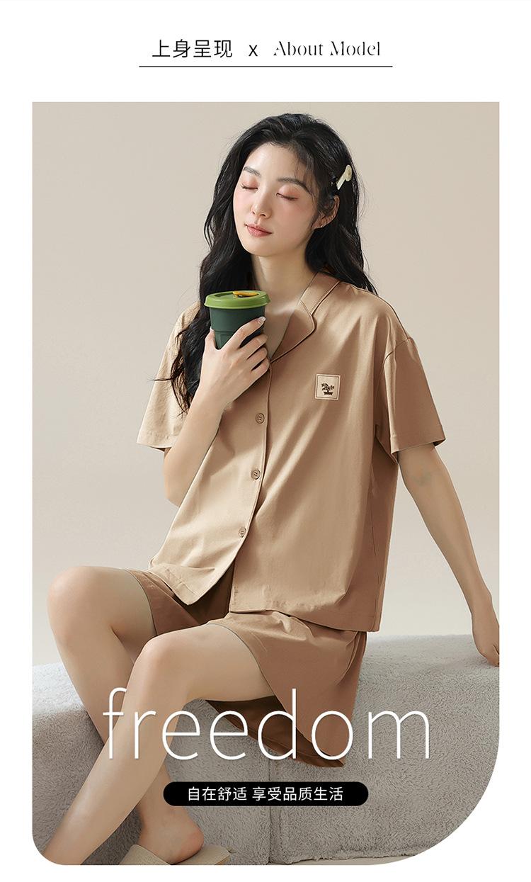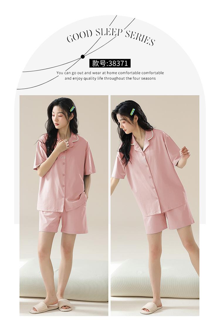 [tienda] moda sencilla (Amazonas) Pijama corto de manga corta para mujer, cárdigan con solapa, ideal para usar en casa.