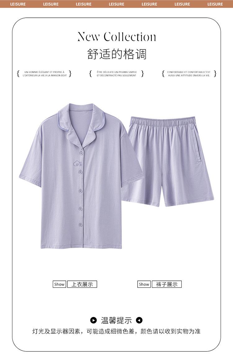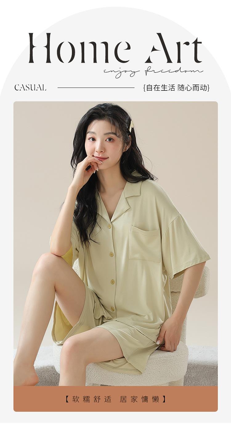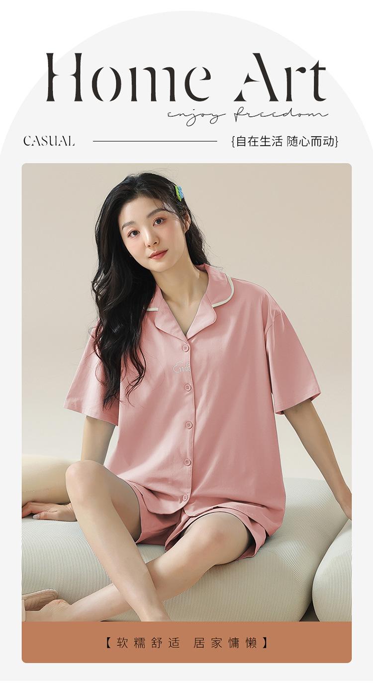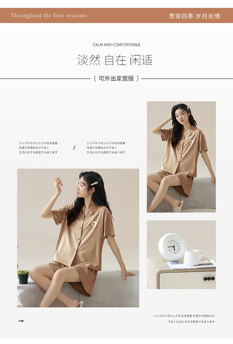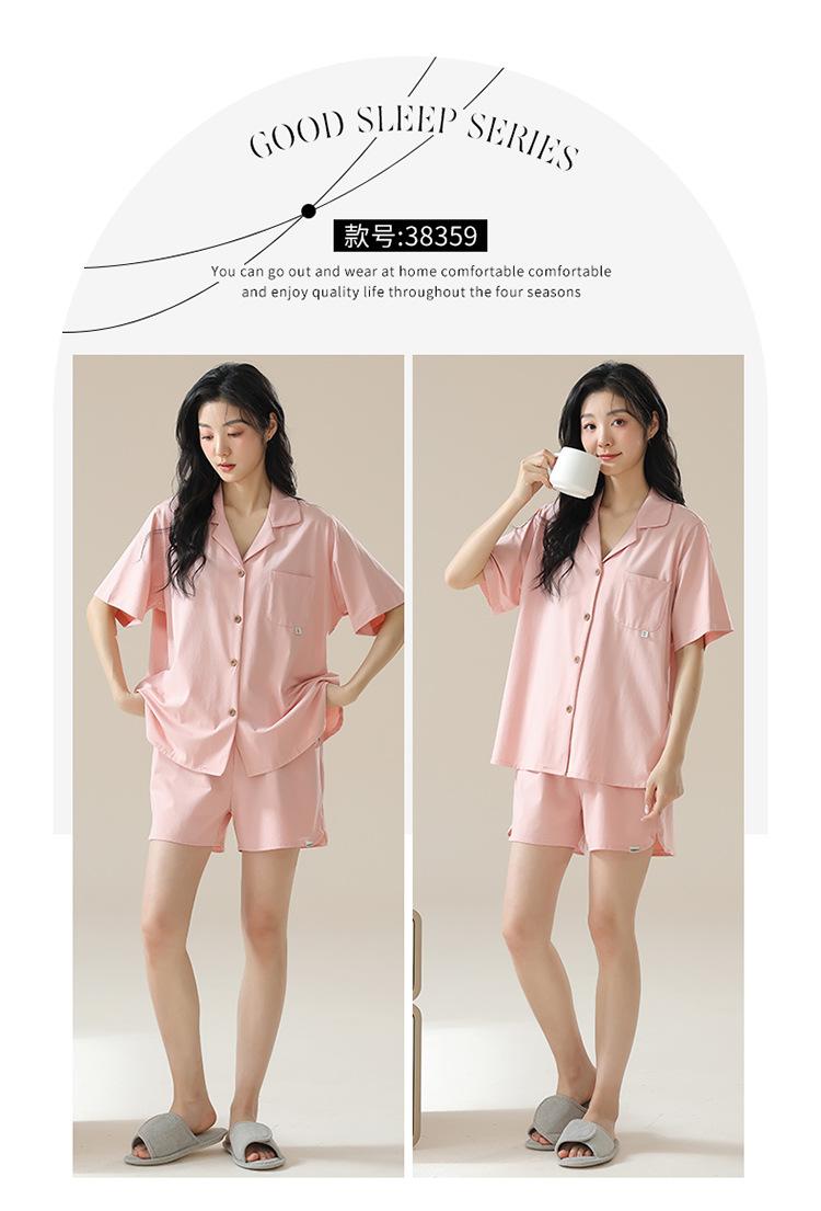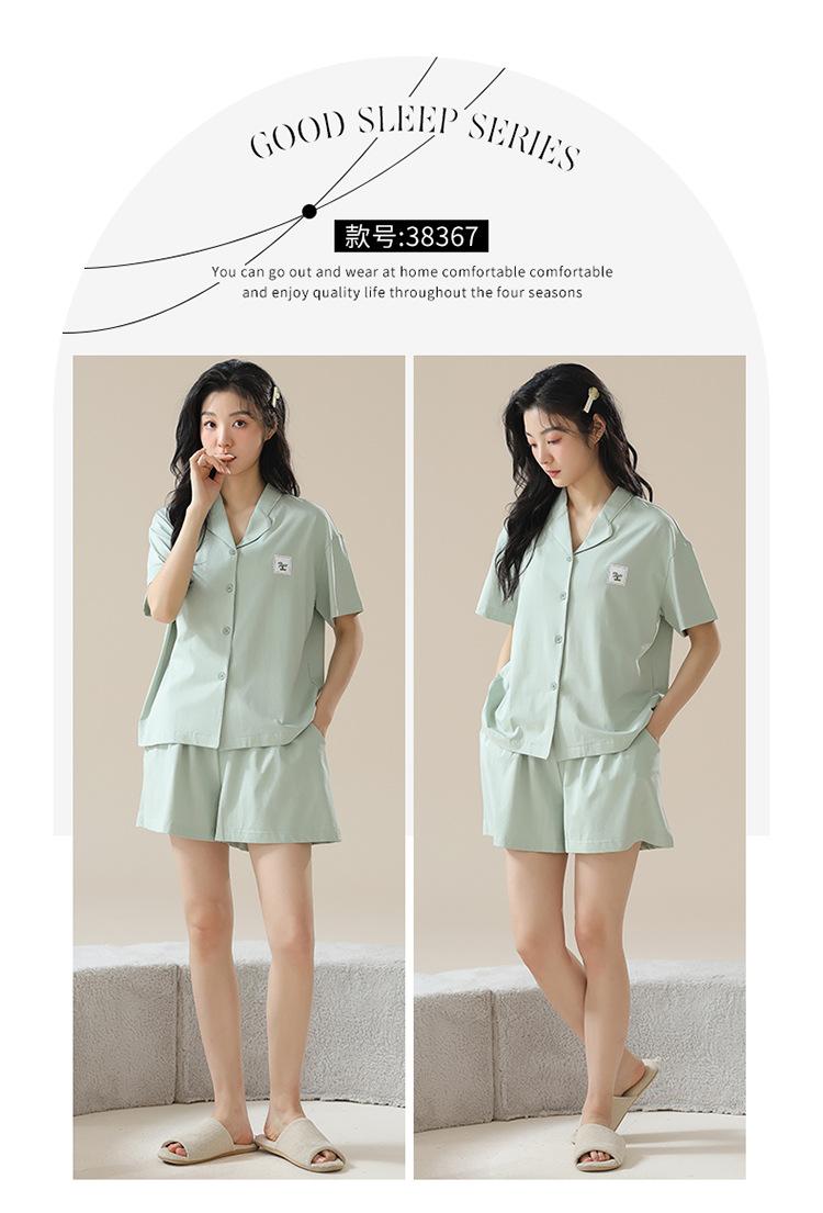 [tienda] moda sencilla (Amazonas) Pijama corto de manga corta para mujer, cárdigan con solapa, ideal para usar en casa.