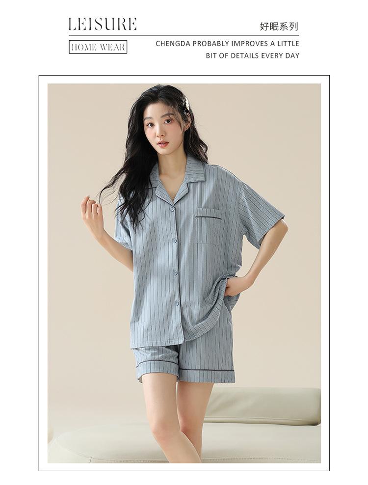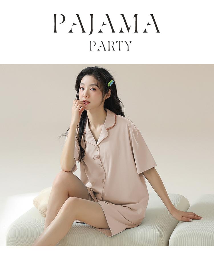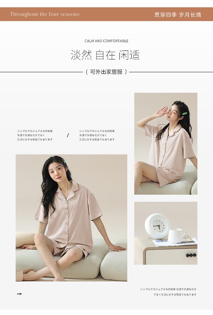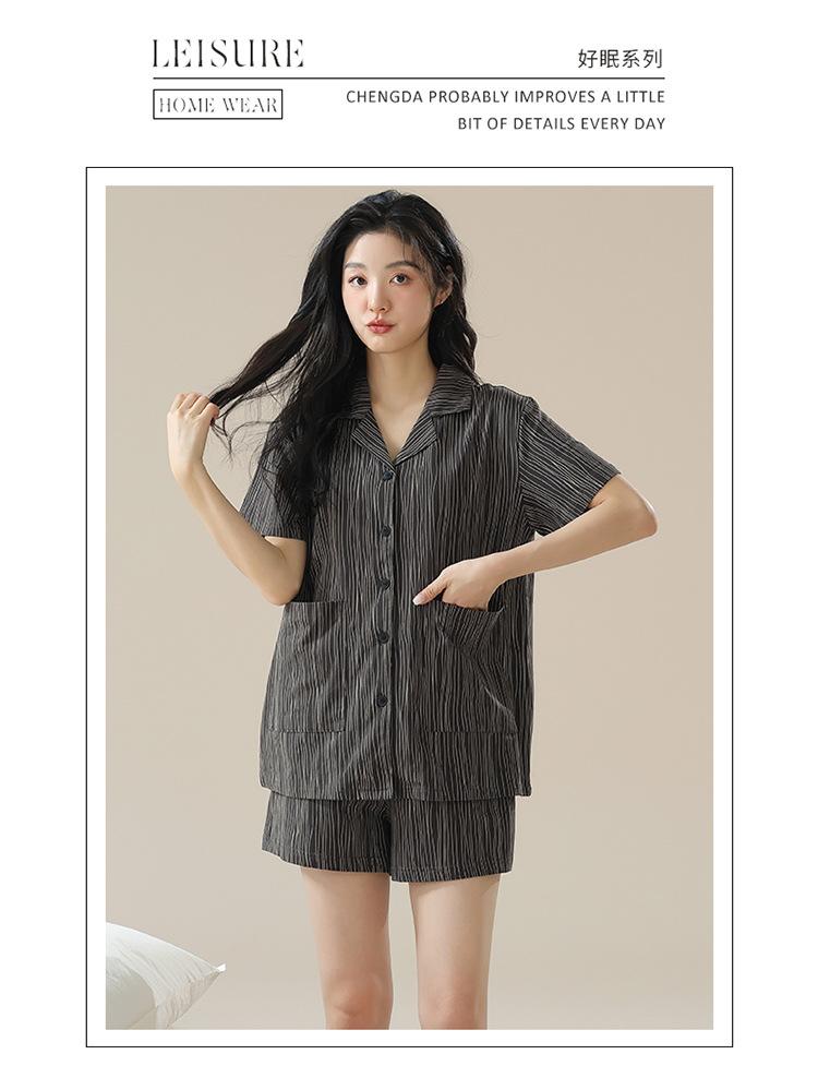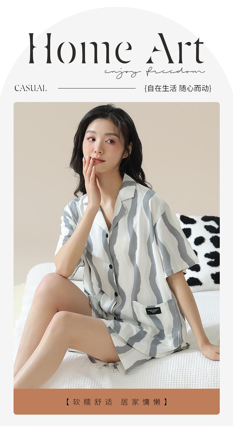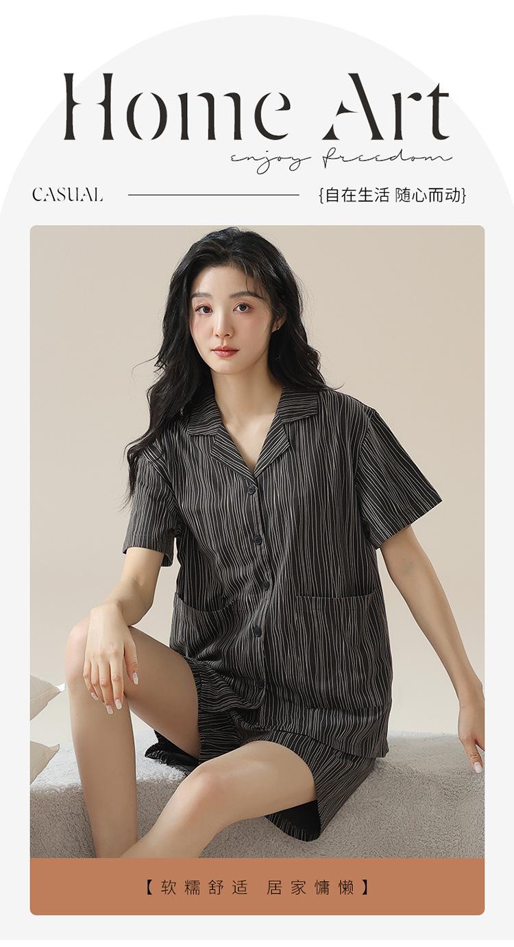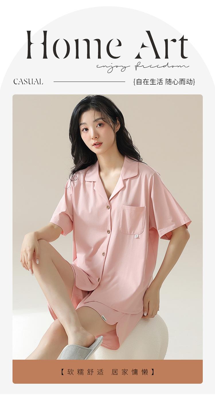 [tienda] moda sencilla (Amazonas) Pijama corto de manga corta para mujer, cárdigan con solapa, ideal para usar en casa.