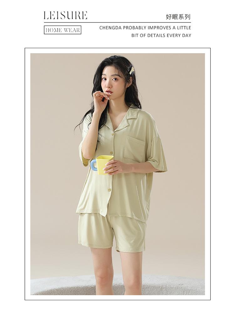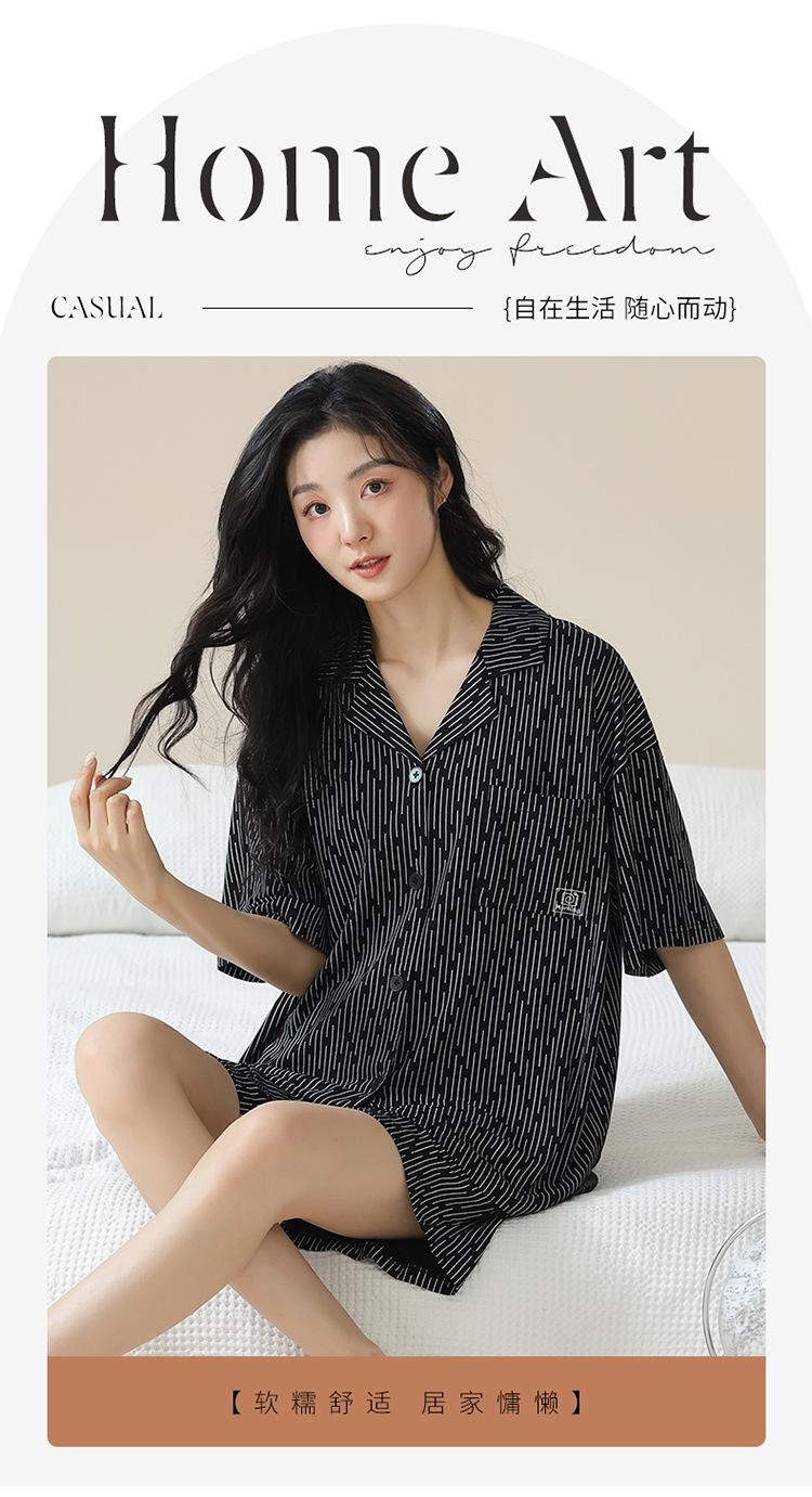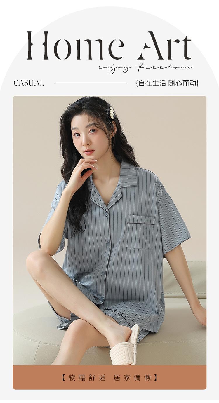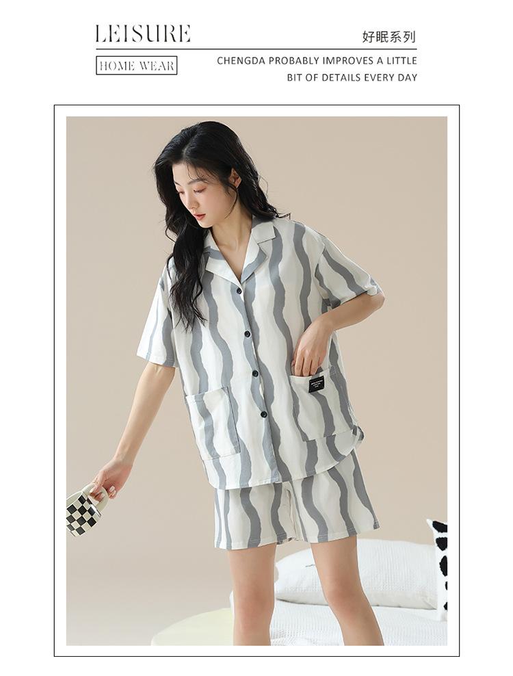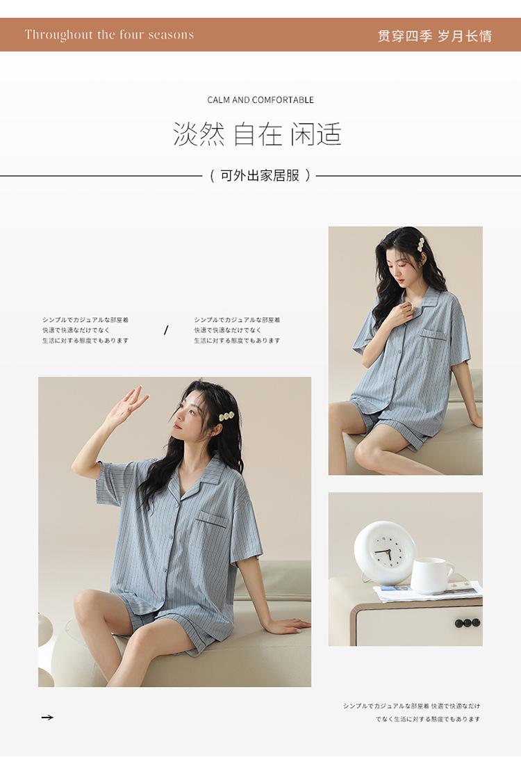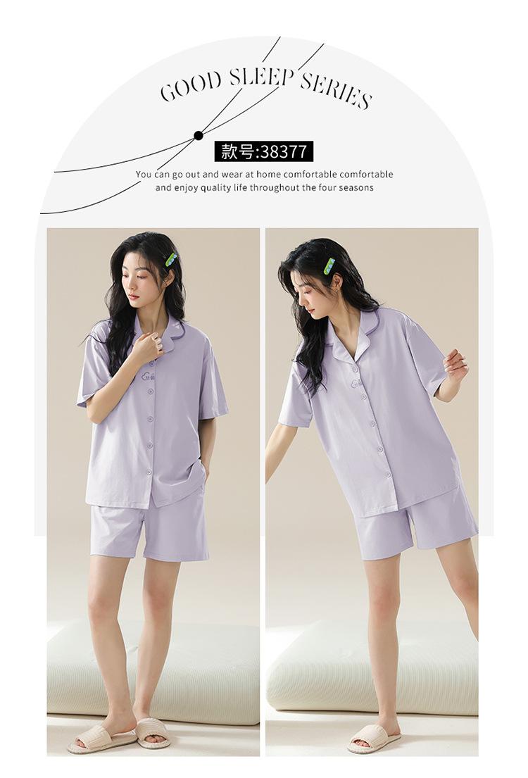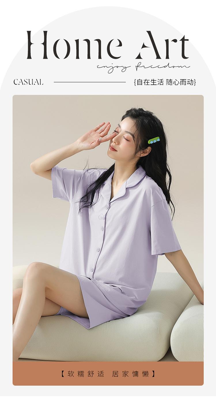 [tienda] moda sencilla (Amazonas) Pijama corto de manga corta para mujer, cárdigan con solapa, ideal para usar en casa.