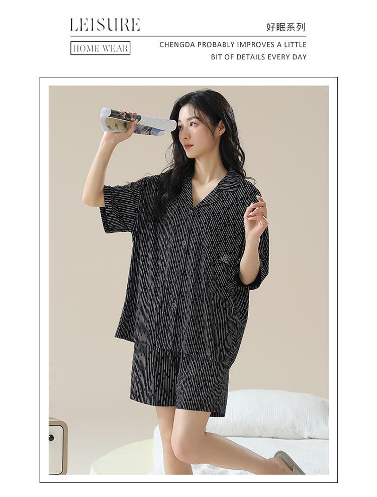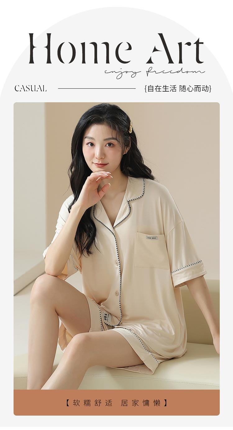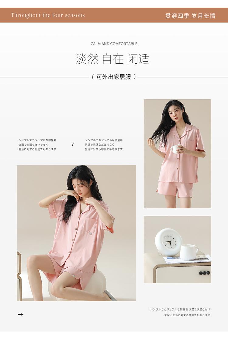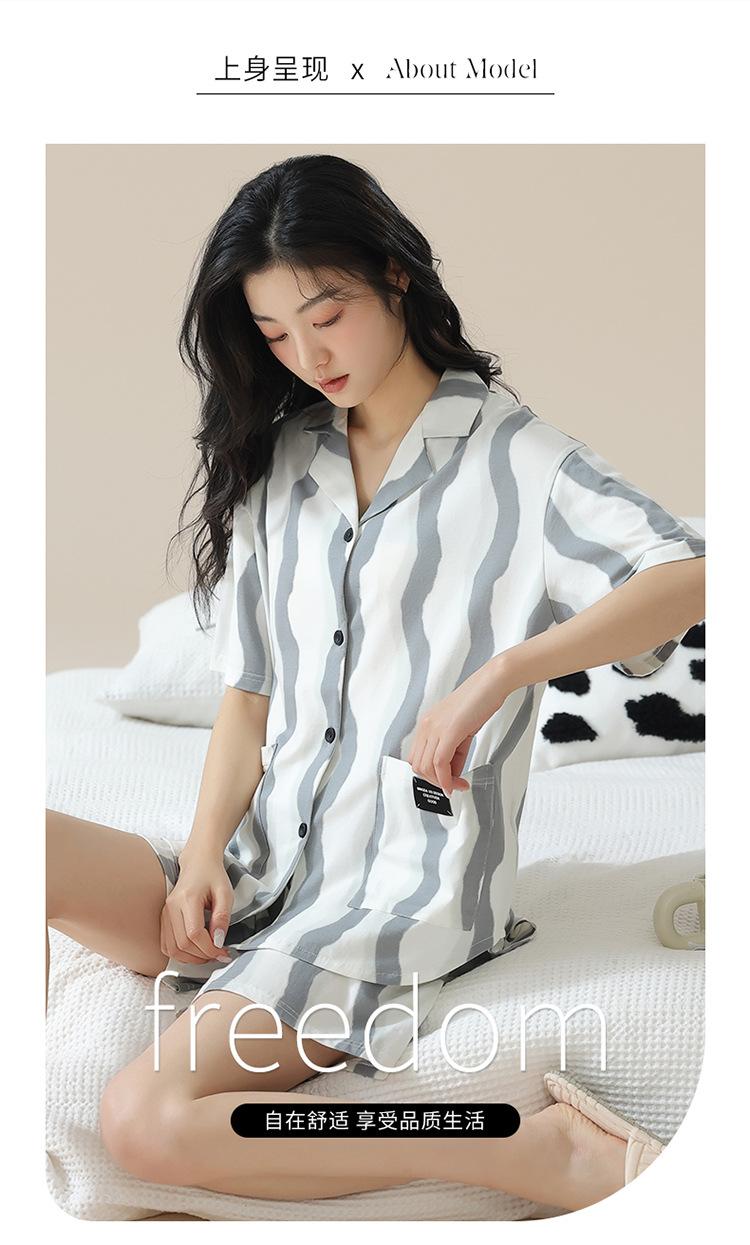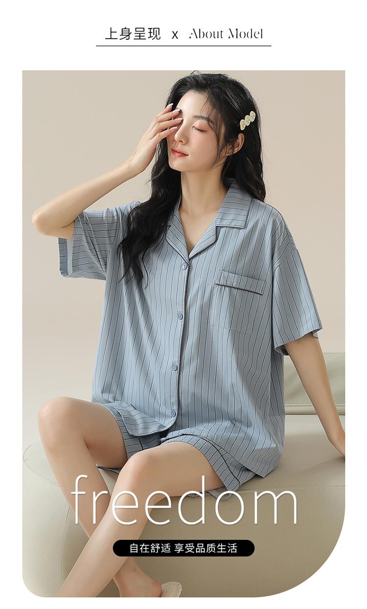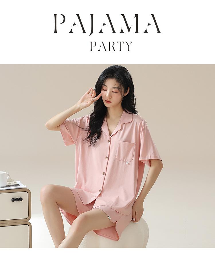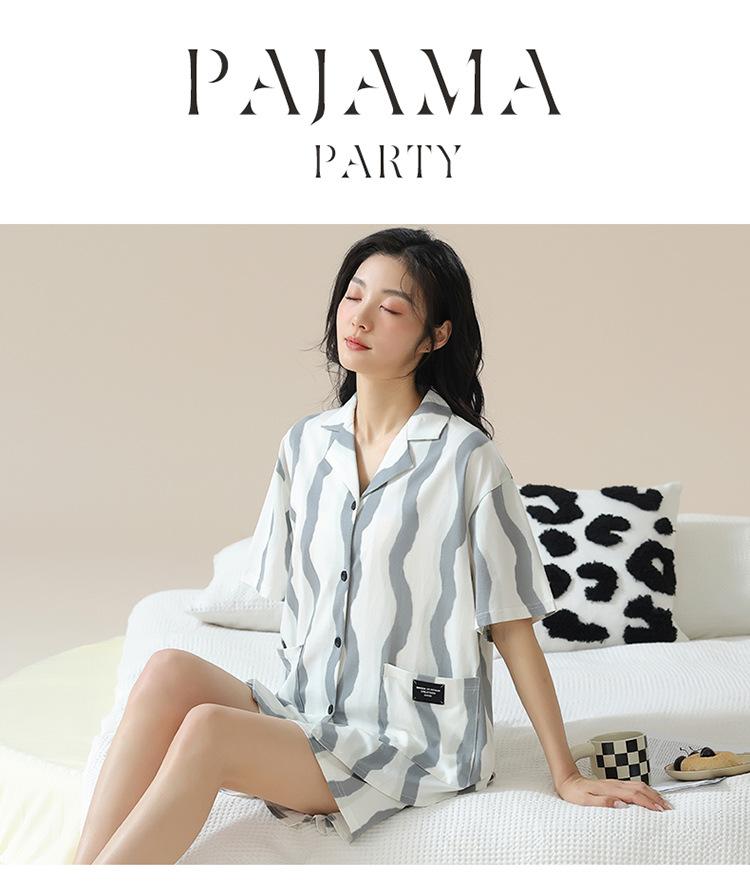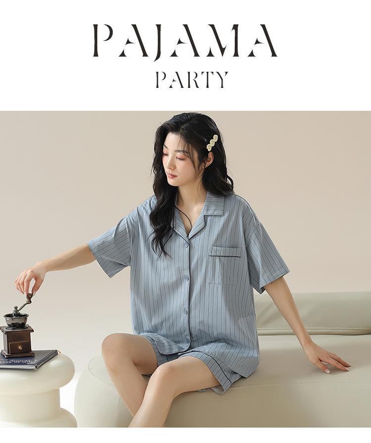 [tienda] moda sencilla (Amazonas) Pijama corto de manga corta para mujer, cárdigan con solapa, ideal para usar en casa.