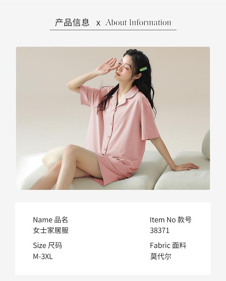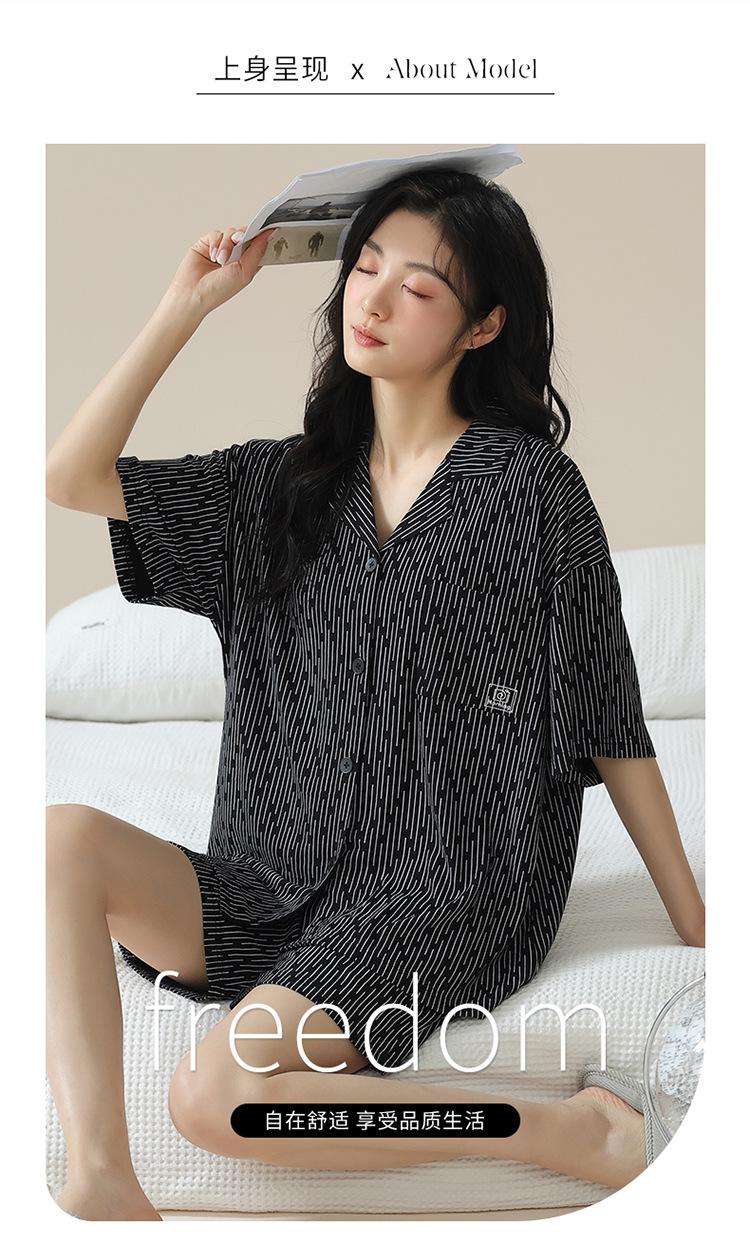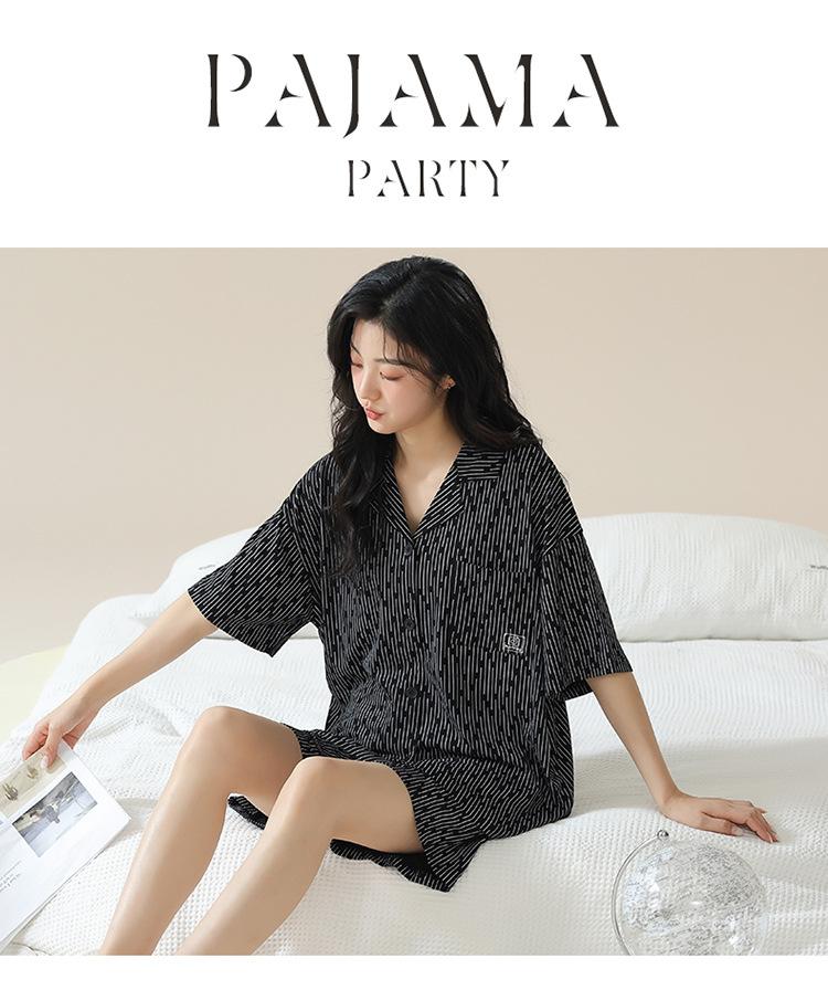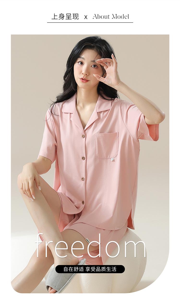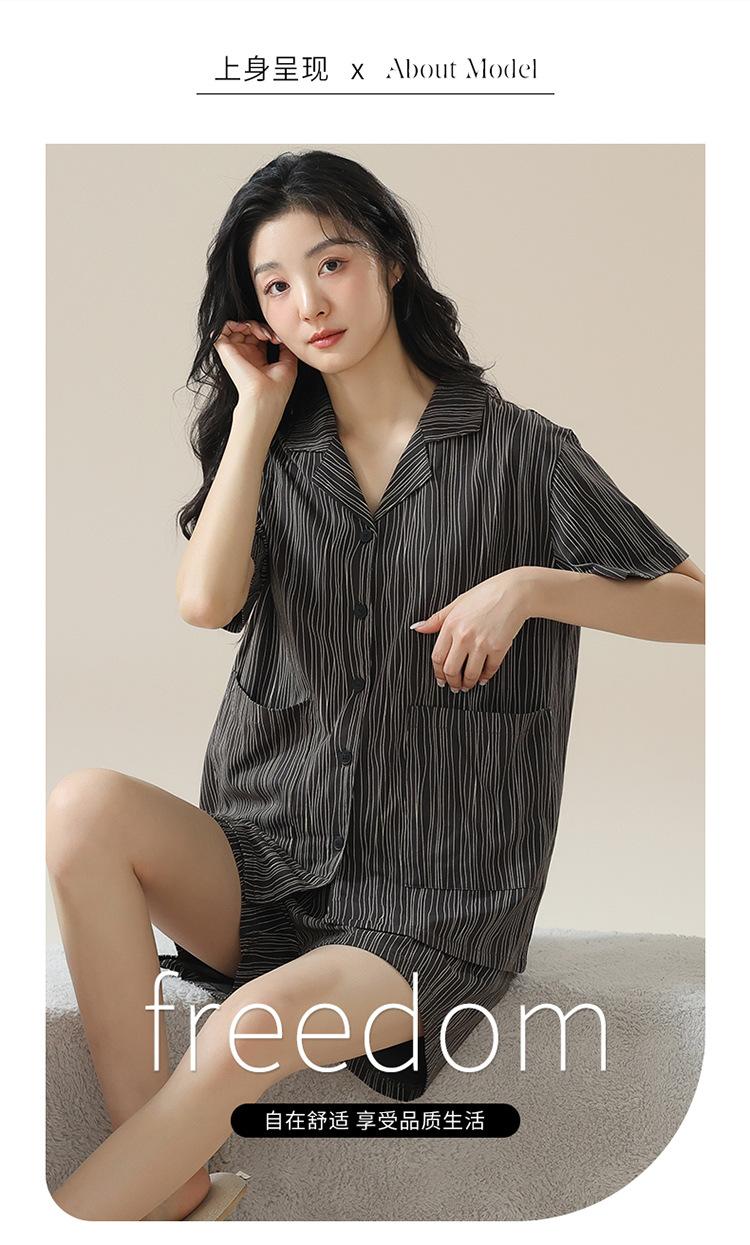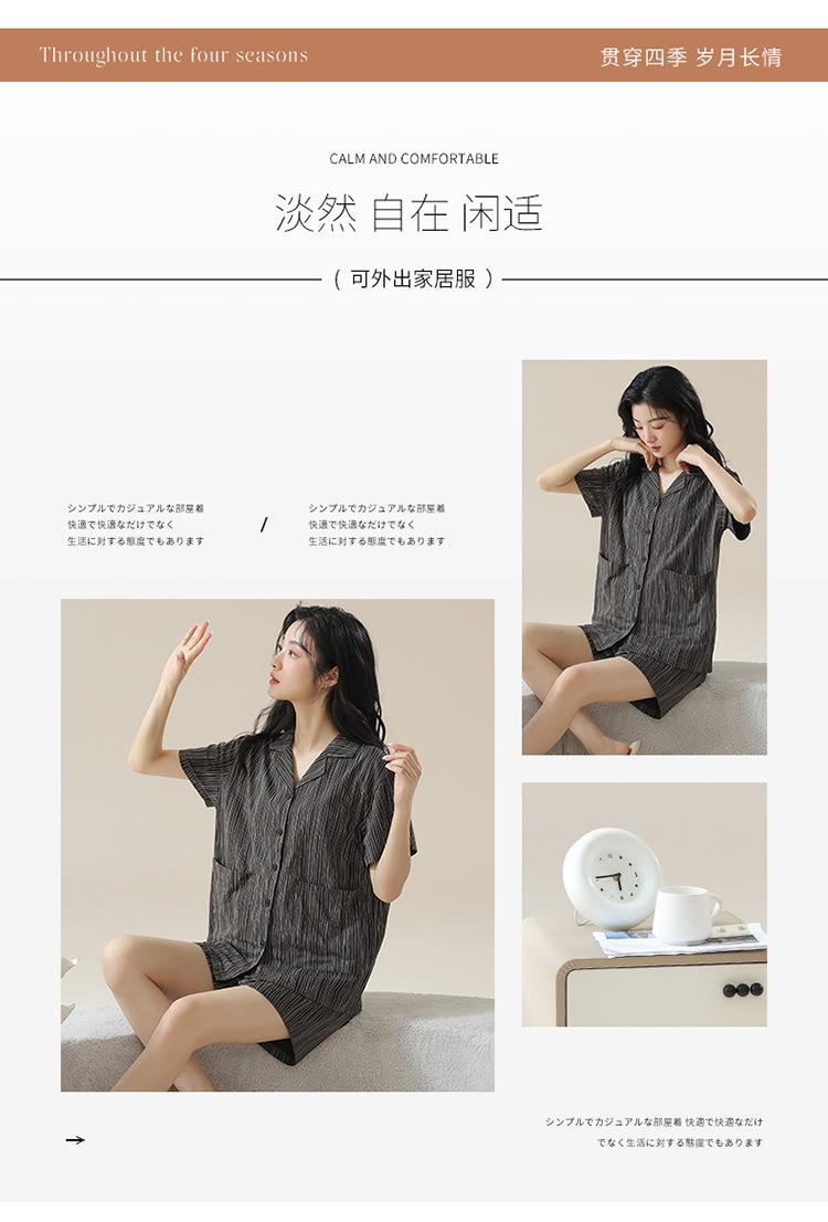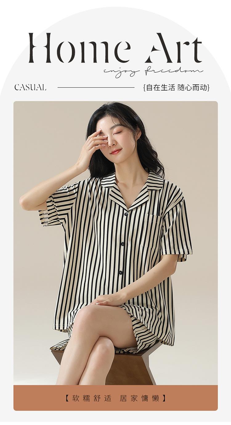 [tienda] moda sencilla (Amazonas) Pijama corto de manga corta para mujer, cárdigan con solapa, ideal para usar en casa.