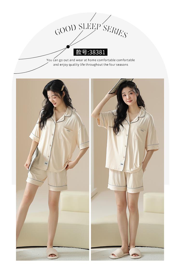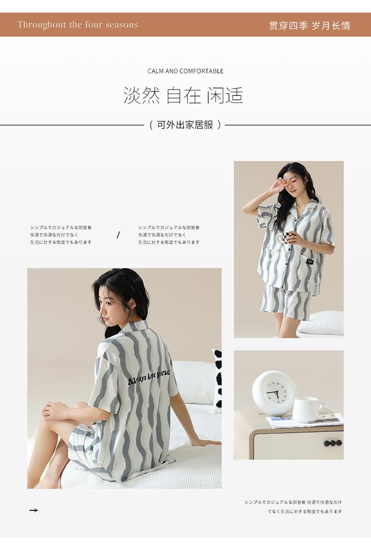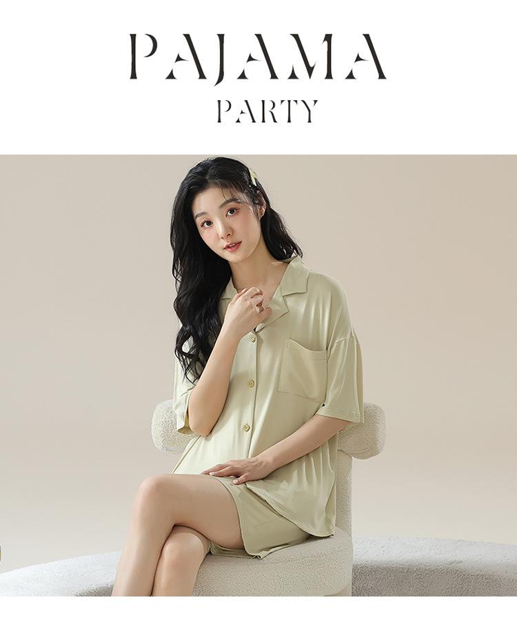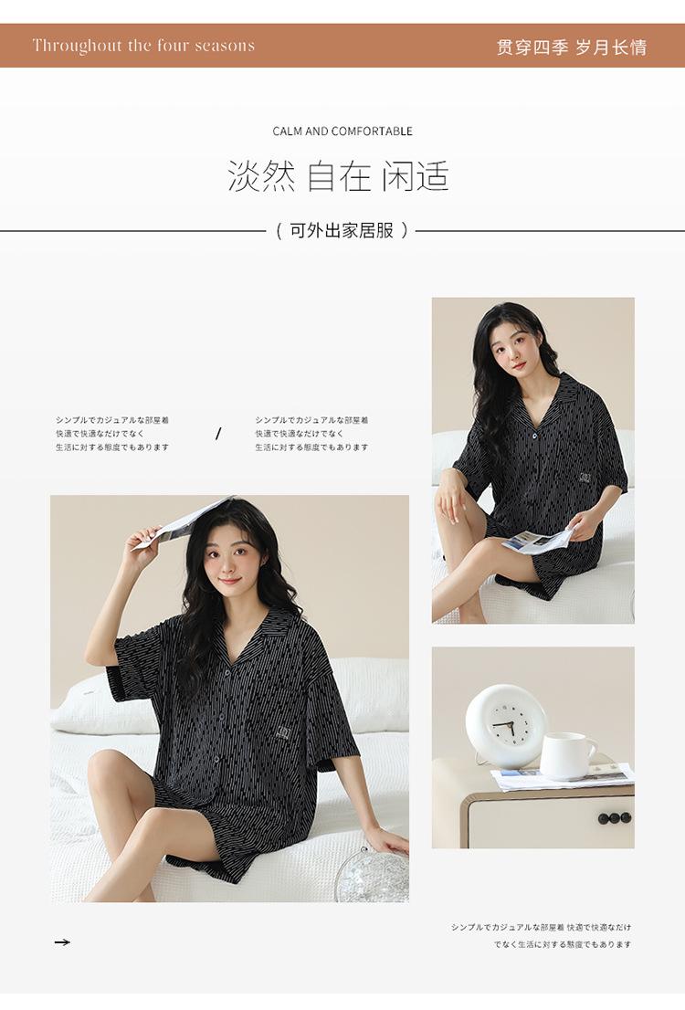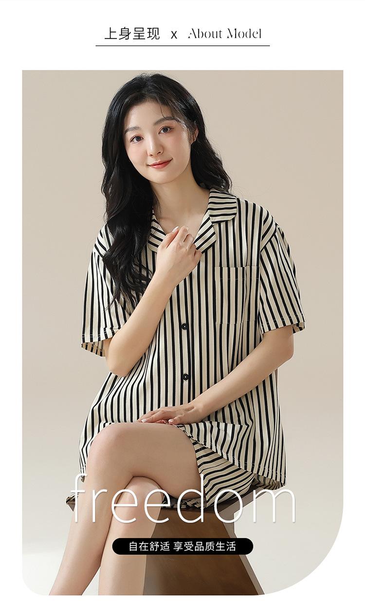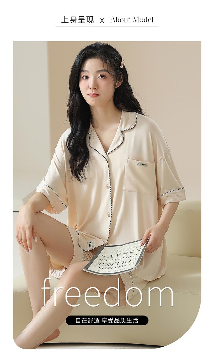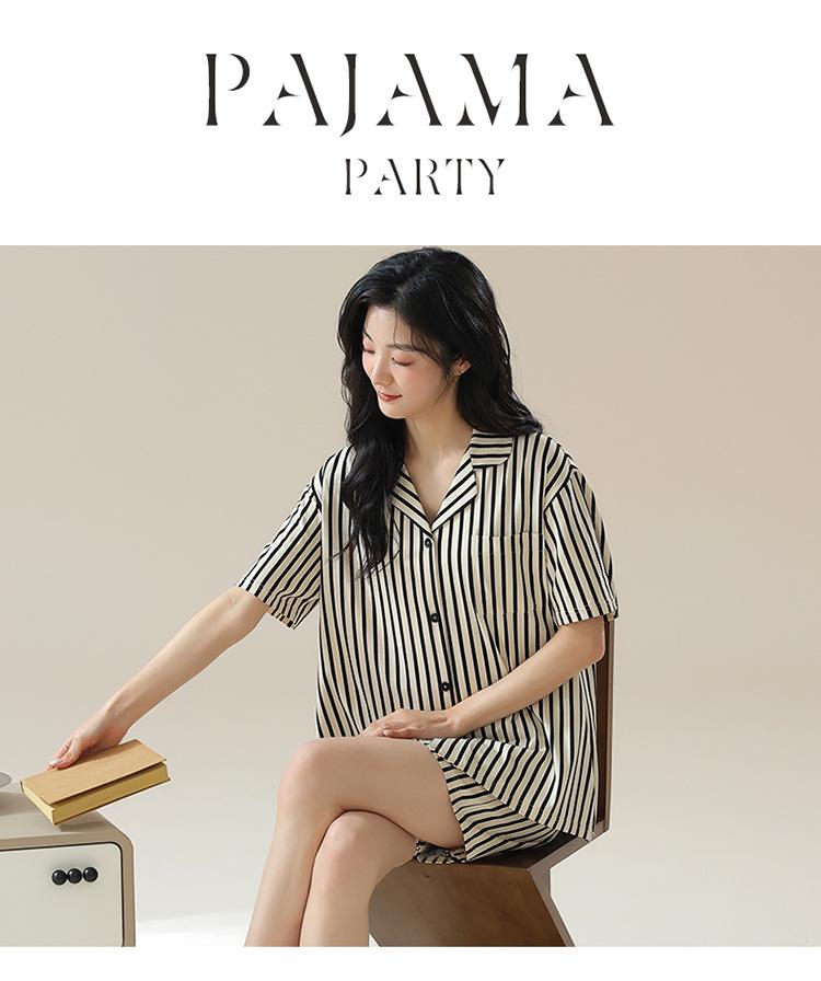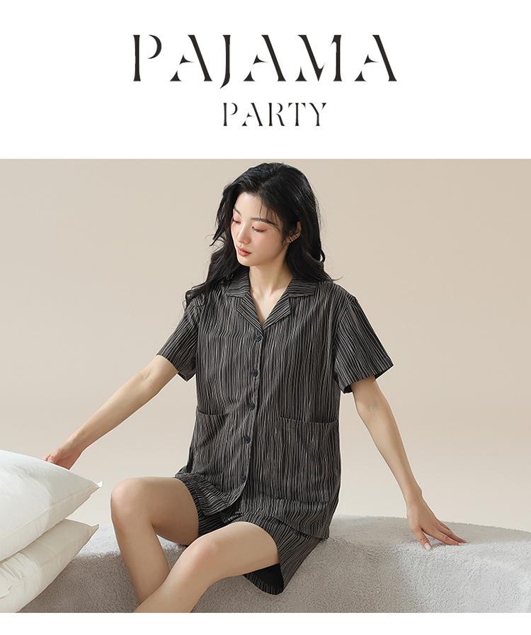 [tienda] moda sencilla (Amazonas) Pijama corto de manga corta para mujer, cárdigan con solapa, ideal para usar en casa.