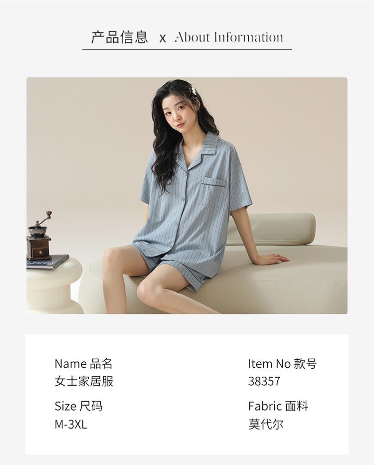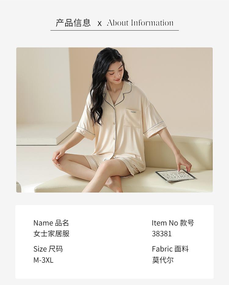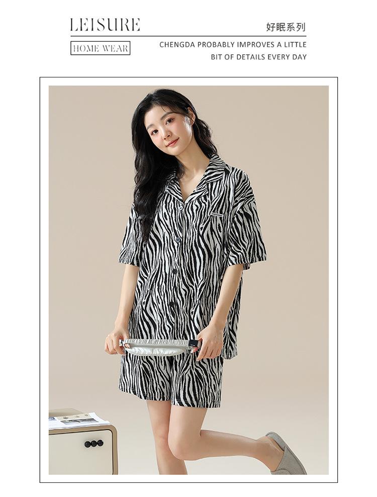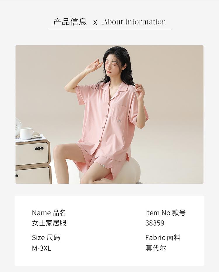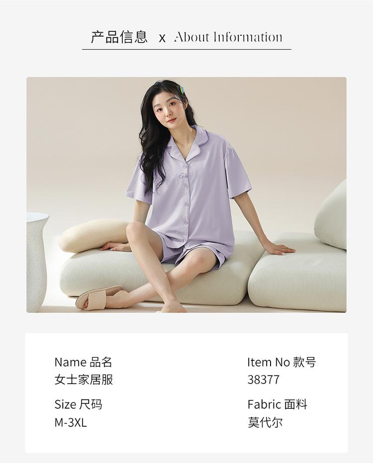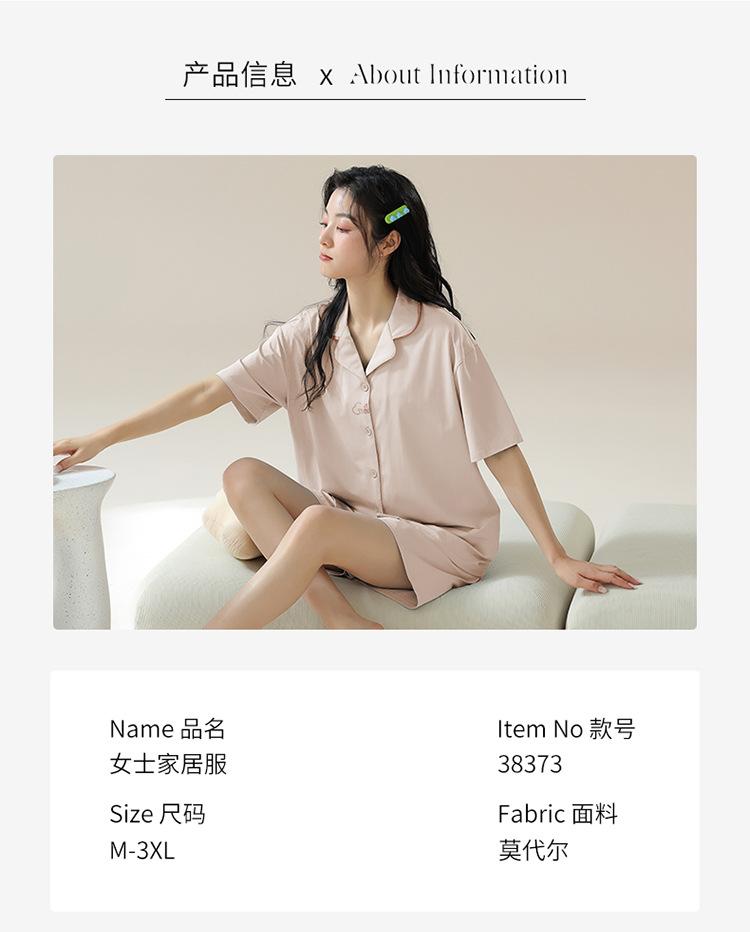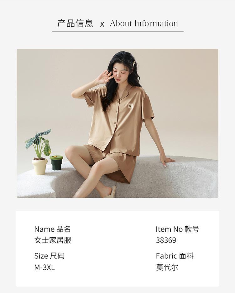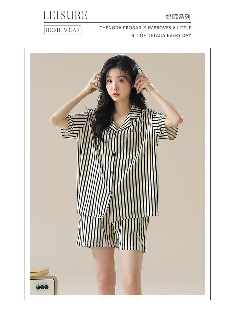 [tienda] moda sencilla (Amazonas) Pijama corto de manga corta para mujer, cárdigan con solapa, ideal para usar en casa.