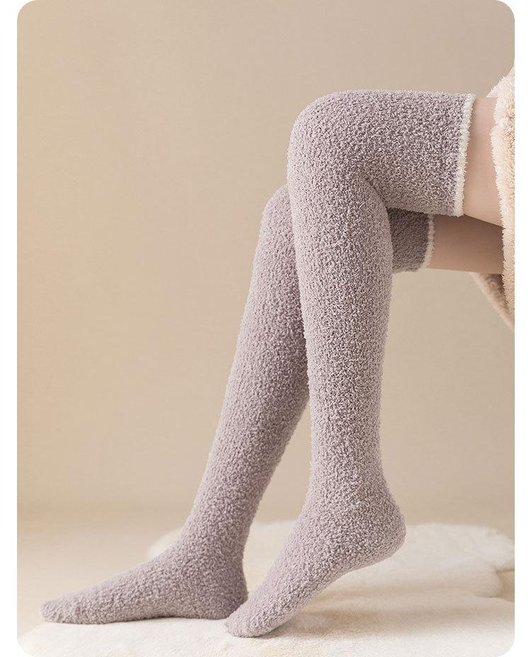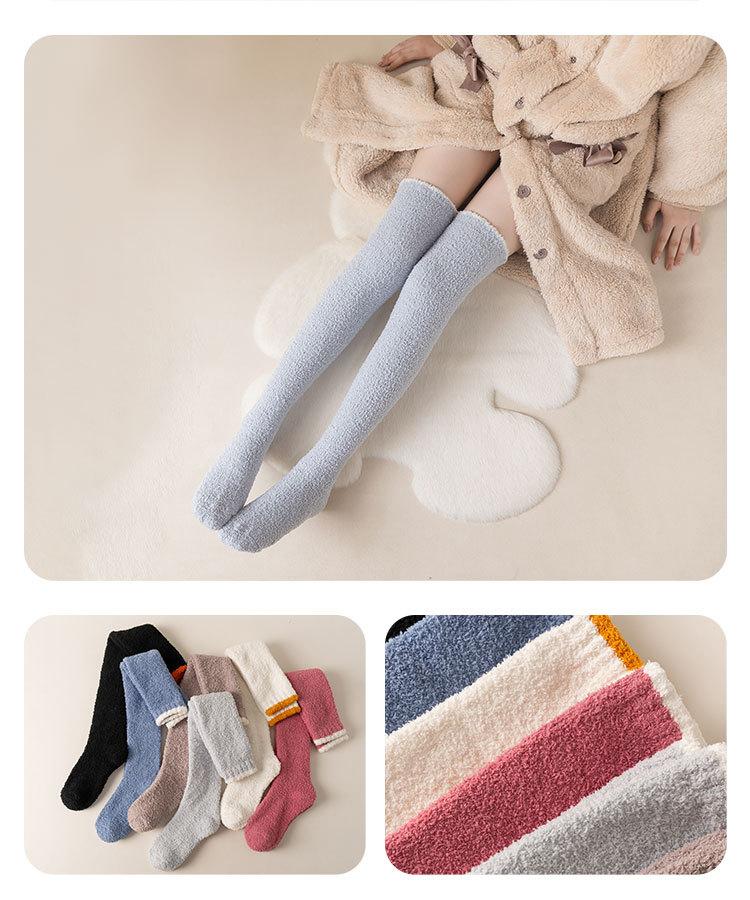 Calcetines de vellón coral hasta la rodilla Calcetines de vellón coral hasta la rodilla Calcetines de suelo para dormir abrigados y gruesos para el hogar