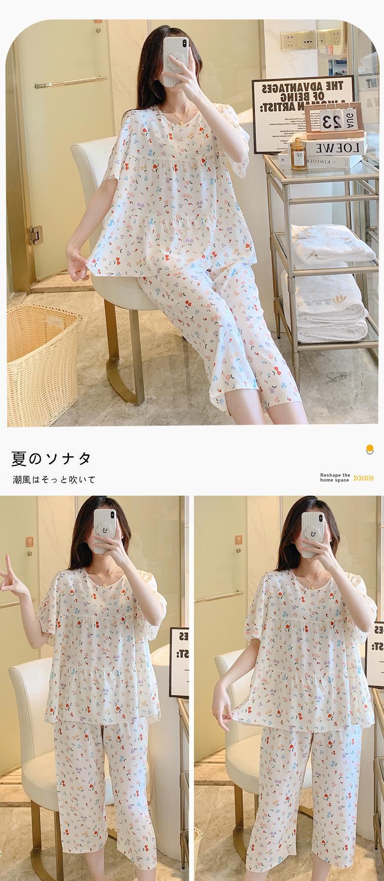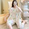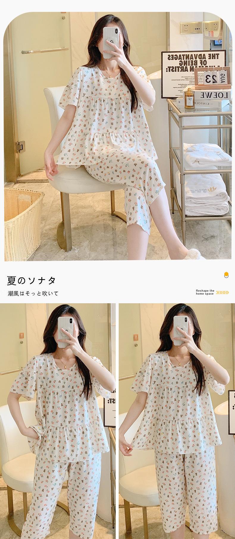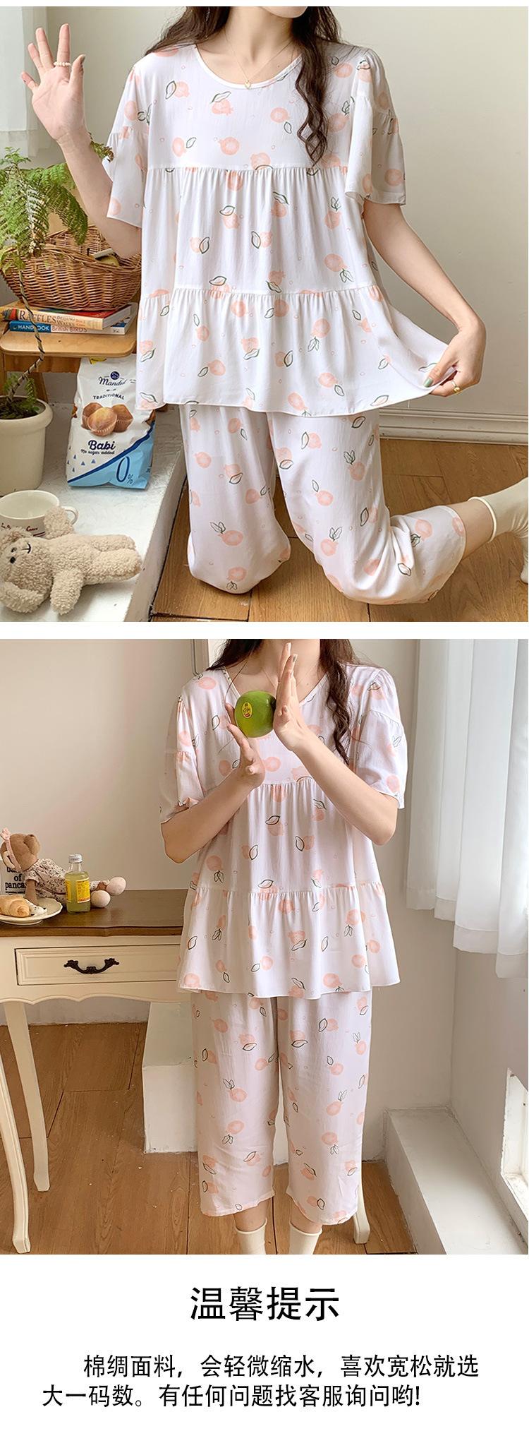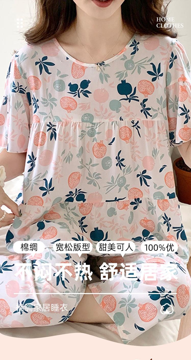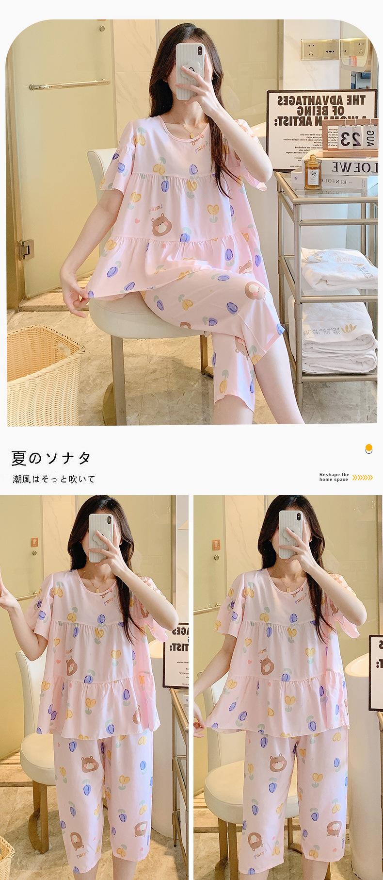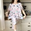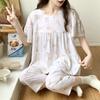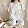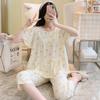 Pijama de seda de algodón de manga corta de verano para mujer, estilo princesa dulce de verano, ropa fresca para el hogar, traje exterior de seda de algodón de talla grande.