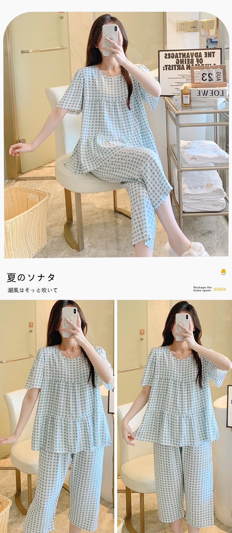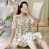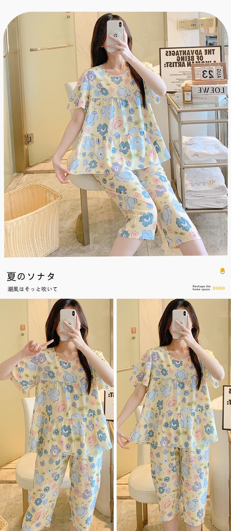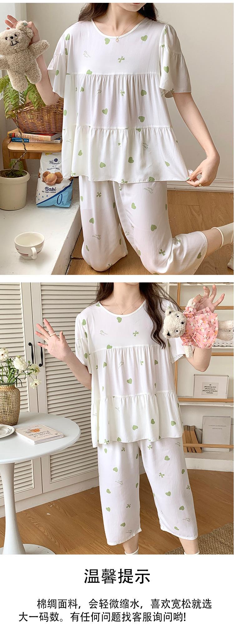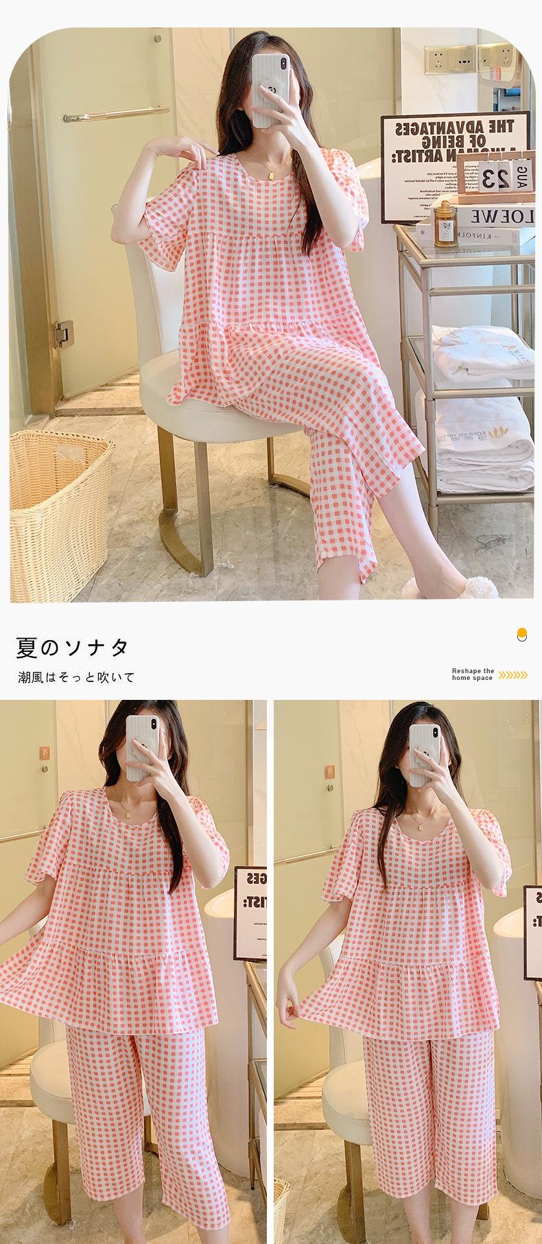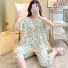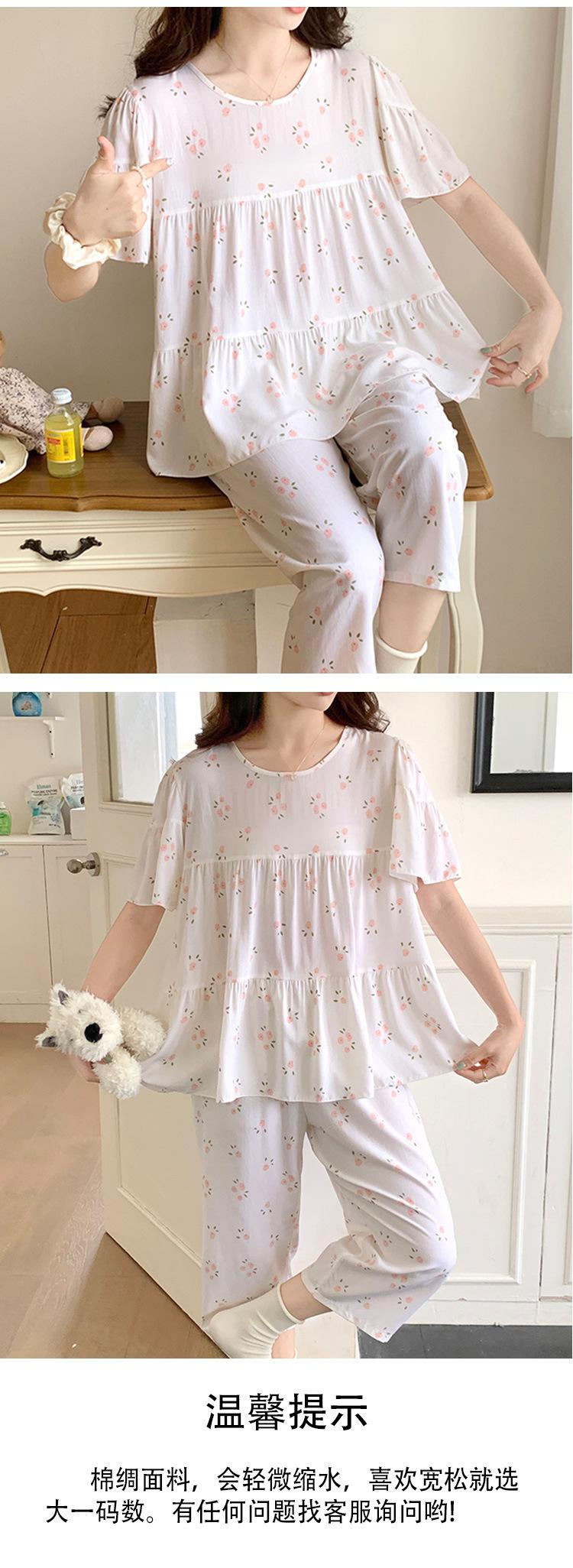 Pijama de seda de algodón de manga corta de verano para mujer, estilo princesa dulce de verano, ropa fresca para el hogar, traje exterior de seda de algodón de talla grande.
