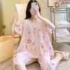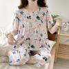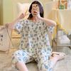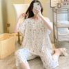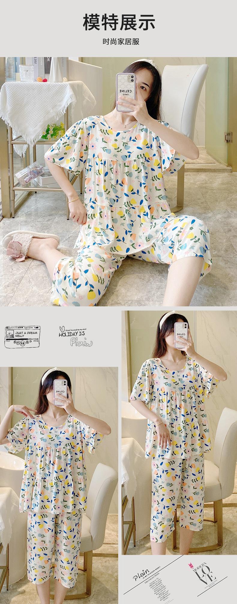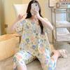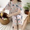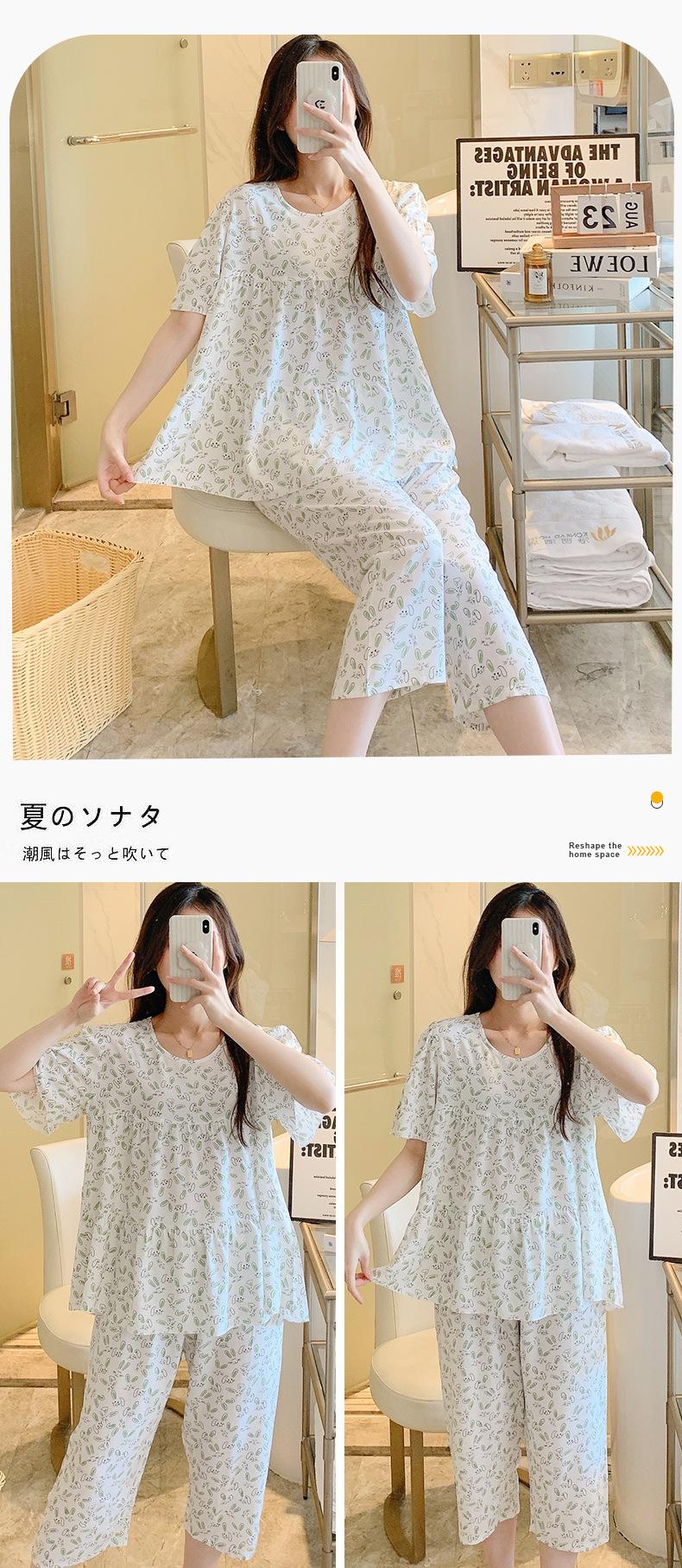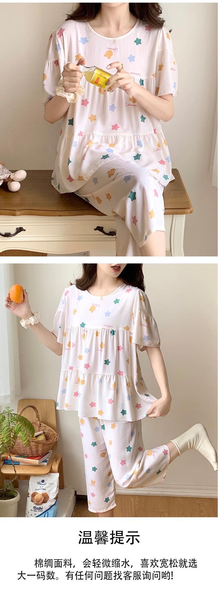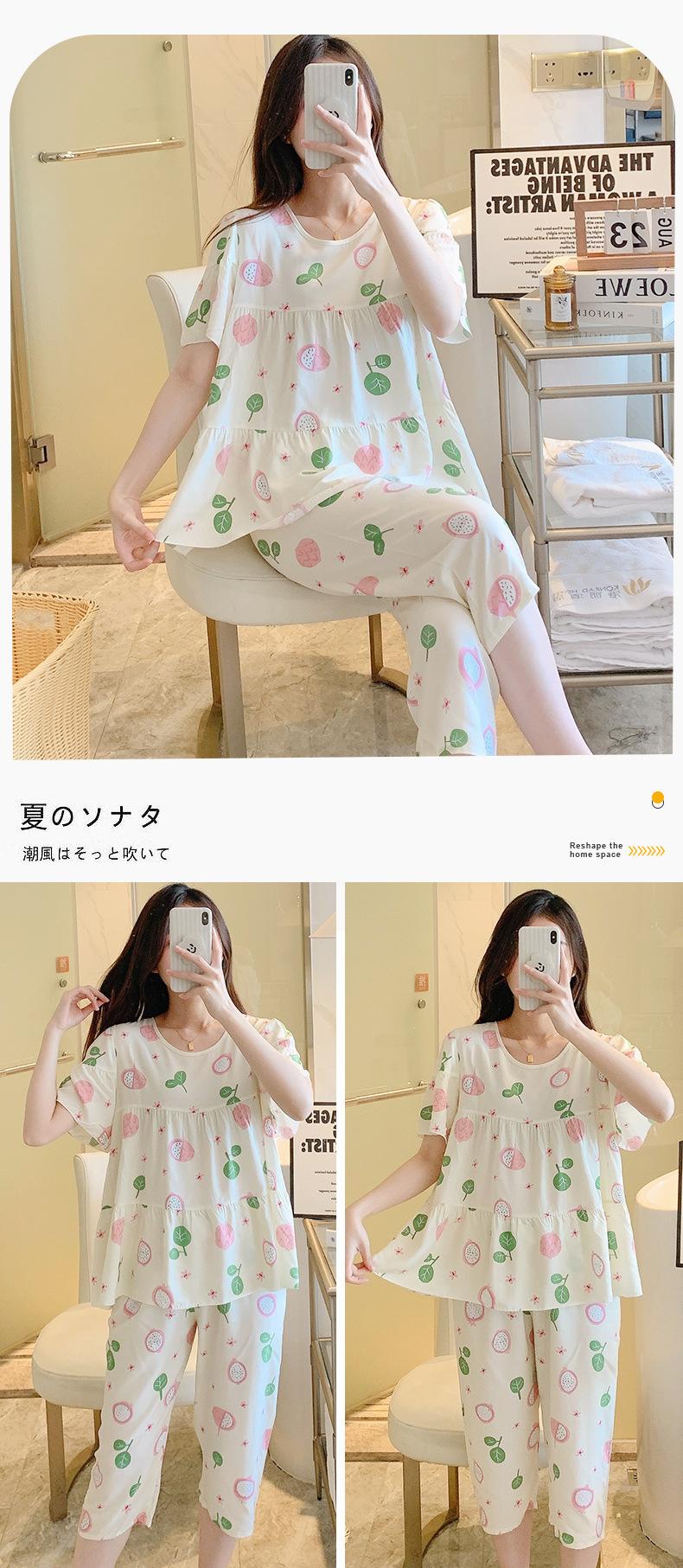 Pijama de seda de algodón de manga corta de verano para mujer, estilo princesa dulce de verano, ropa fresca para el hogar, traje exterior de seda de algodón de talla grande.
