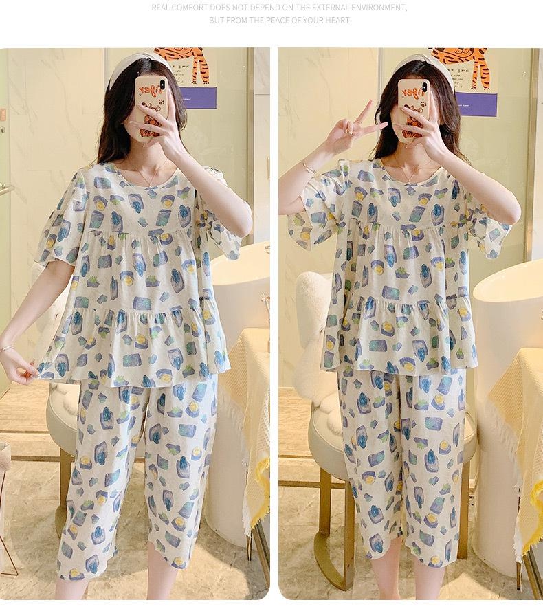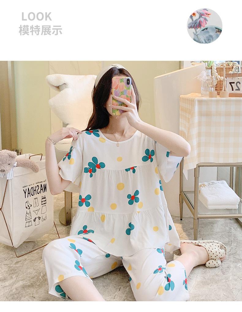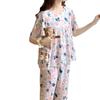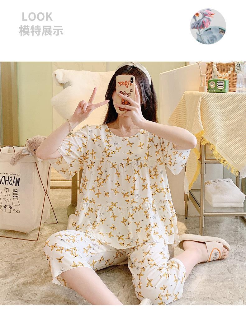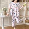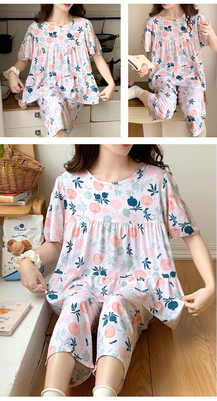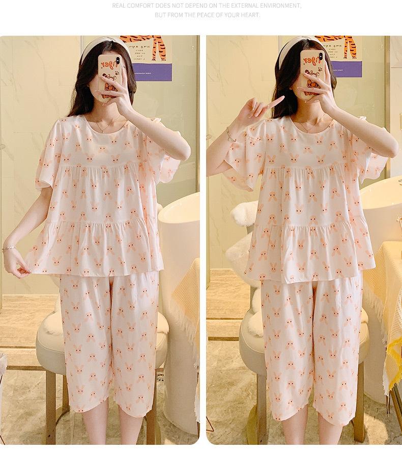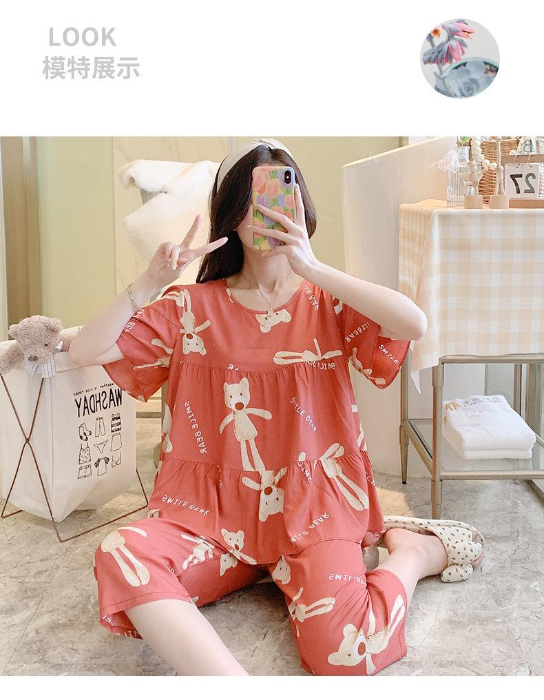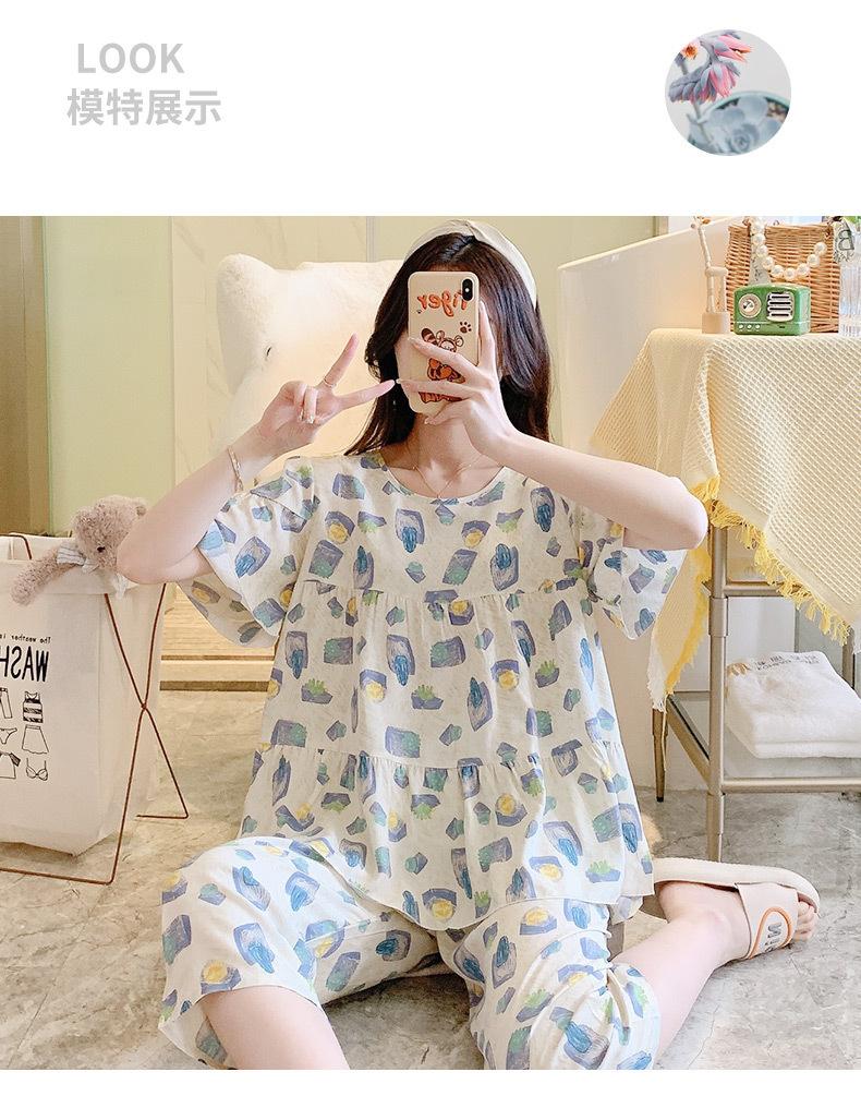 Pijama de seda de algodón de manga corta de verano para mujer, estilo princesa dulce de verano, ropa fresca para el hogar, traje exterior de seda de algodón de talla grande.