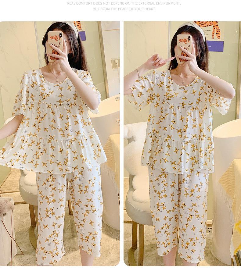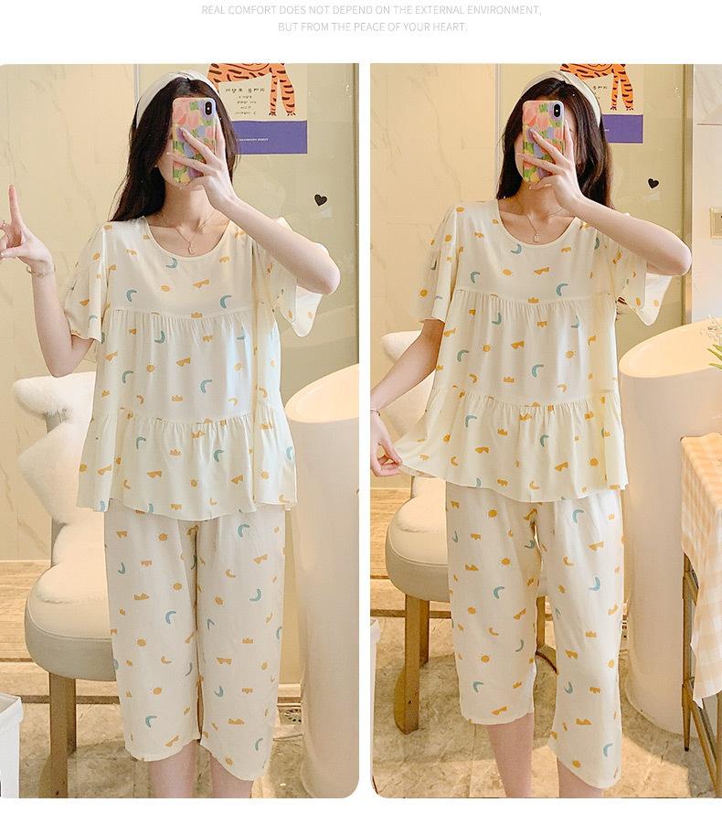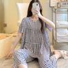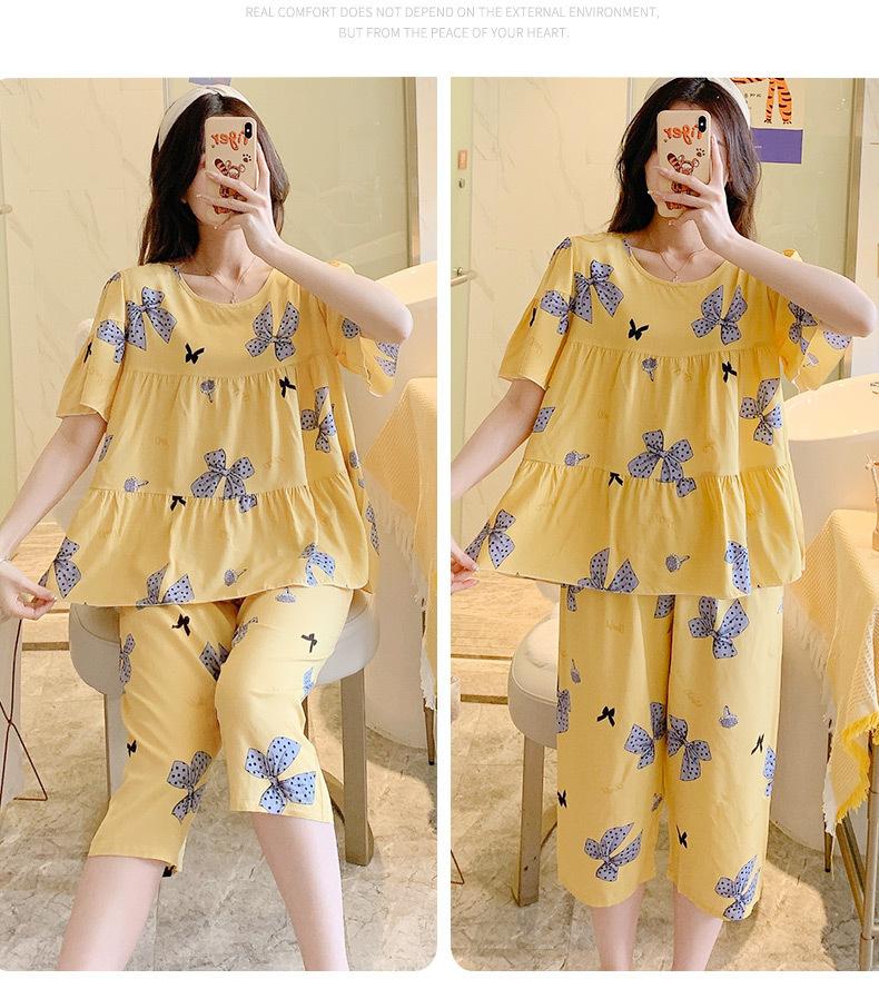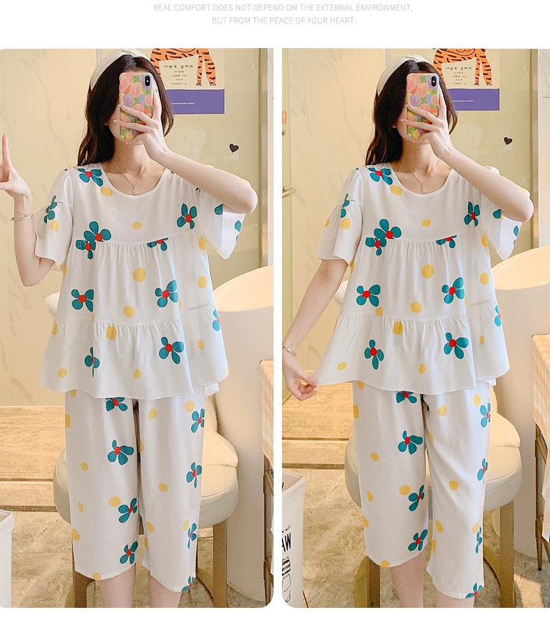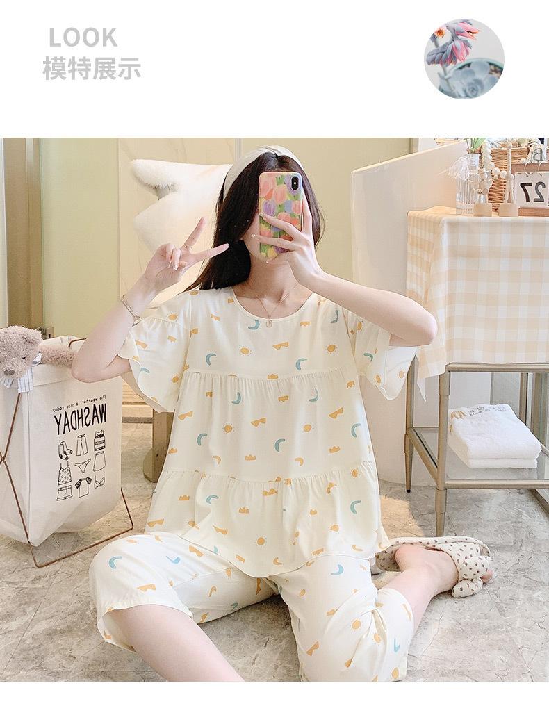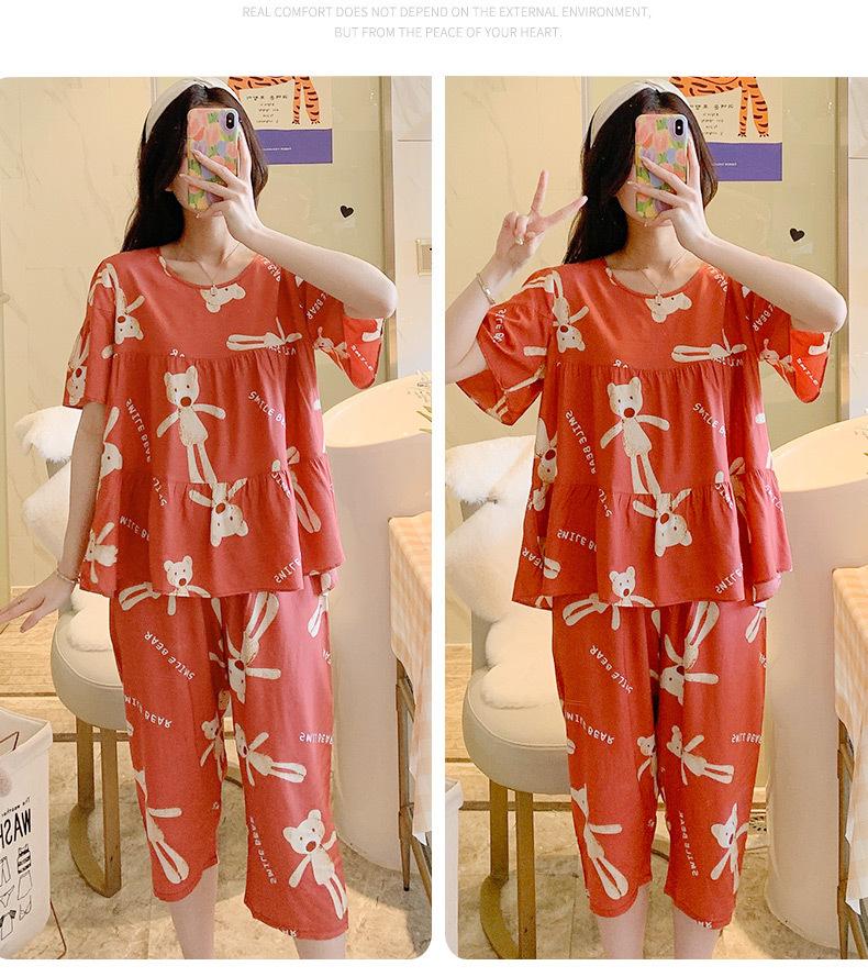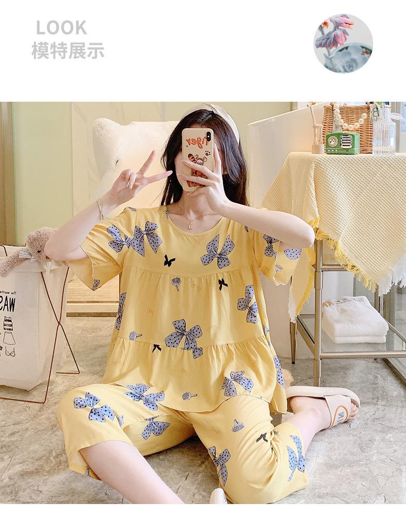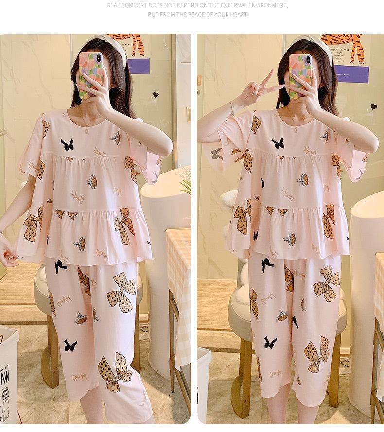 Pijama de seda de algodón de manga corta de verano para mujer, estilo princesa dulce de verano, ropa fresca para el hogar, traje exterior de seda de algodón de talla grande.