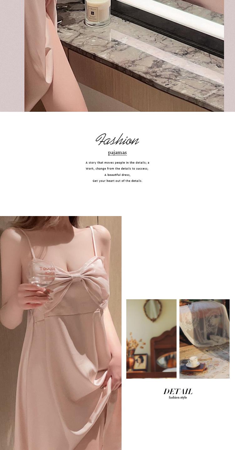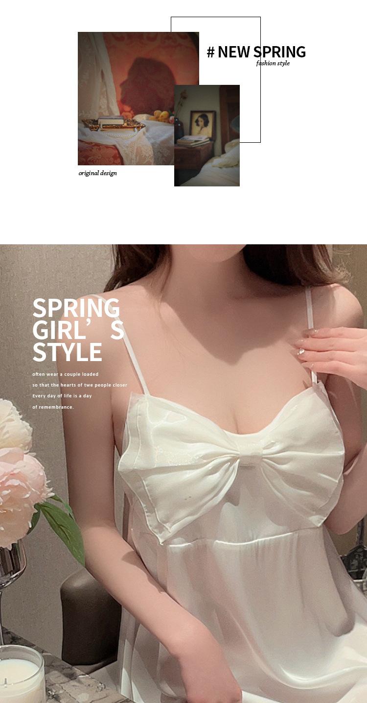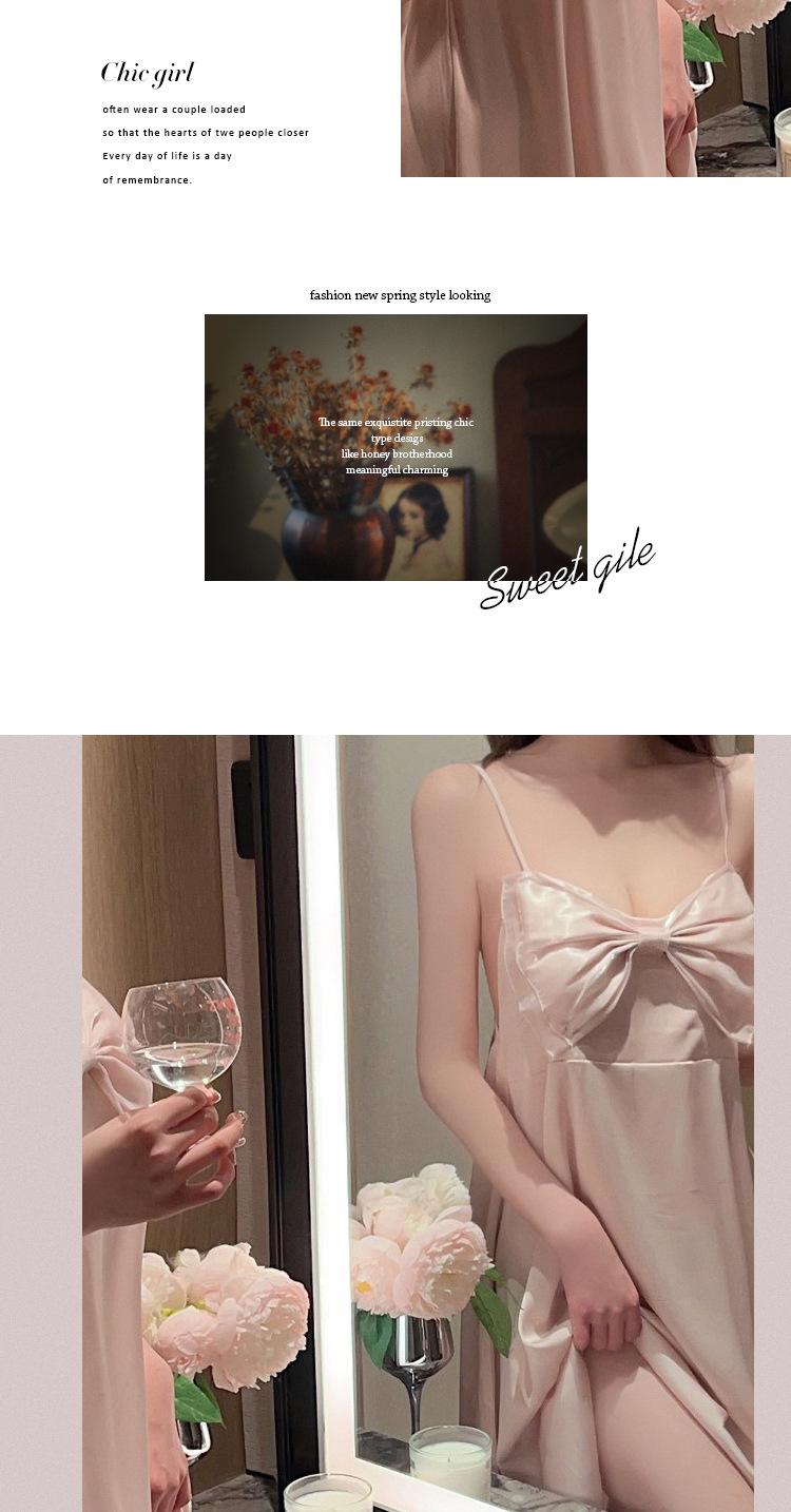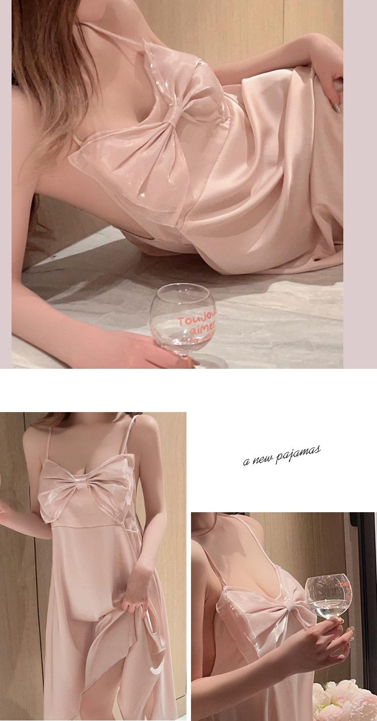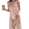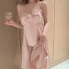 Camisón de seda de hielo sexy rosa con borde cruzado, ropa de abrigo de alta moda para mujer, pijama con lazo, ropa para el hogar al por mayor