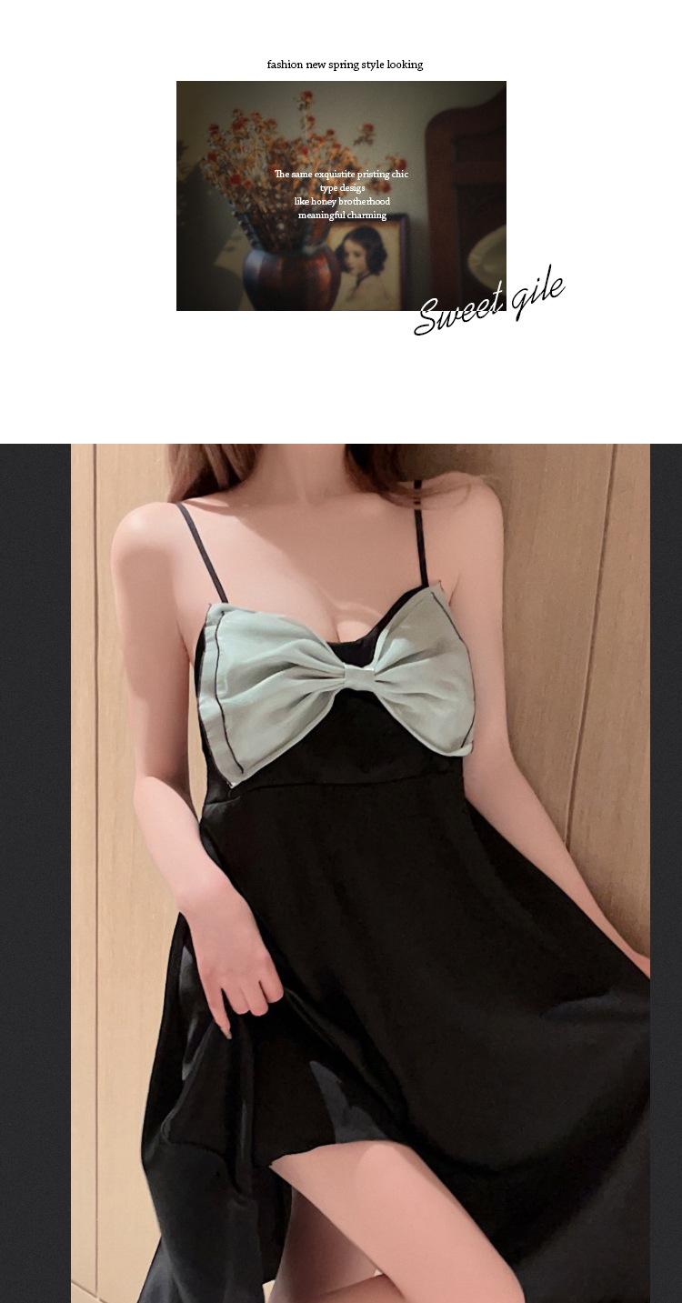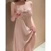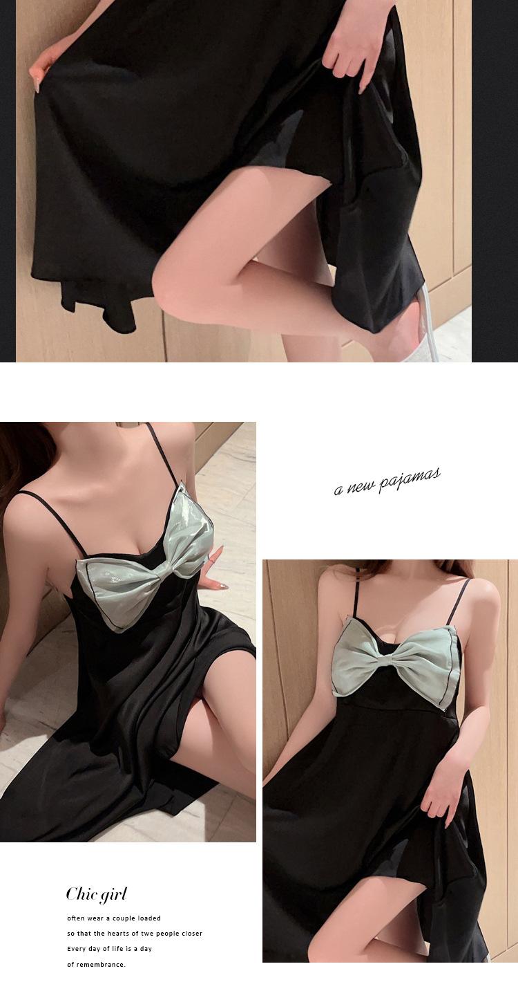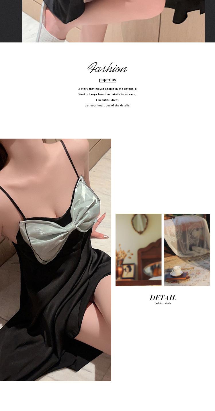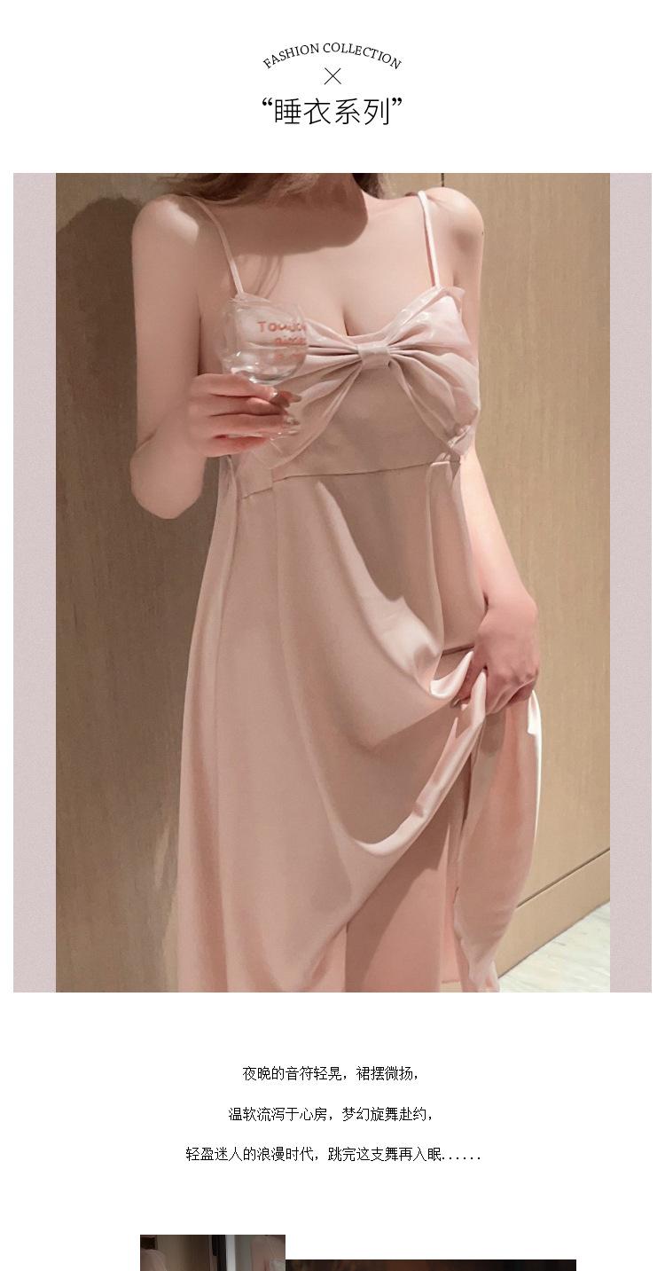 Camisón de seda de hielo sexy rosa con borde cruzado, ropa de abrigo de alta moda para mujer, pijama con lazo, ropa para el hogar al por mayor