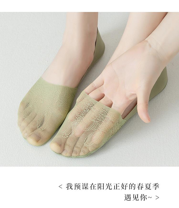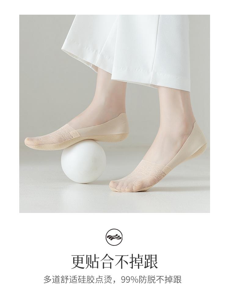 Los calcetines de barco no se caen con los calcetines cortos absorbentes del sudor de verano para mujer, calcetines invisibles de encaje fino, calcetines de suela antideslizante de boca baja de verano