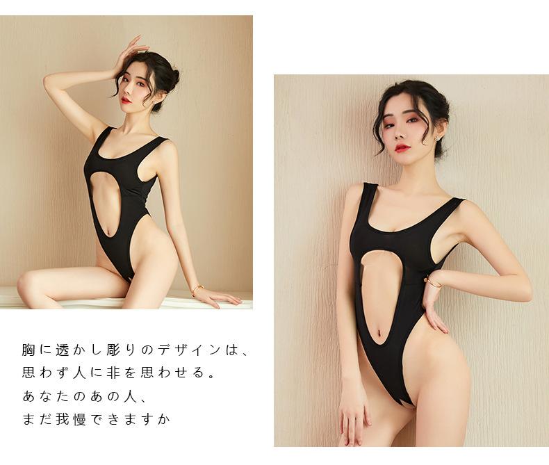Traje de baño de una pieza con abertura en la espalda, ropa interior sexy, pijama de seda helada, traje de baño ajustado con abertura en el pecho, 1786