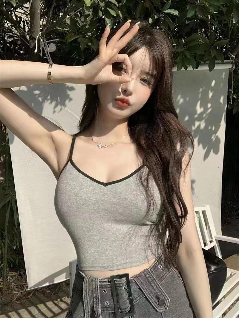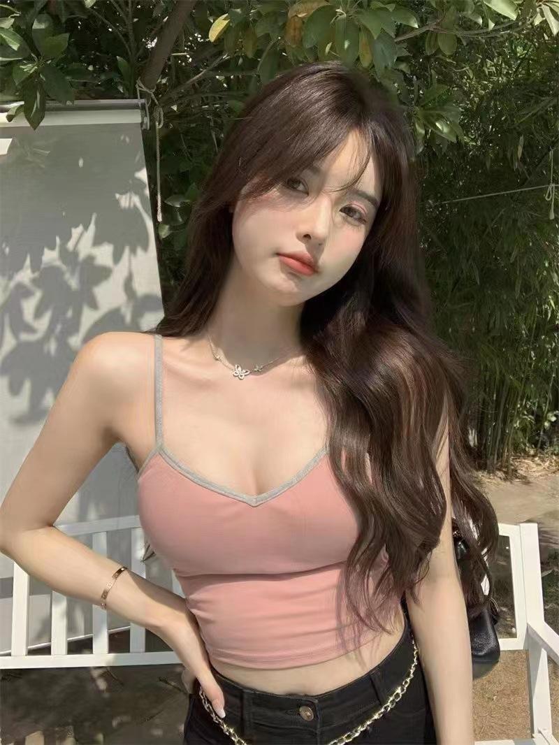 Nueva camiseta de primavera y verano pura para mujer, con almohadilla para el pecho para deportes de viento, sexy, para chica, ropa exterior, base interior superior