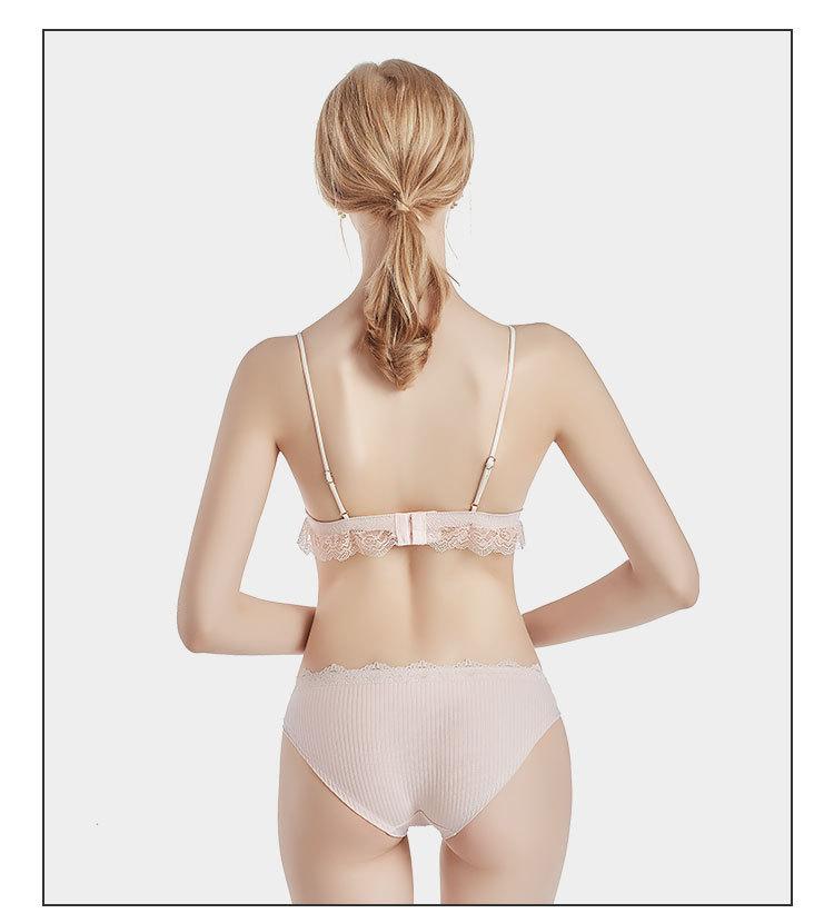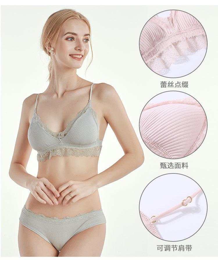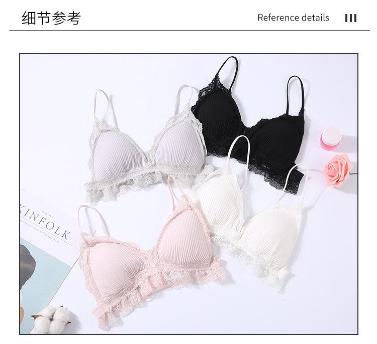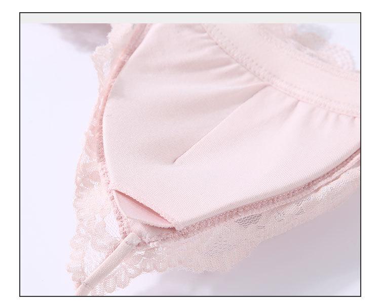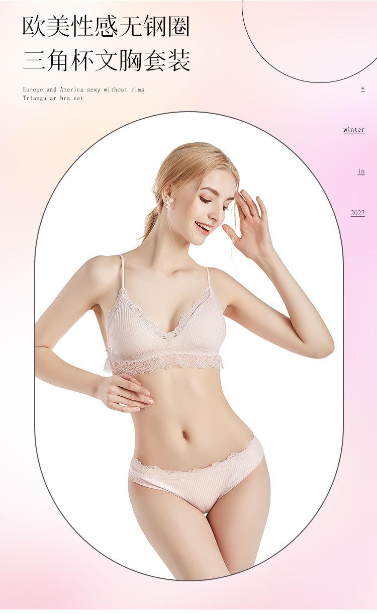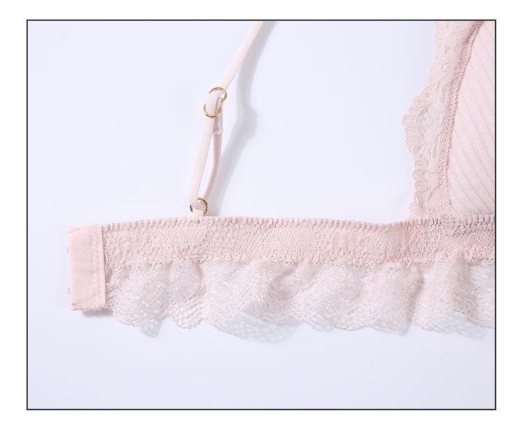 Traje de encaje de copa triangular sin aro de acero estilo francés Sujetador para mujer Ropa interior realce Sujetador transpirable de verano para mujer
