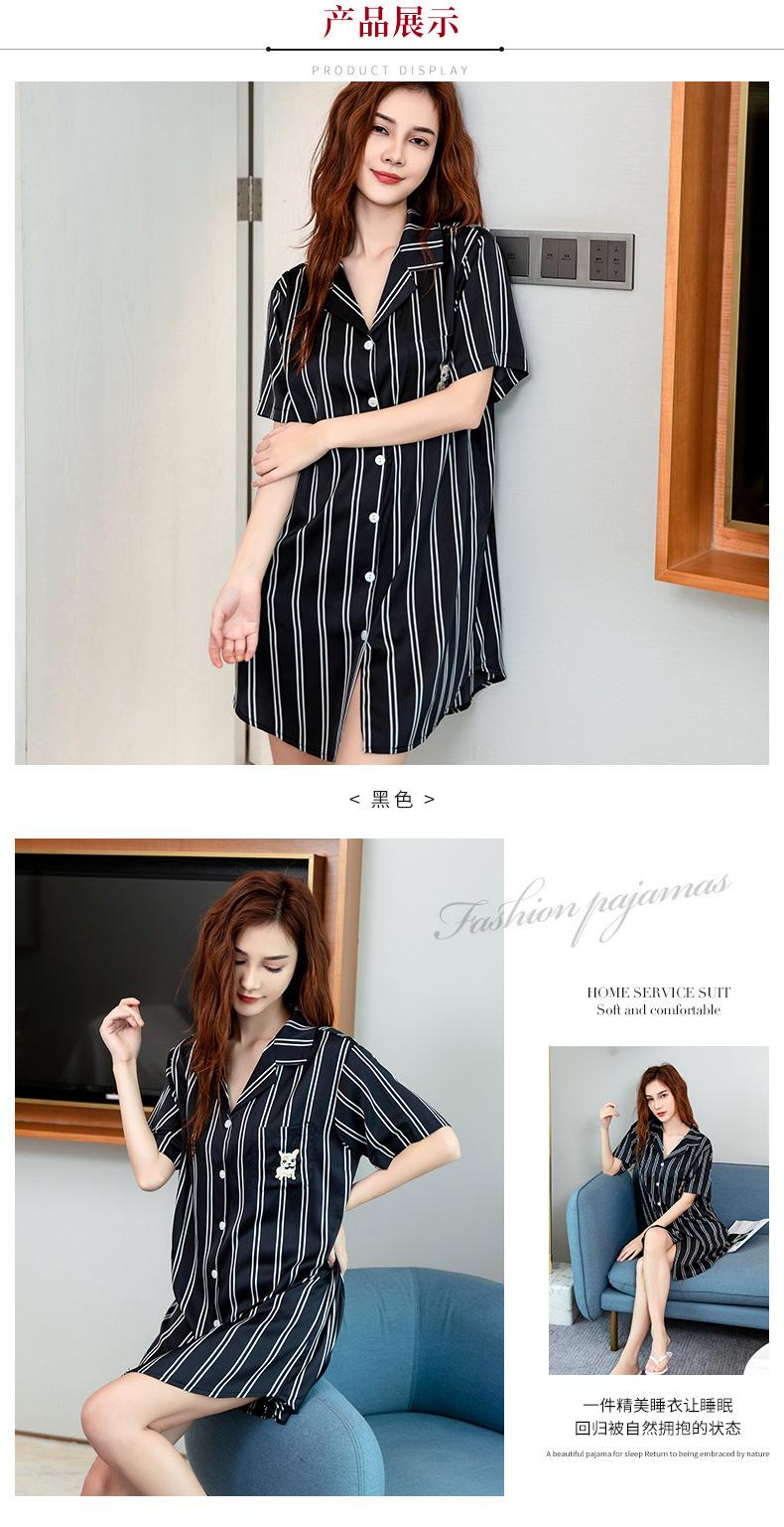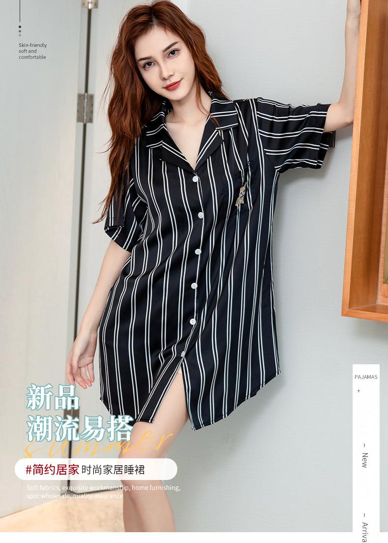 Camisón de seda helada suave e informal para primavera y verano, camisón de rayas transpirable y a la moda, camisón de seda helada para mujer.