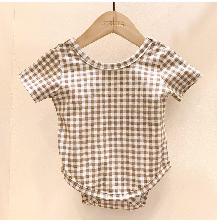 Ropa Infantil Estilo Coreano 2025 Estilo Verano Bebé Niño y Niña A Cuadros Suave Respetuoso con la Piel Mono Estilo Occidental