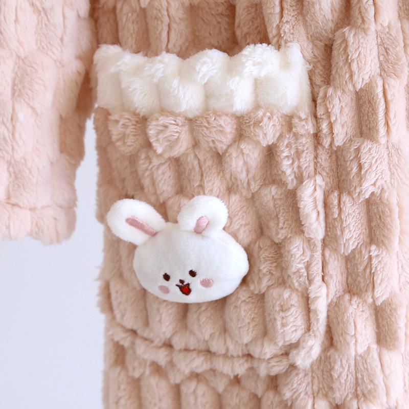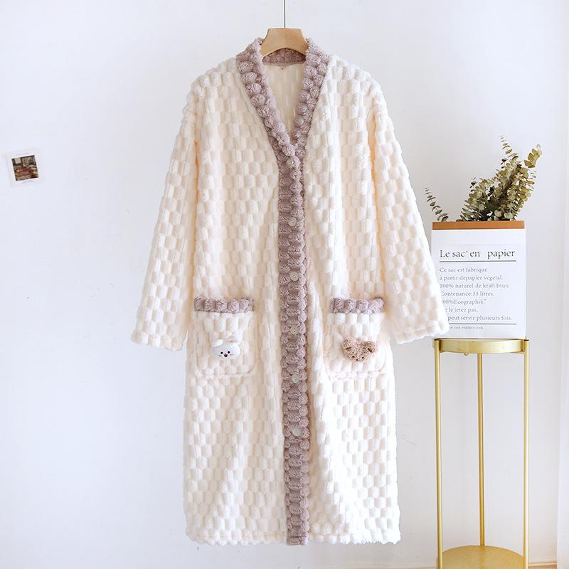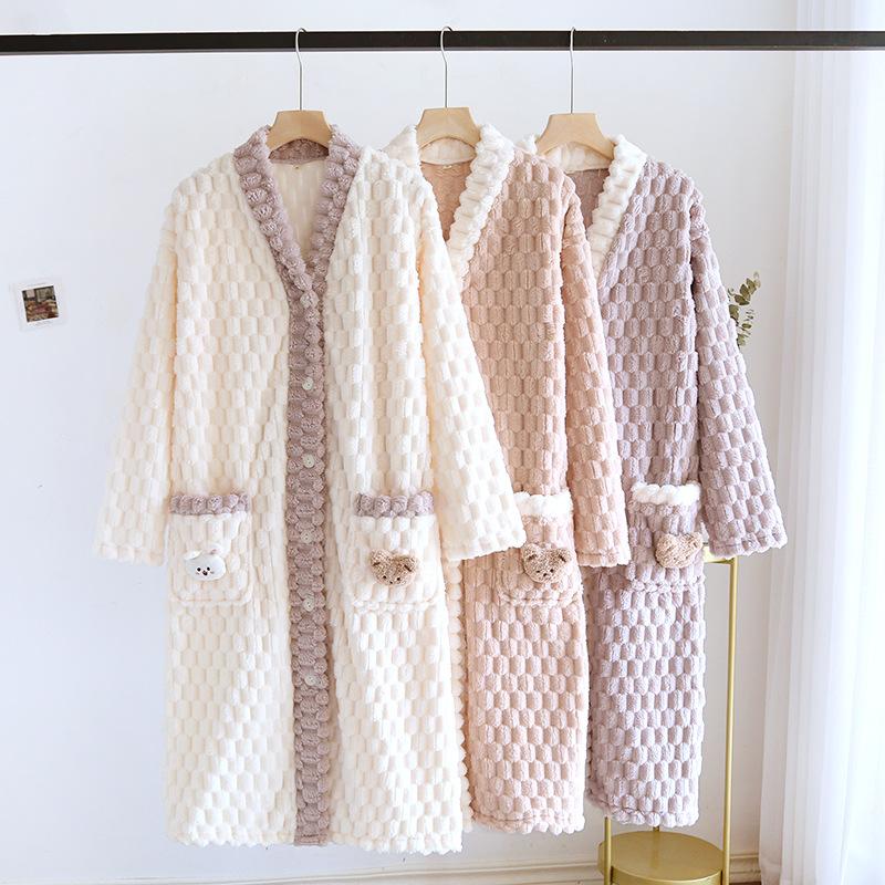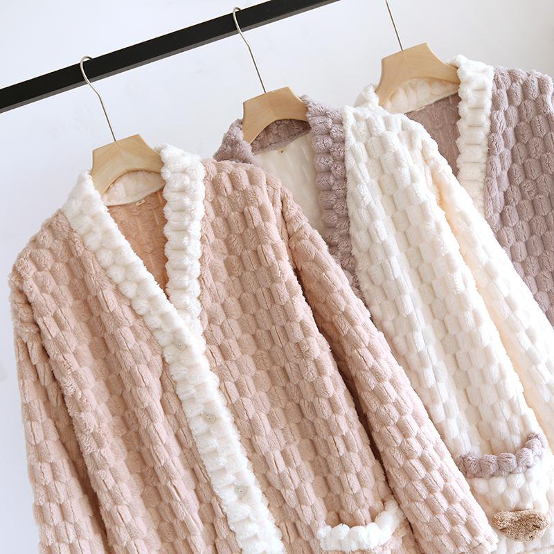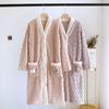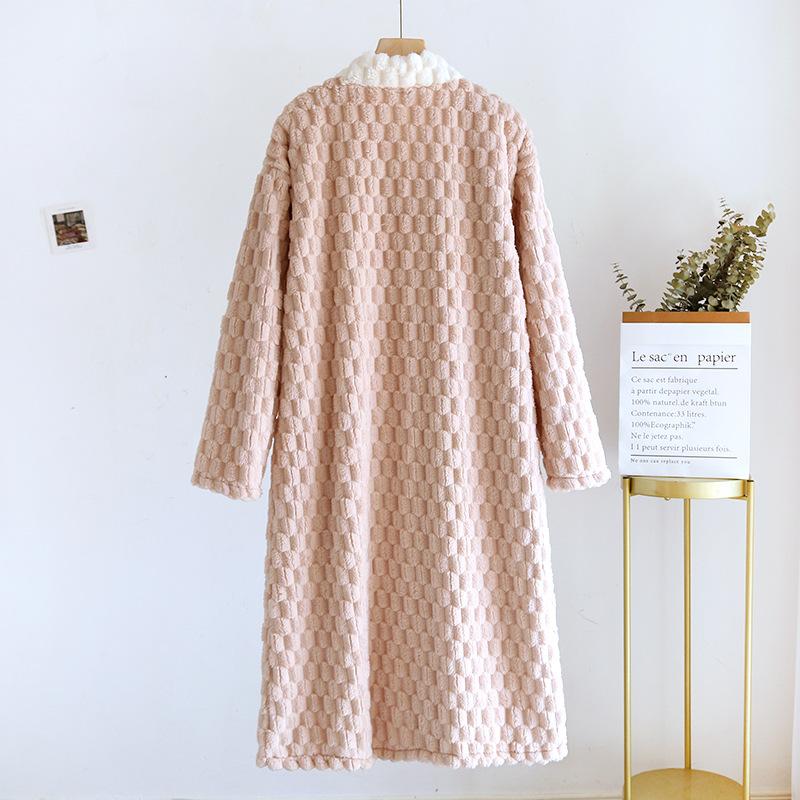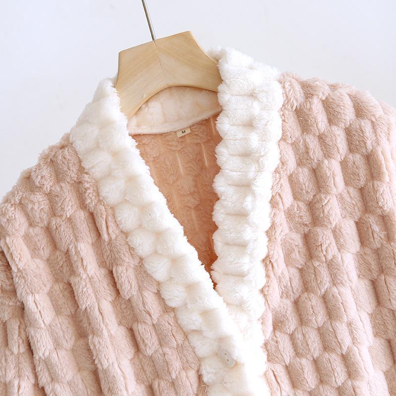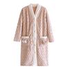 Bata de noche de forro polar coral para mujer, otoño e invierno, gruesa, holgada, con cuello en V, color sólido, pijama de invierno cálido de franela, bata para el hogar