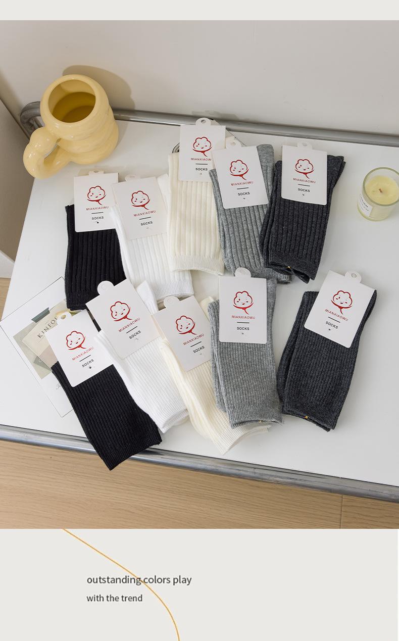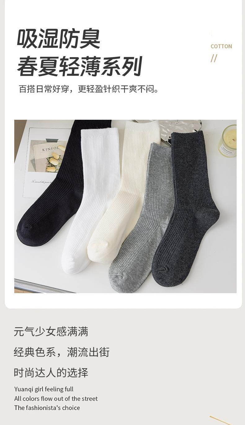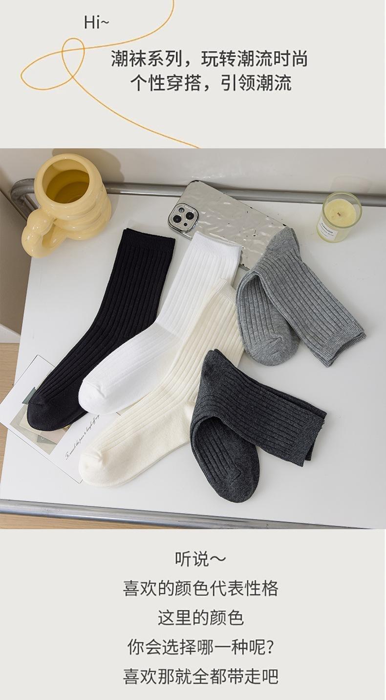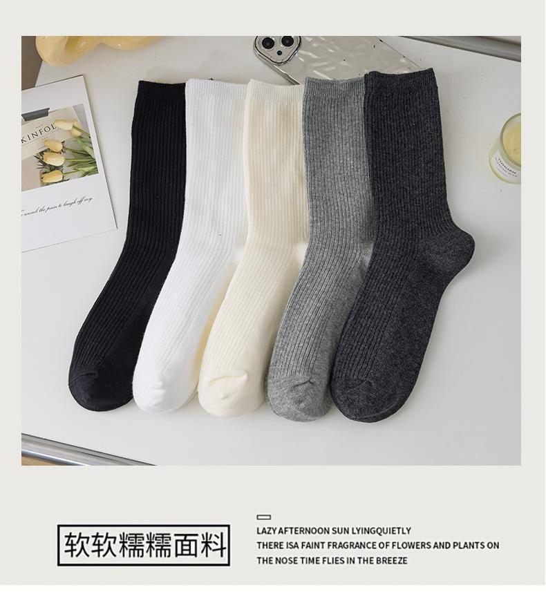 Compra Calcetines grises para mujer, Calcetines de algodón de color puro absorbentes del sudor para otoño e invierno, Calcetines de media pantorrilla, Calcetines blancos y negros, Calcetines de felpa desodorantes de doble aguja para mujer al por mayor en Joom.pro