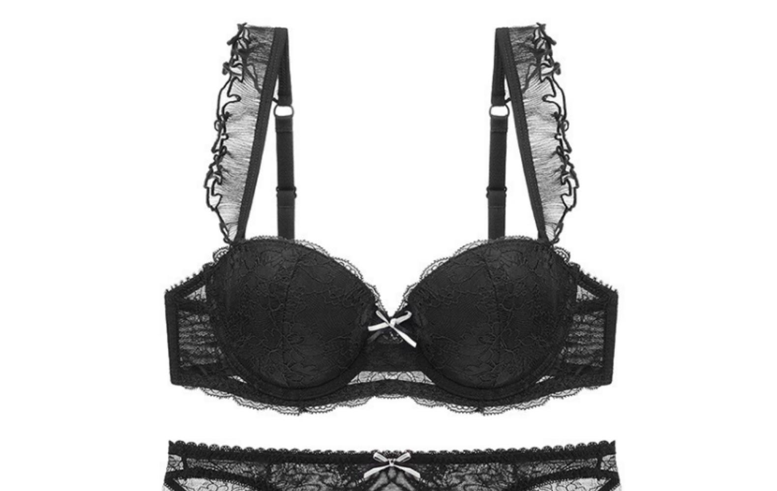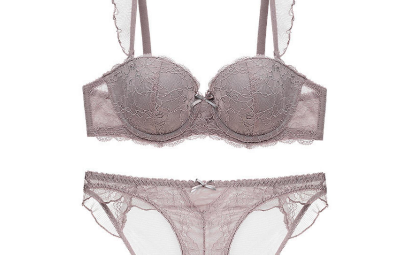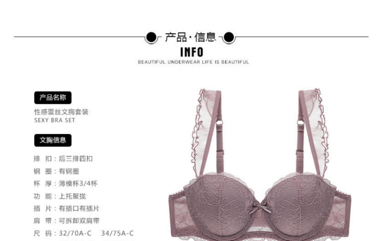 Tentación Francesa Lindo Insertable con Volantes Sexy Ropa Íntima para Mujer Encaje Sujetador Pecho Pequeño Set de Sujetador Push-Up