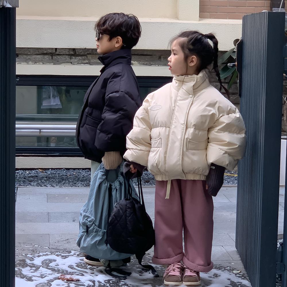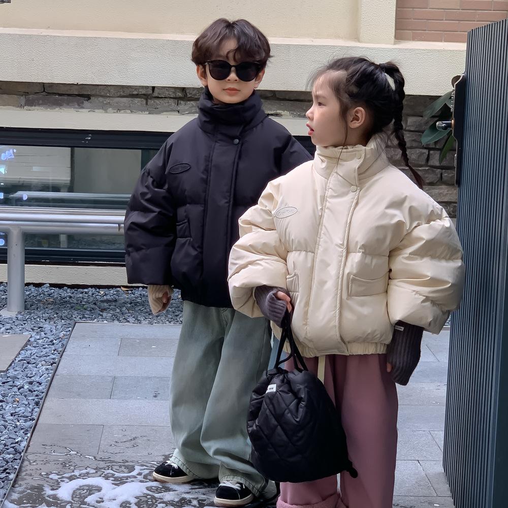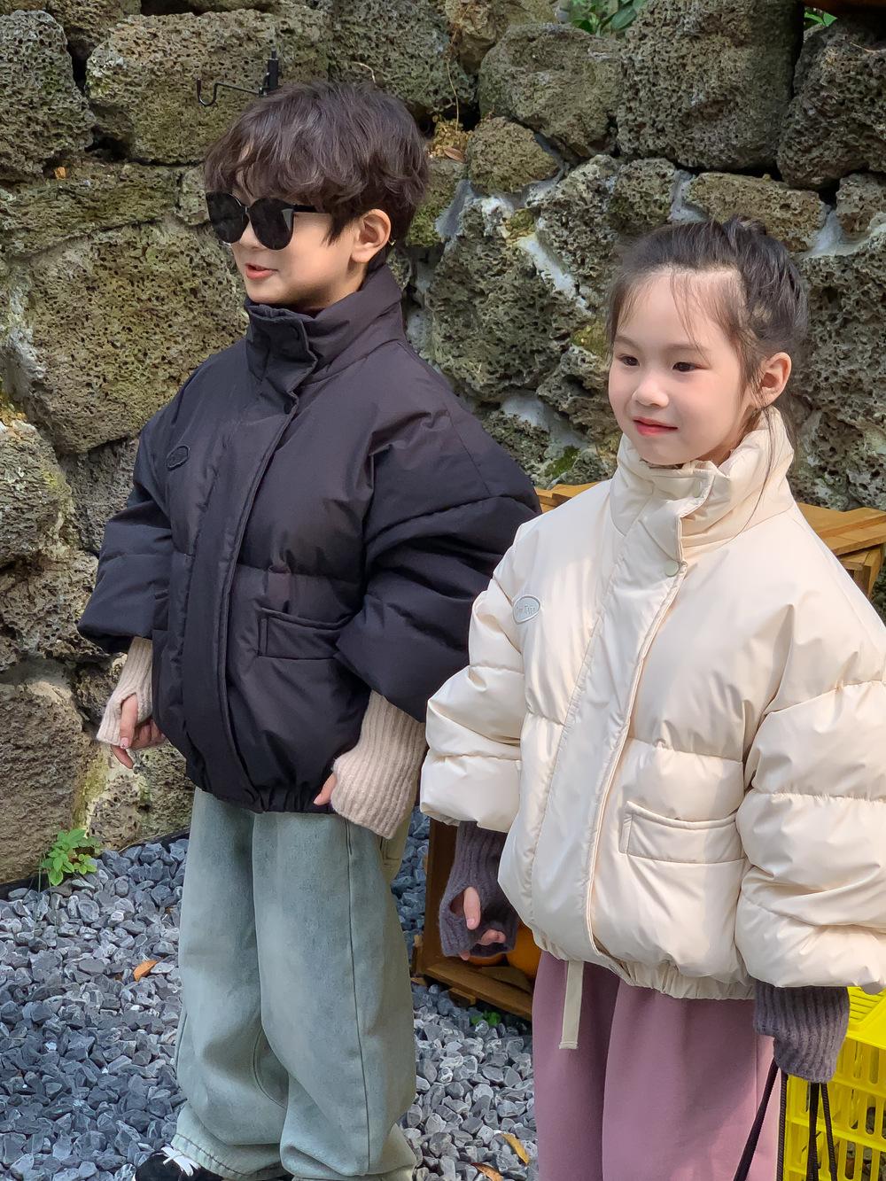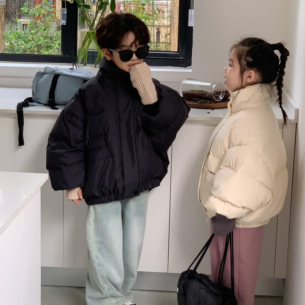 Chaqueta de plumón para niños 2025 Invierno Estilo coreano Color puro Engrosado Pan Chaqueta de plumón para niños y niñas Top corto cálido para niños