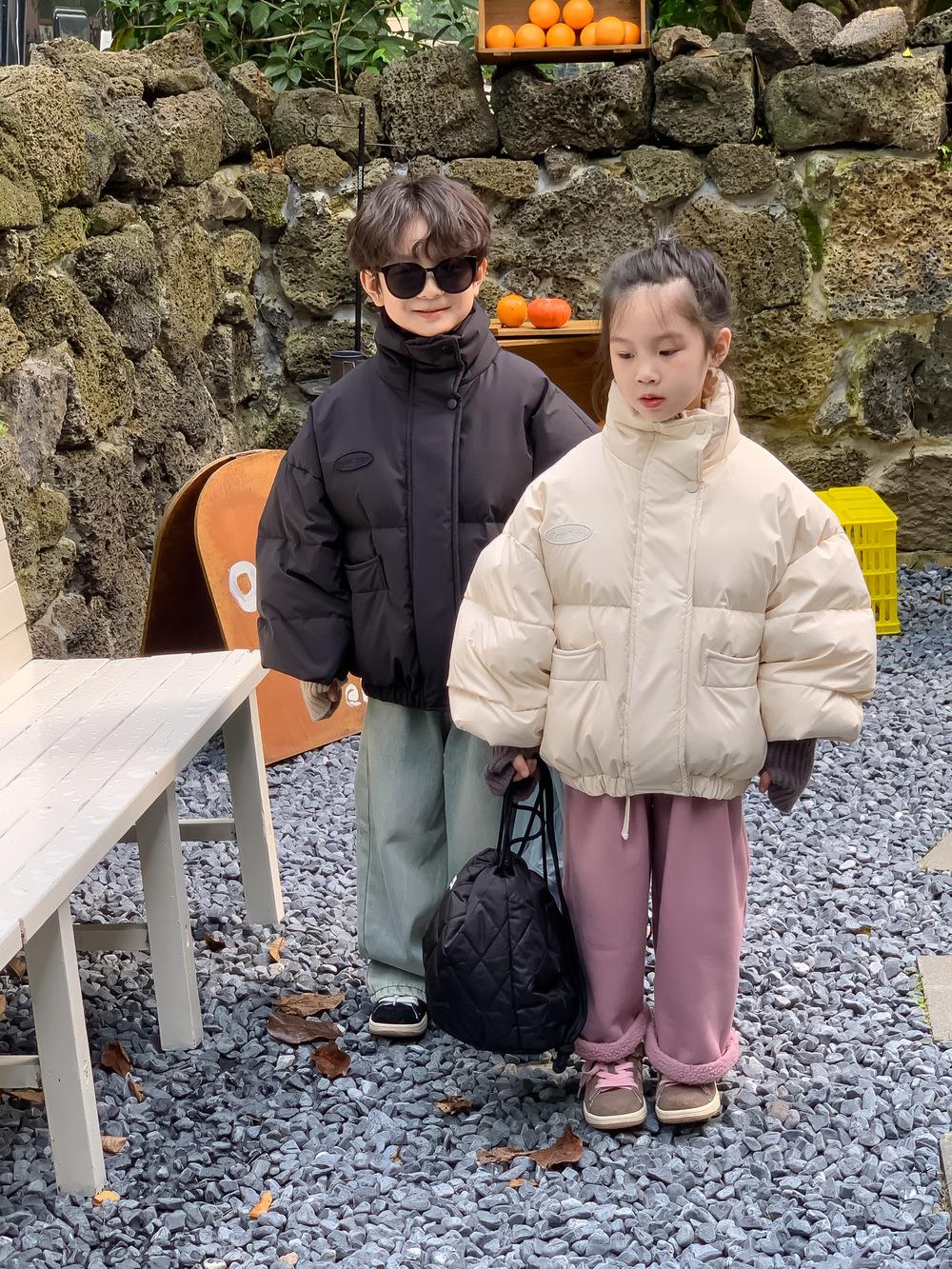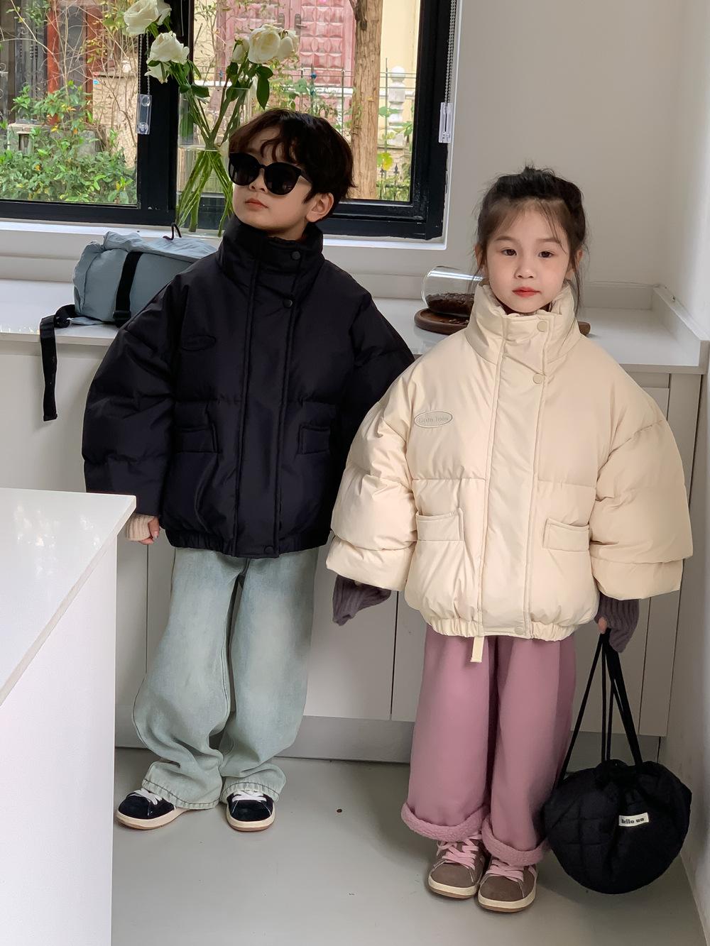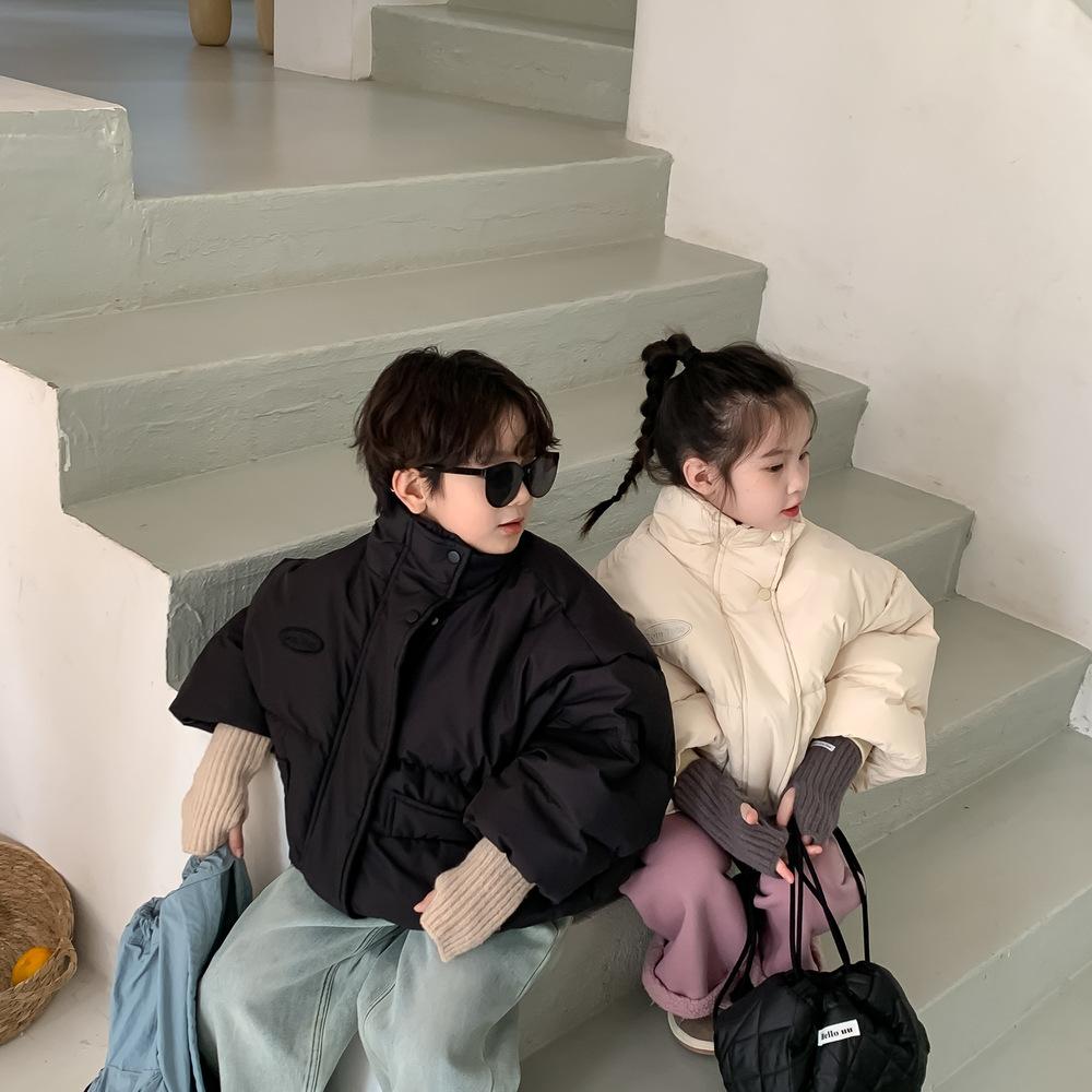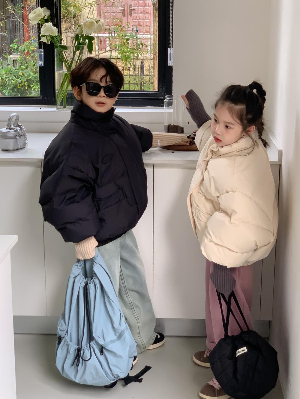 Chaqueta de plumón para niños 2025 Invierno Estilo coreano Color puro Engrosado Pan Chaqueta de plumón para niños y niñas Top corto cálido para niños