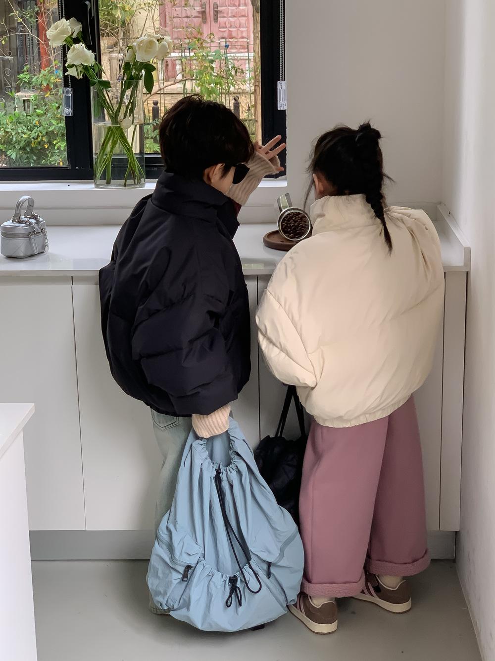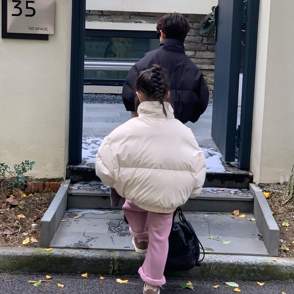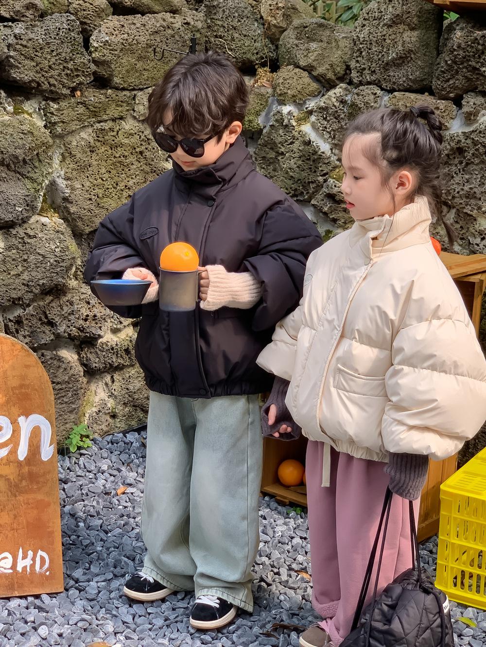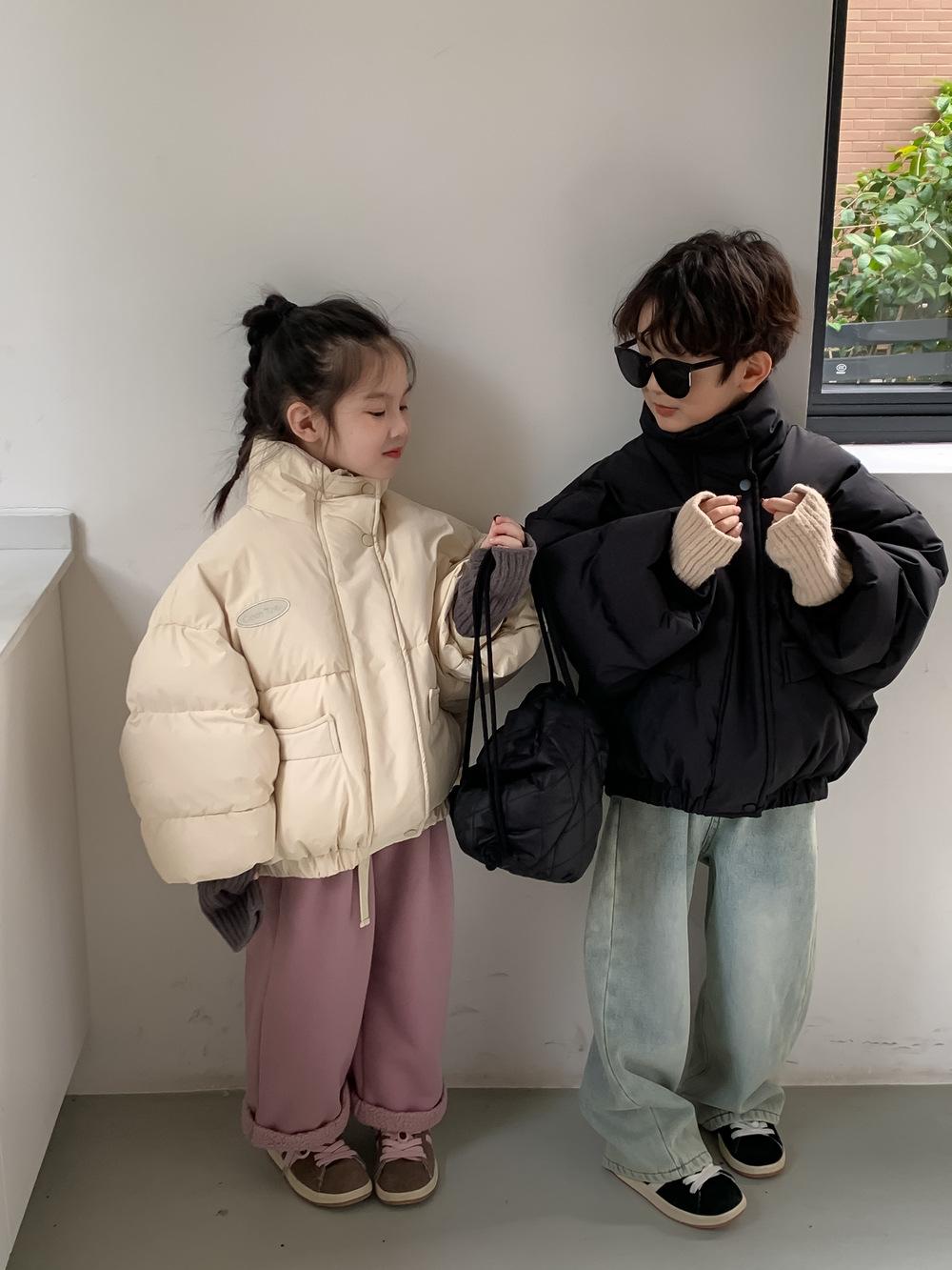 Chaqueta de plumón para niños 2025 Invierno Estilo coreano Color puro Engrosado Pan Chaqueta de plumón para niños y niñas Top corto cálido para niños