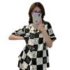 Pijama de seda de hielo para mujer, de manga corta, de verano, fino, con dibujos animados, para estudiantes, bonito traje de dos piezas de seda sintética, ropa de casa para primavera y verano.
