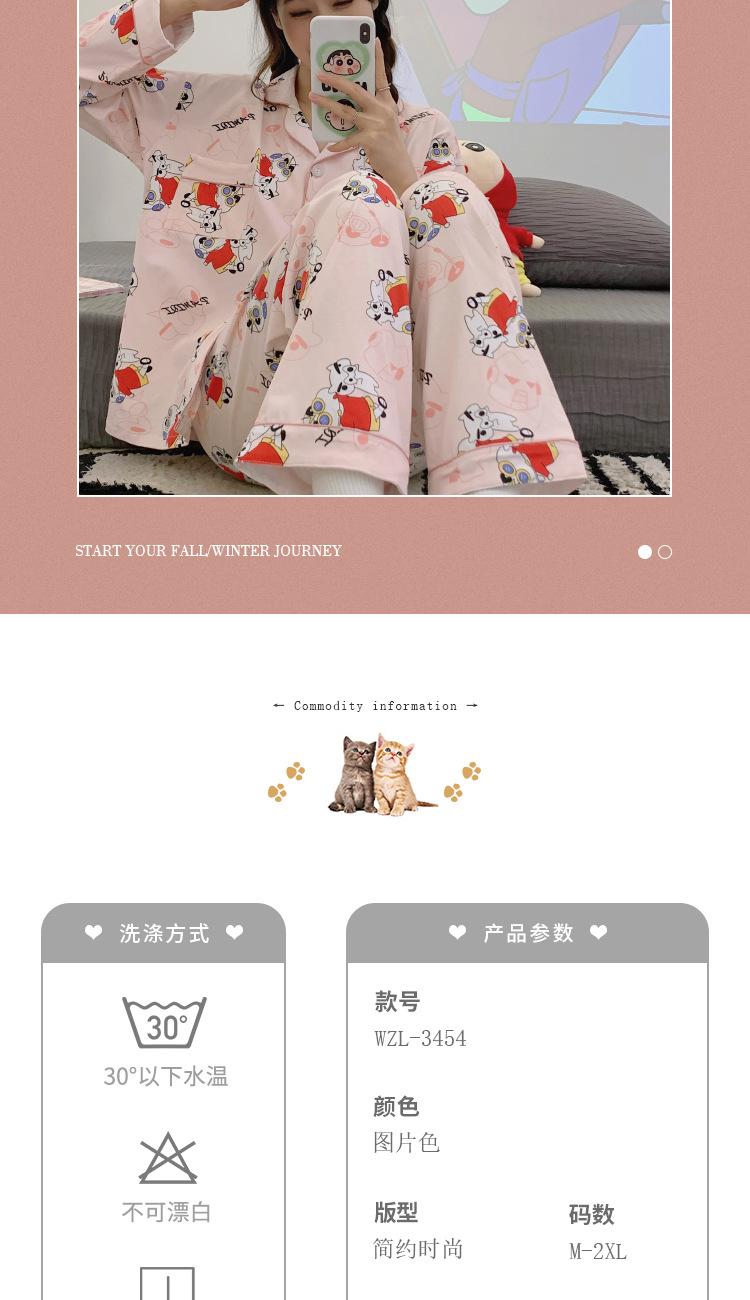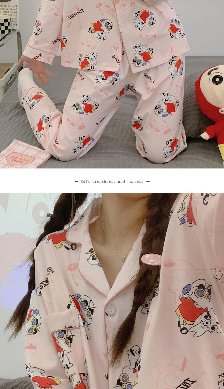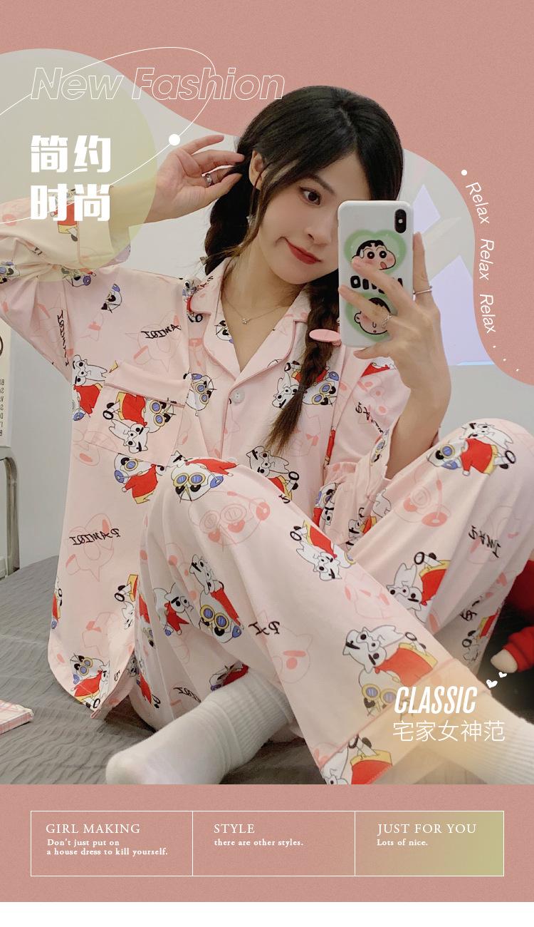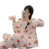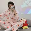 Pijama de manga larga con pantalones pequeños y crayón rojo nuevo para mujer, ropa de casa japonesa para primavera y otoño, venta al por mayor