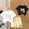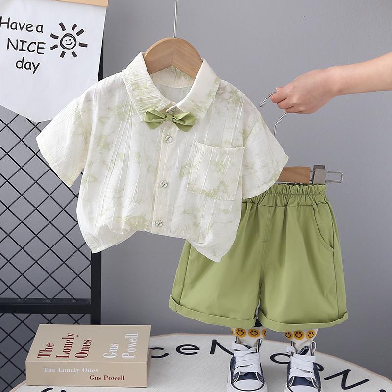Ropa de bebé, traje fino de verano para niño de un año, camisa de manga corta con lazo, traje de dos piezas para niño
