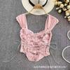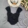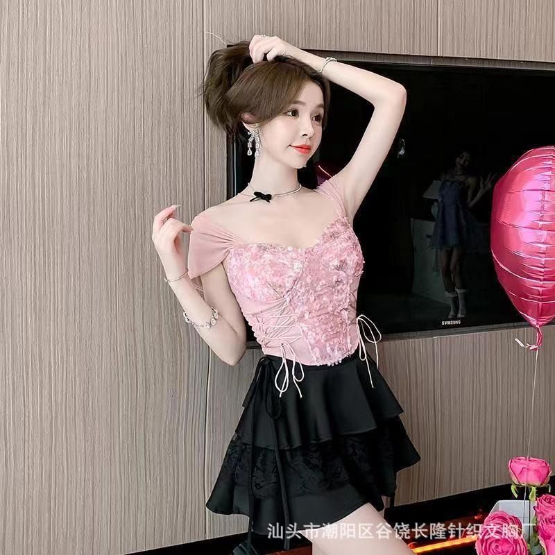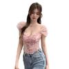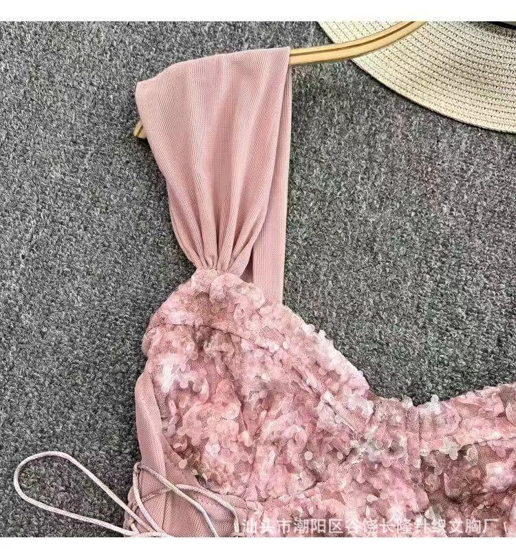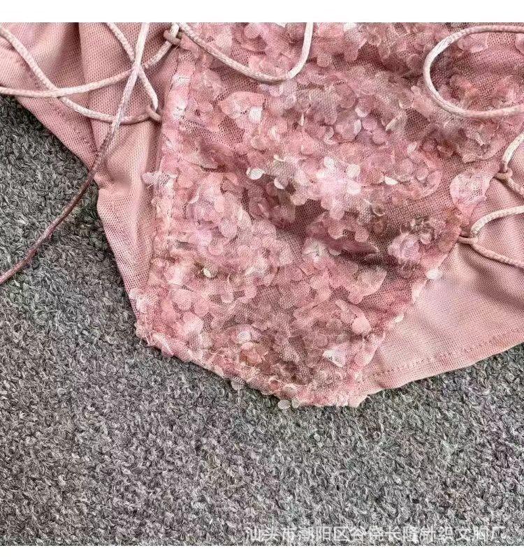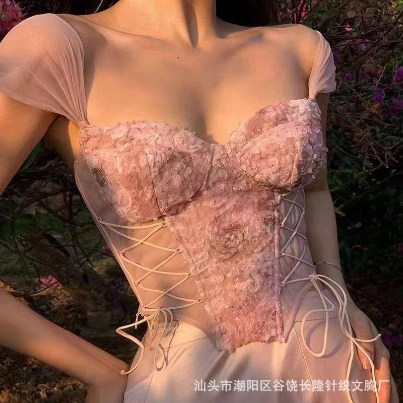 Camisola de encaje francés para mujer, máquina cuidadosa, dulce, chica sexy, delgada, ropa exterior con almohadilla en el pecho, top sexy