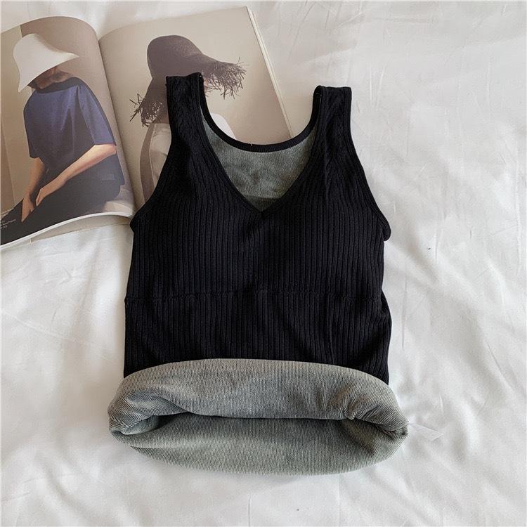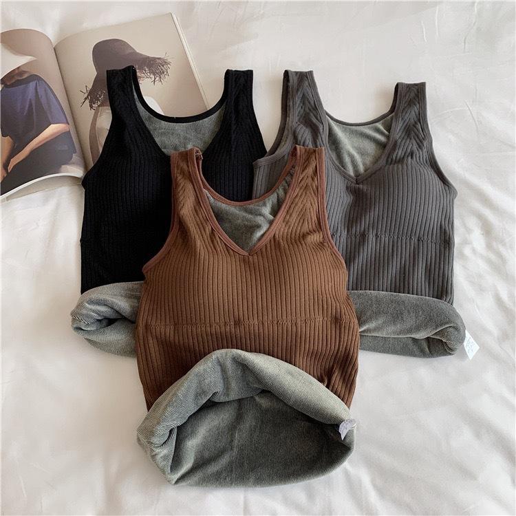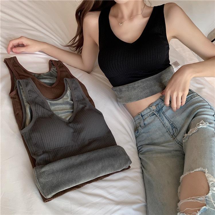 Nueva ropa de otoño e invierno para mujer con tirantes, forro polar, parte superior gruesa y cálida, camiseta sexy de belleza con parte inferior en la espalda y chaleco interior con almohadilla para el pecho