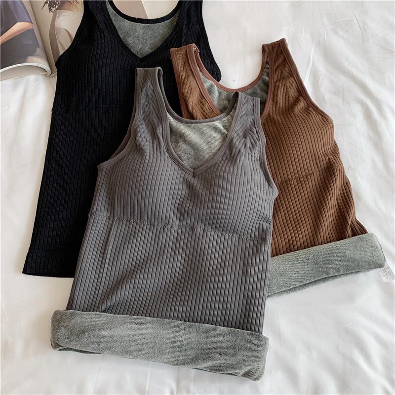 Nueva llegada tirantes para mujer otoño e invierno uso más terciopelo grueso cálido tops sexy hermosa espalda camiseta básica con almohadilla en el pecho chaleco interior