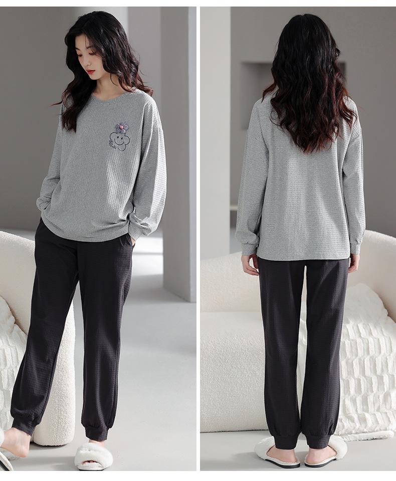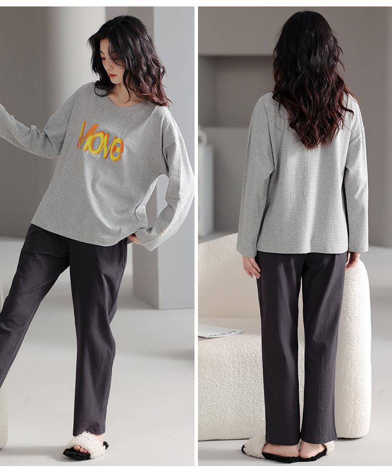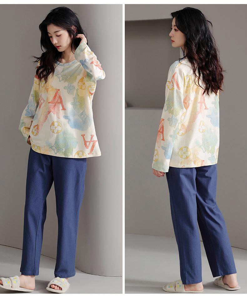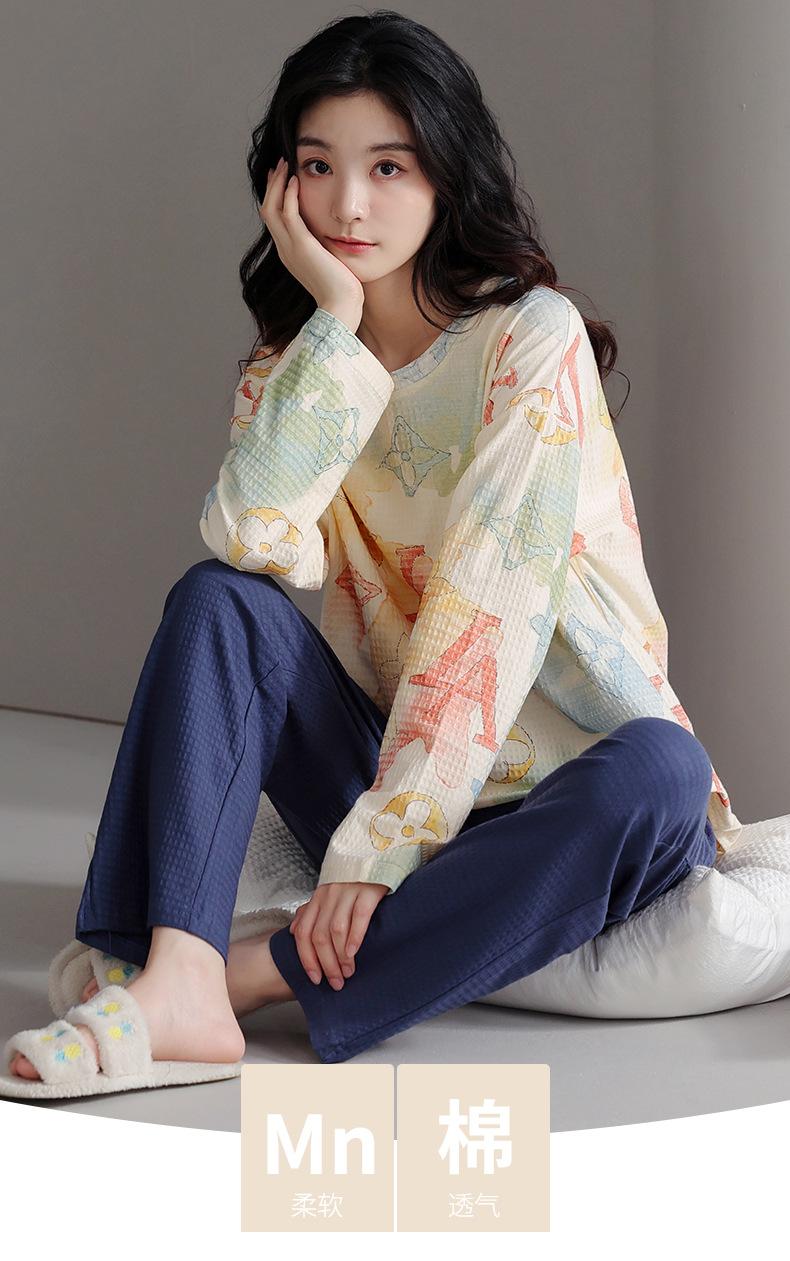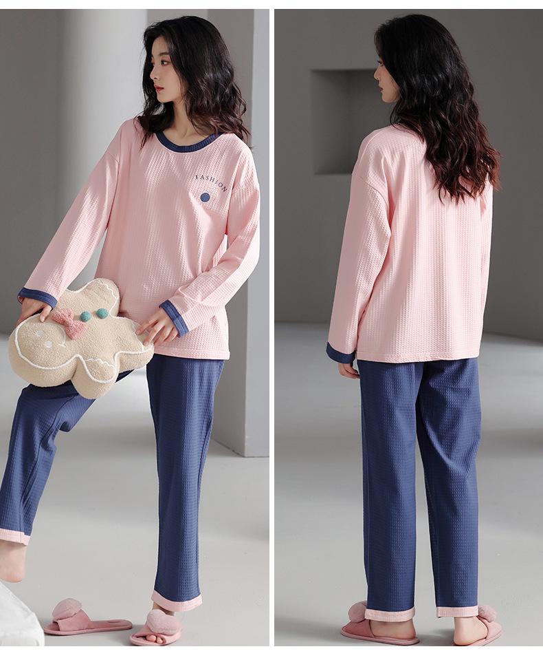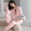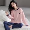 Pijamas de mujer otoño e invierno nuevos de algodón con cuello redondo y manga larga, ropa informal sencilla para mujer, ropa de casa para primavera